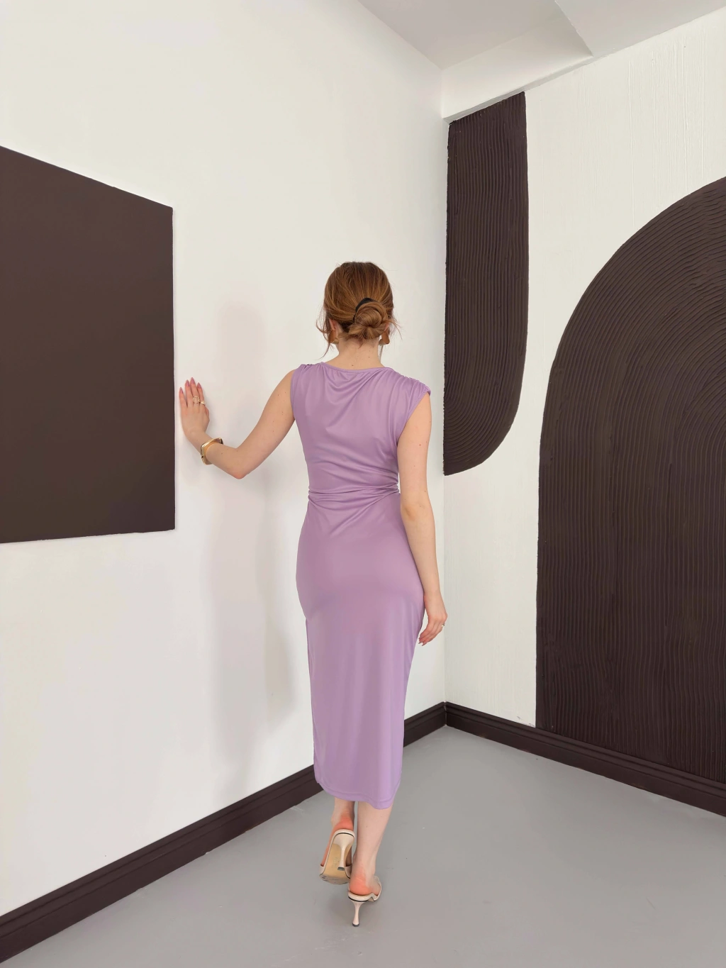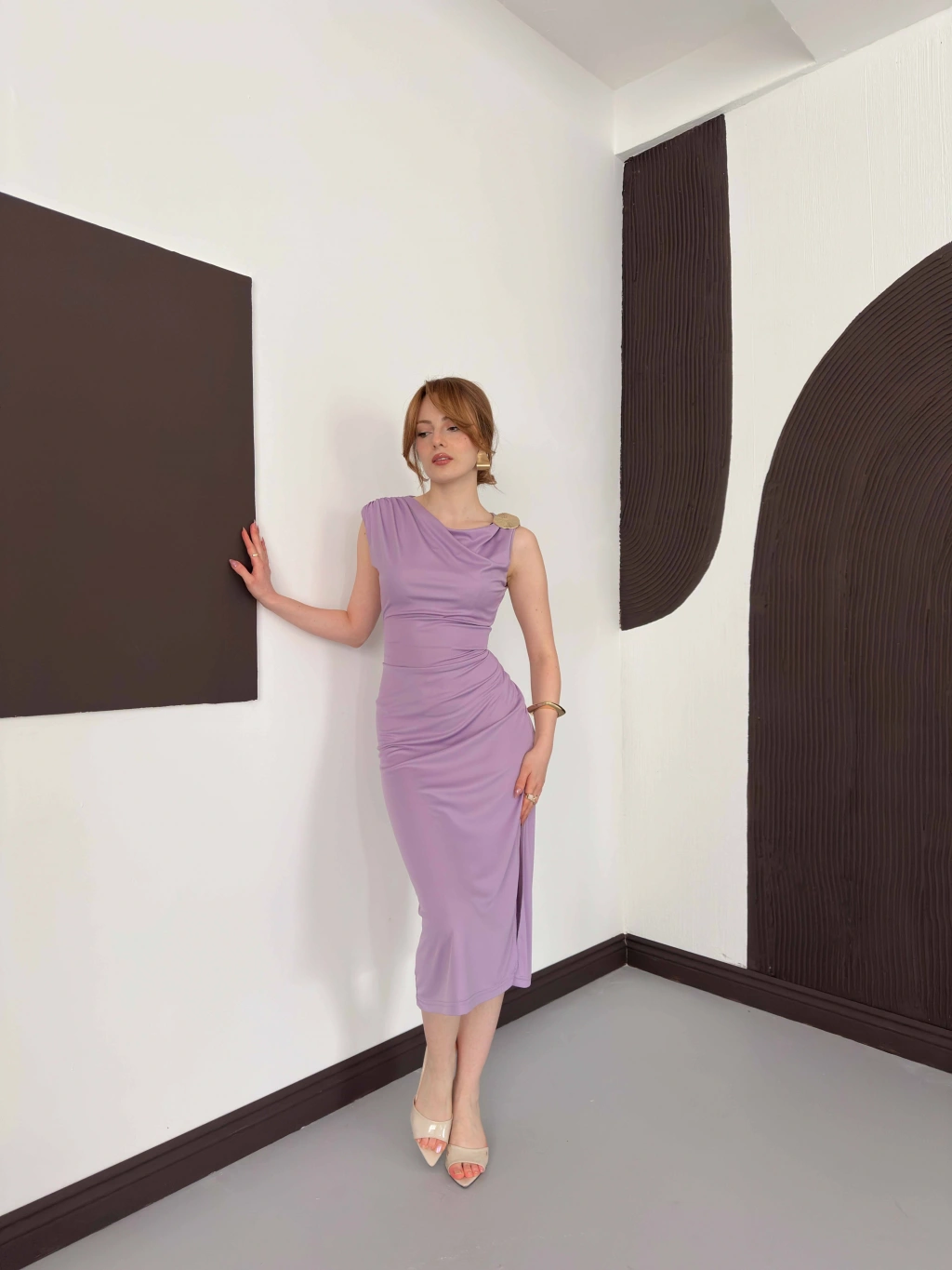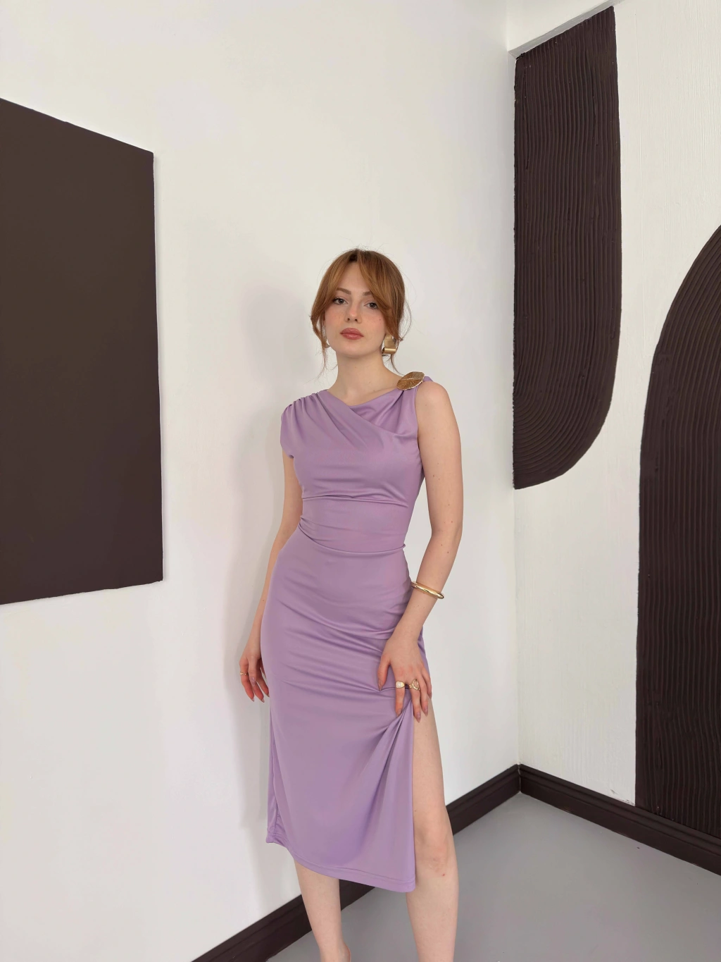 Aksesuar Detaylı Tek Omuz Sandy Elbise Lila