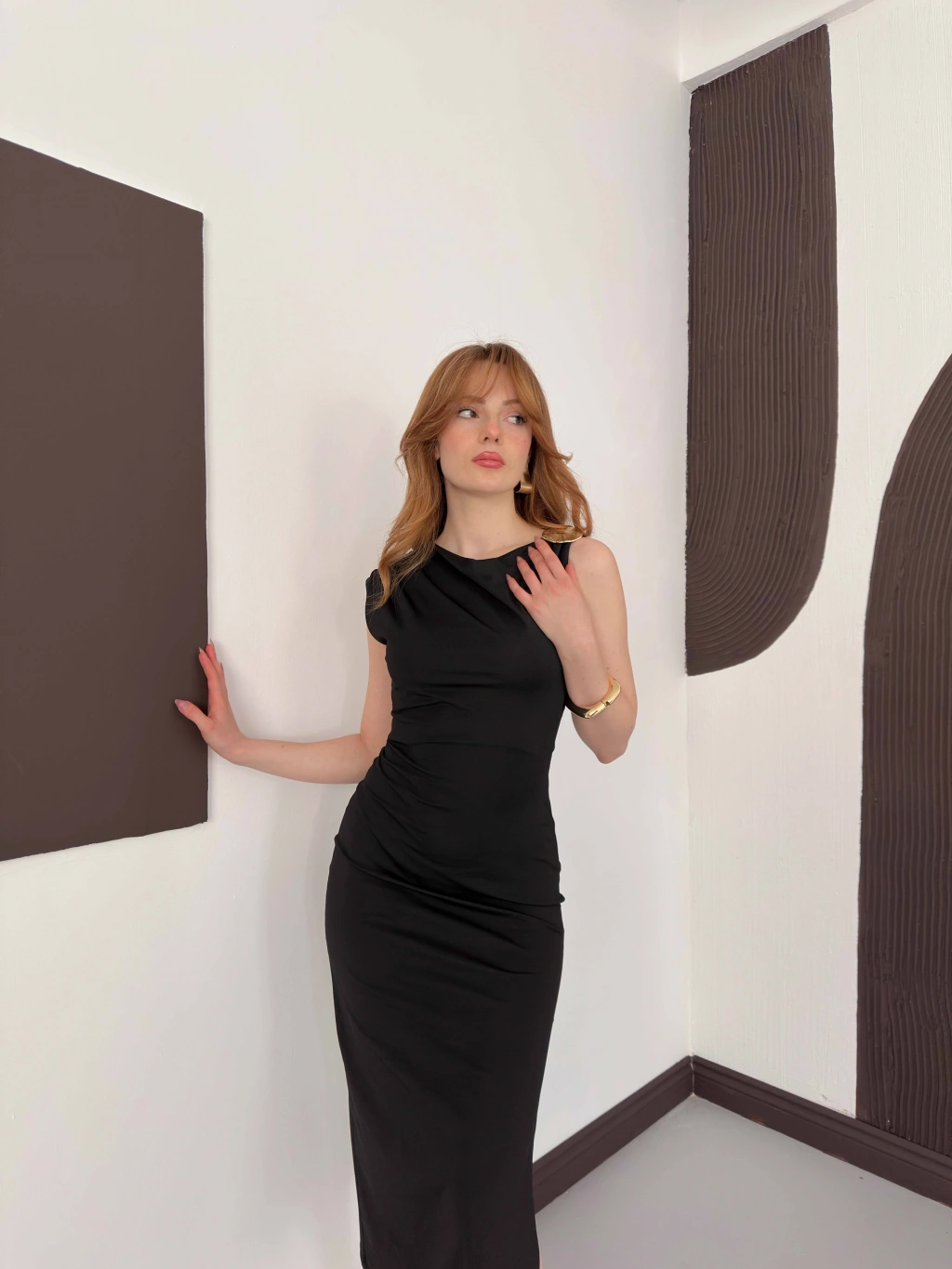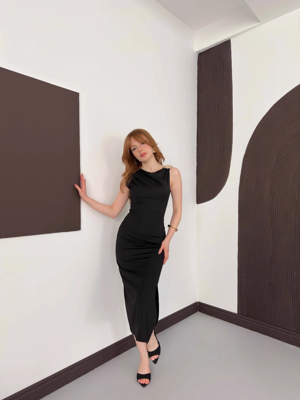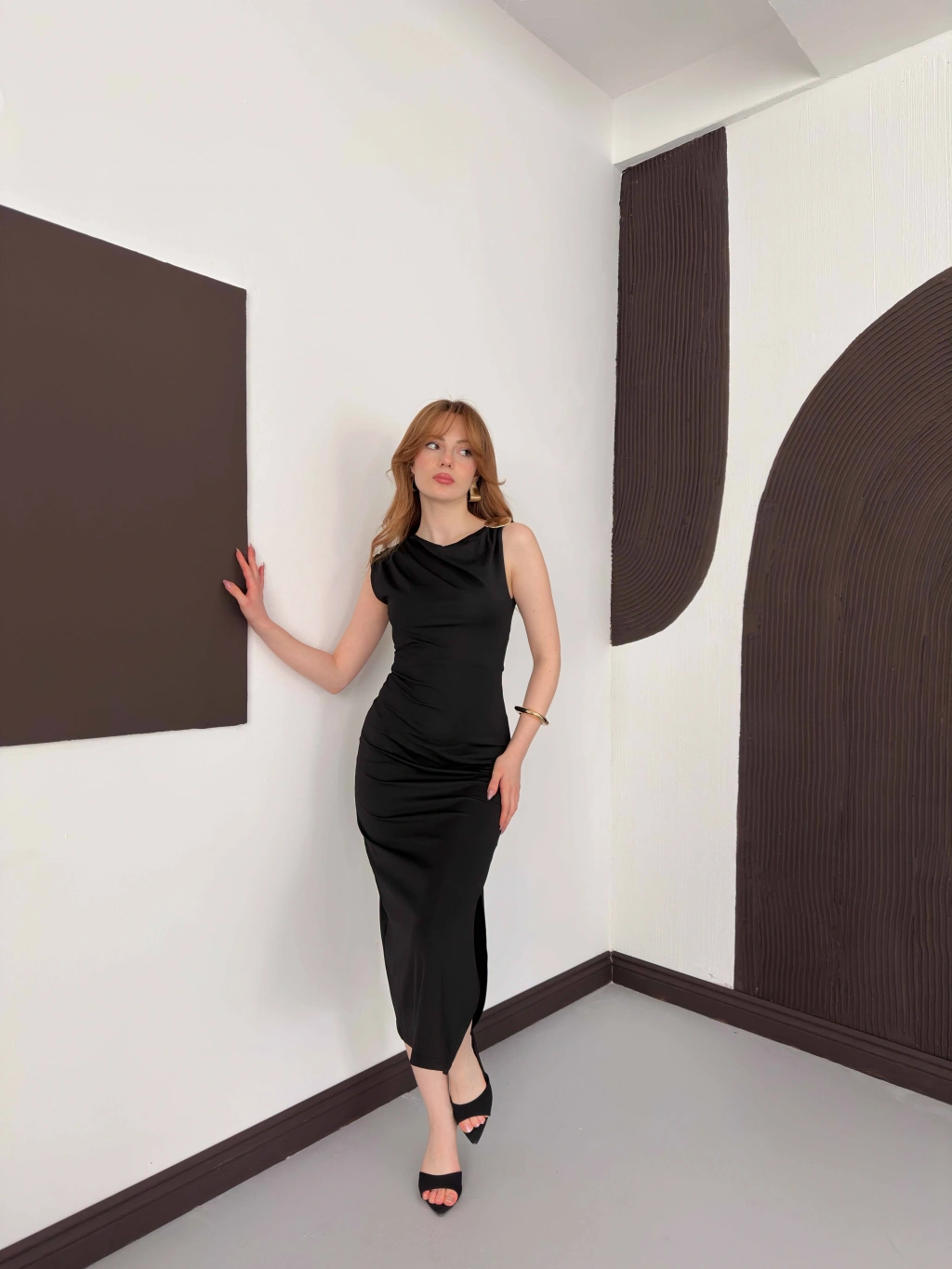 Aksesuar Detaylı Tek Omuz Sandy Elbise Siyah