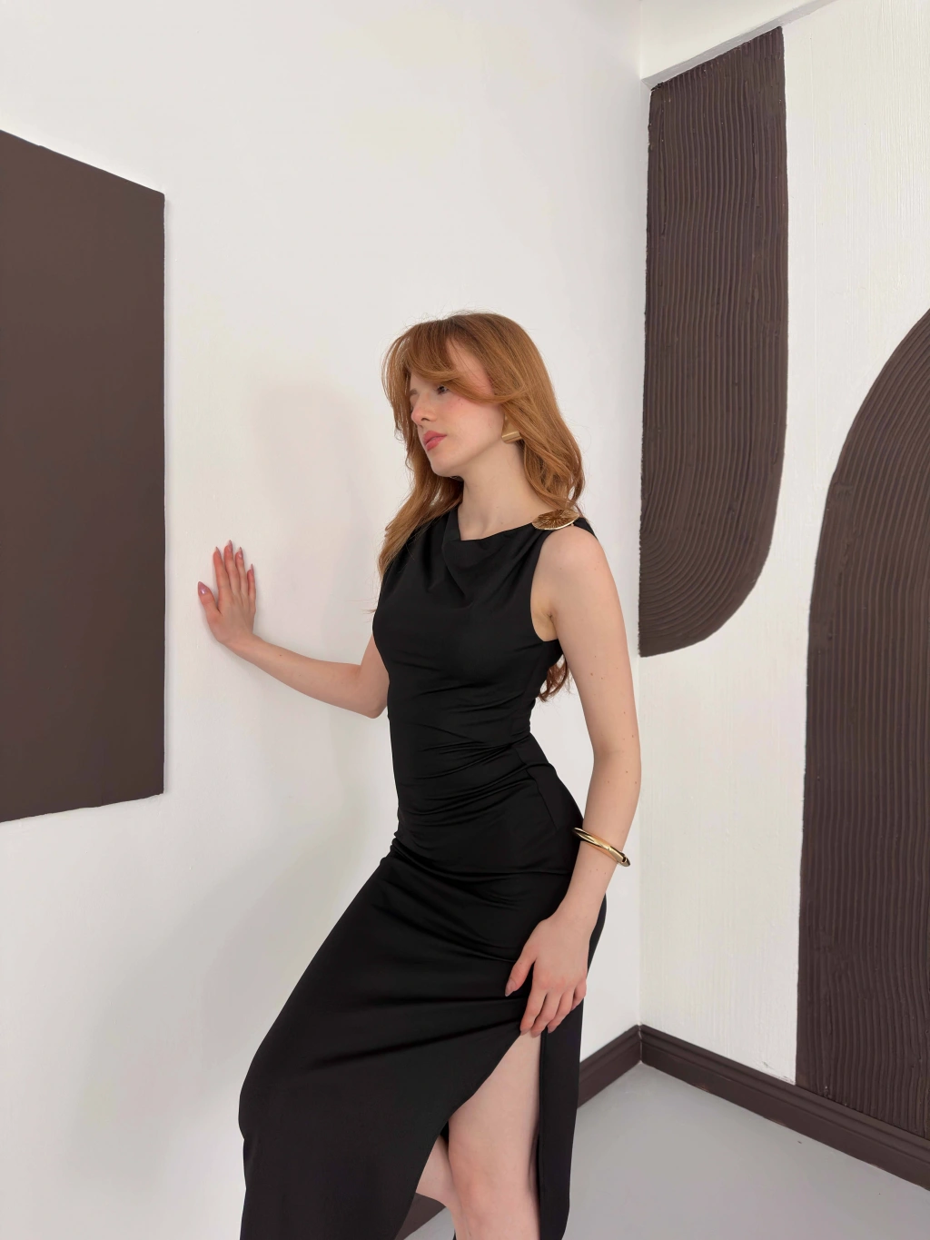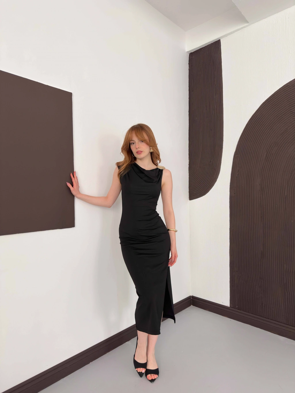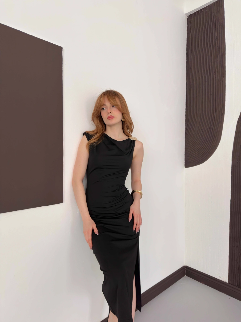 Aksesuar Detaylı Tek Omuz Sandy Elbise Siyah