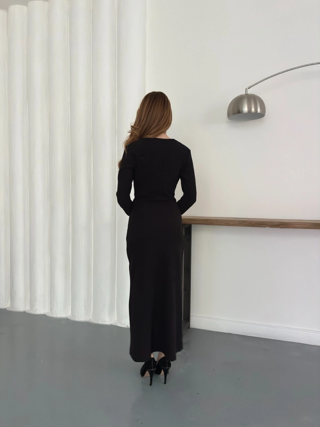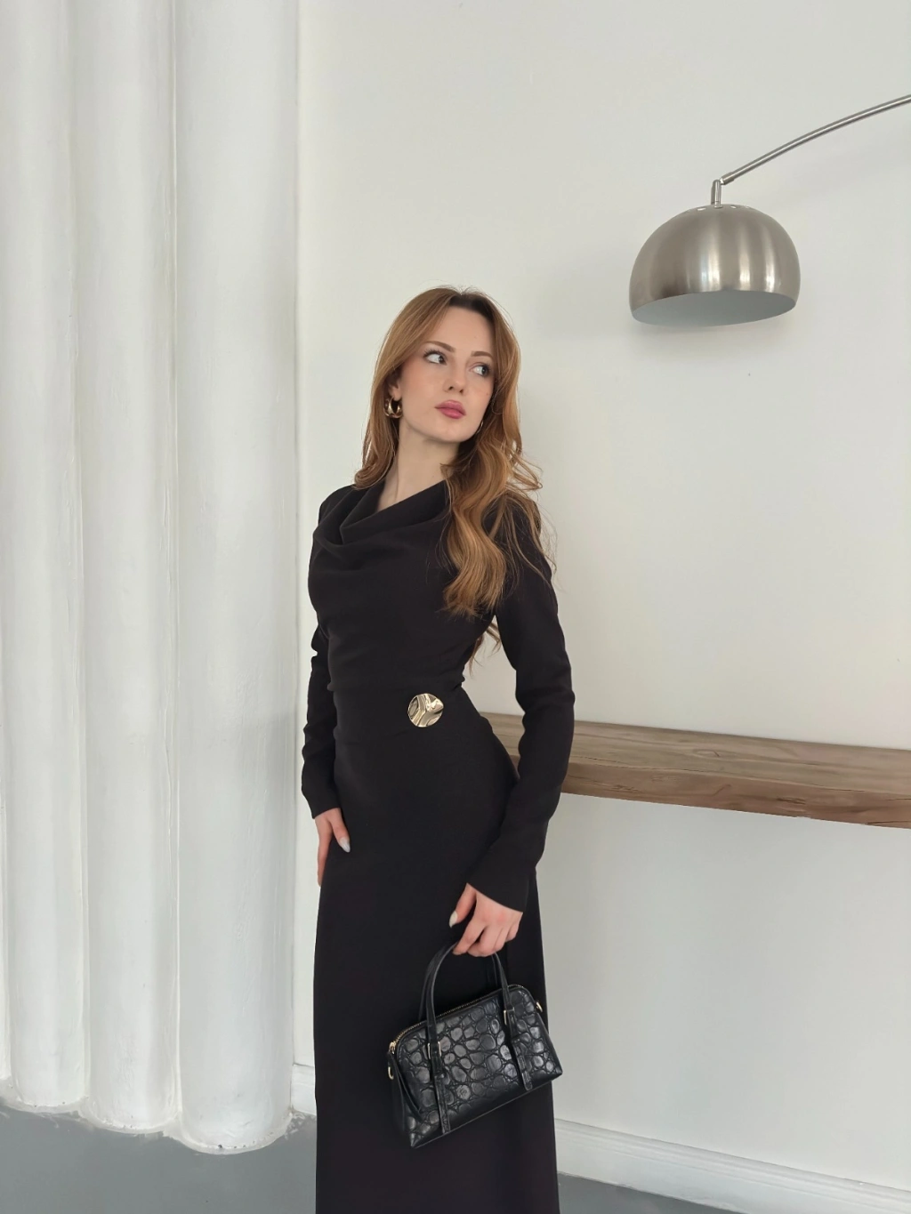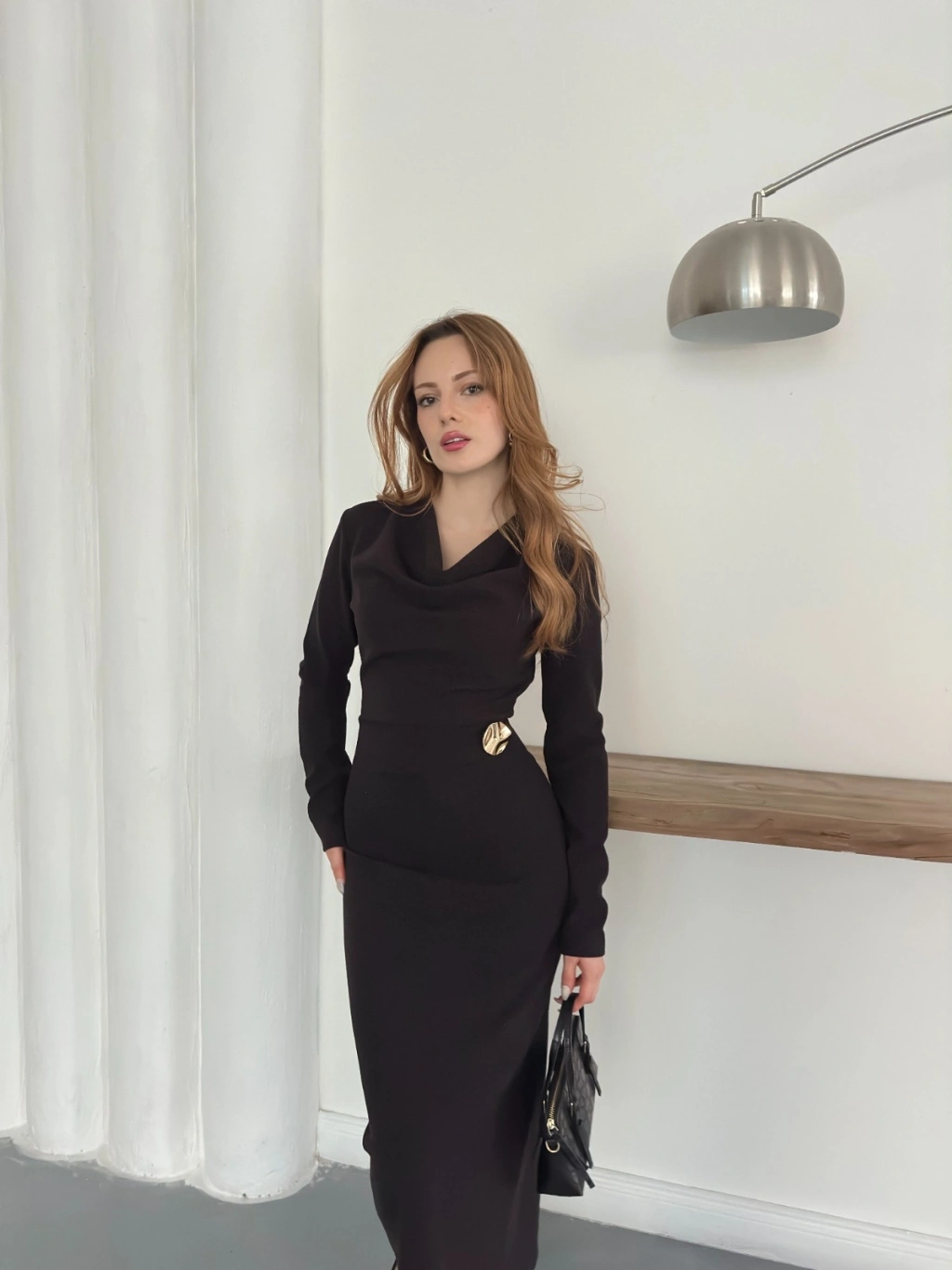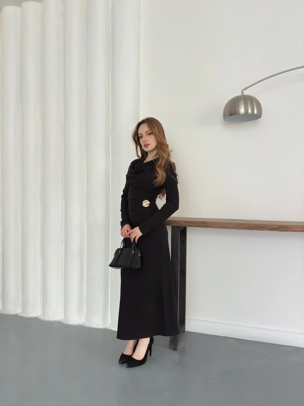 Aksesuar Detaylı Uzun Kol Elbise Siyah