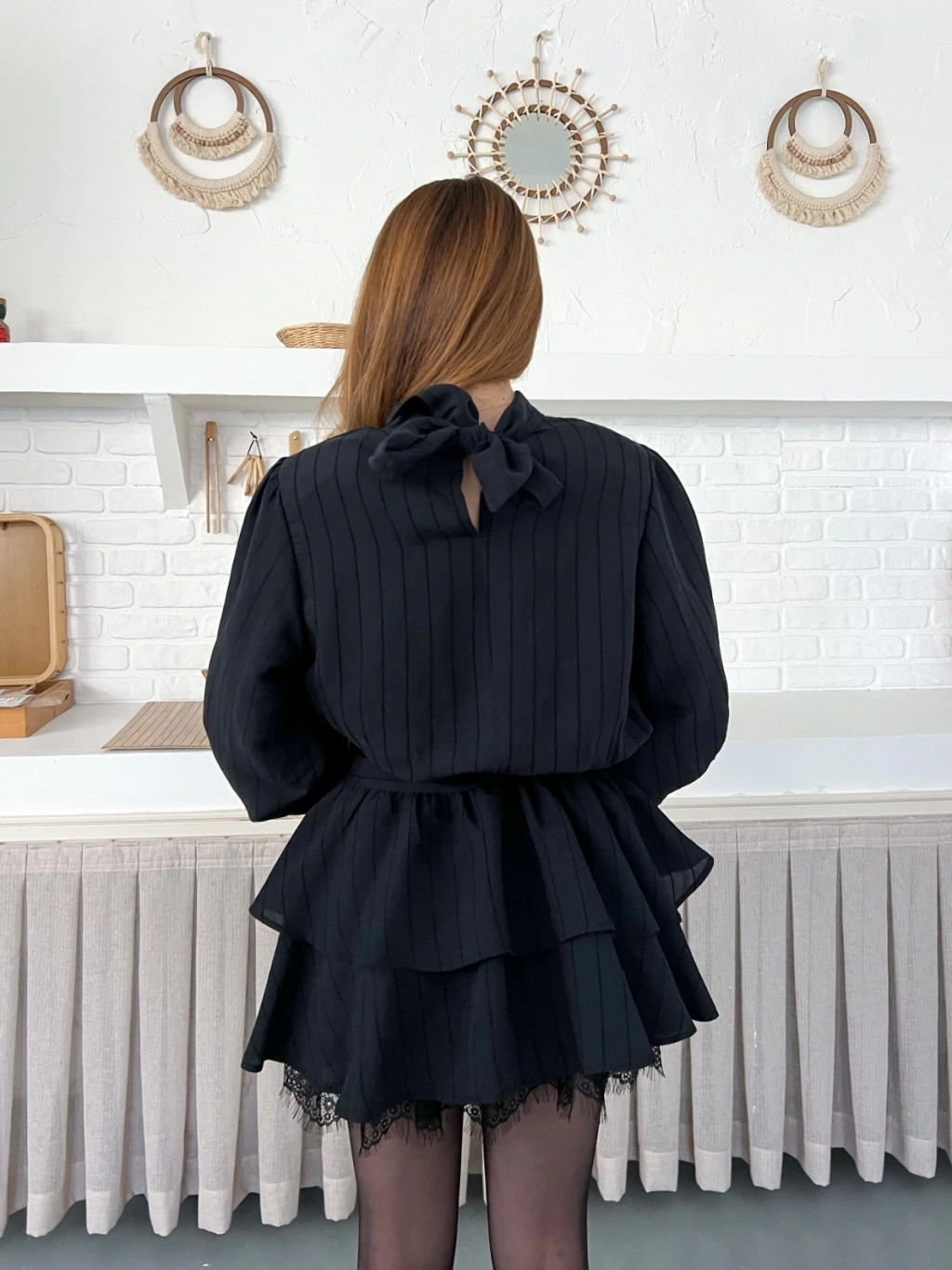 Arka Bağlama Detaylı Dantelli Elbise Siyah