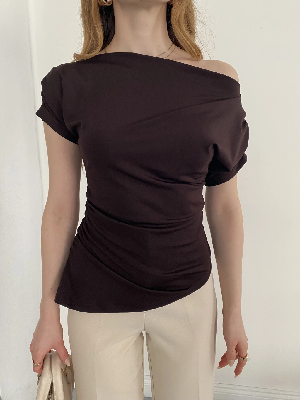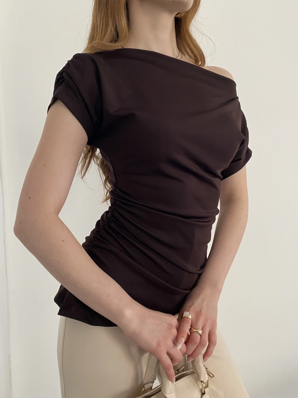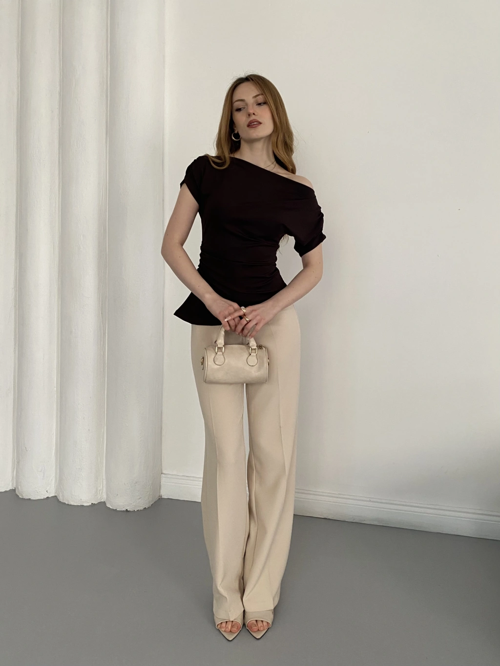 Asimetrik Kesim Tek Omuz Bluz Kahve