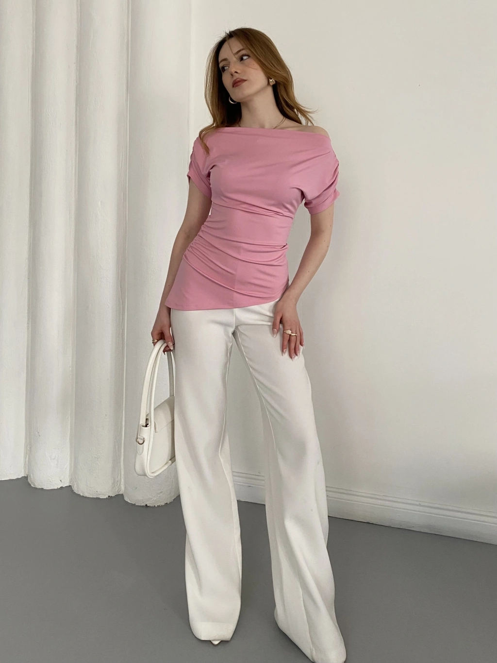 Asimetrik Kesim Tek Omuz Bluz Pembe
