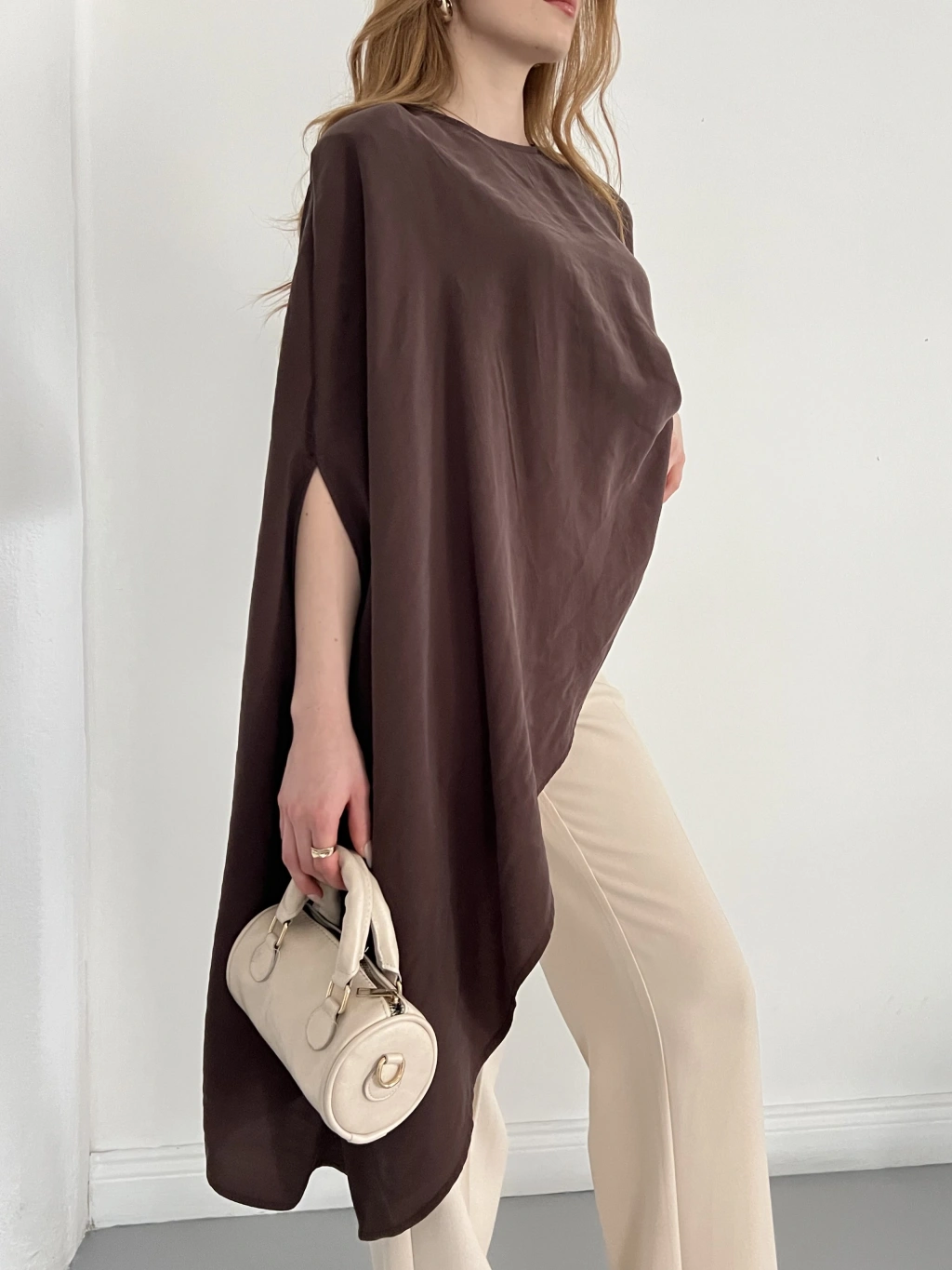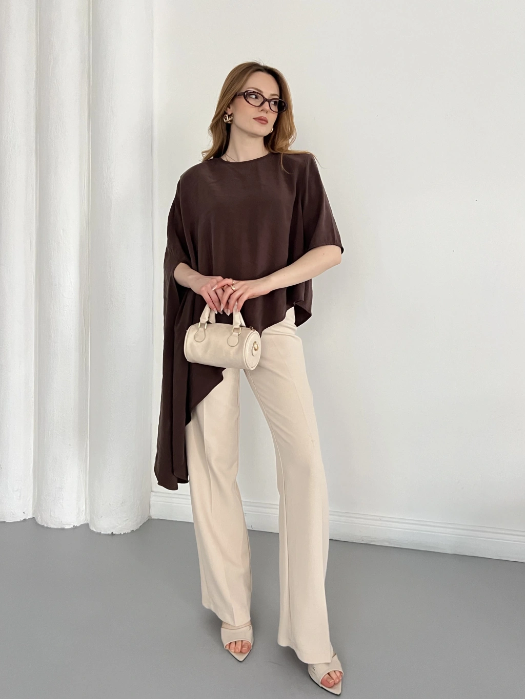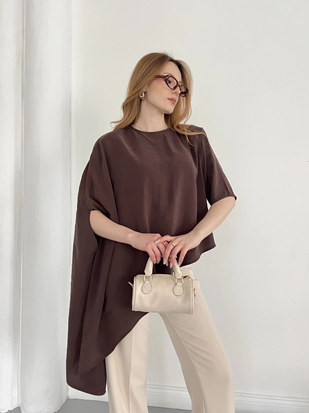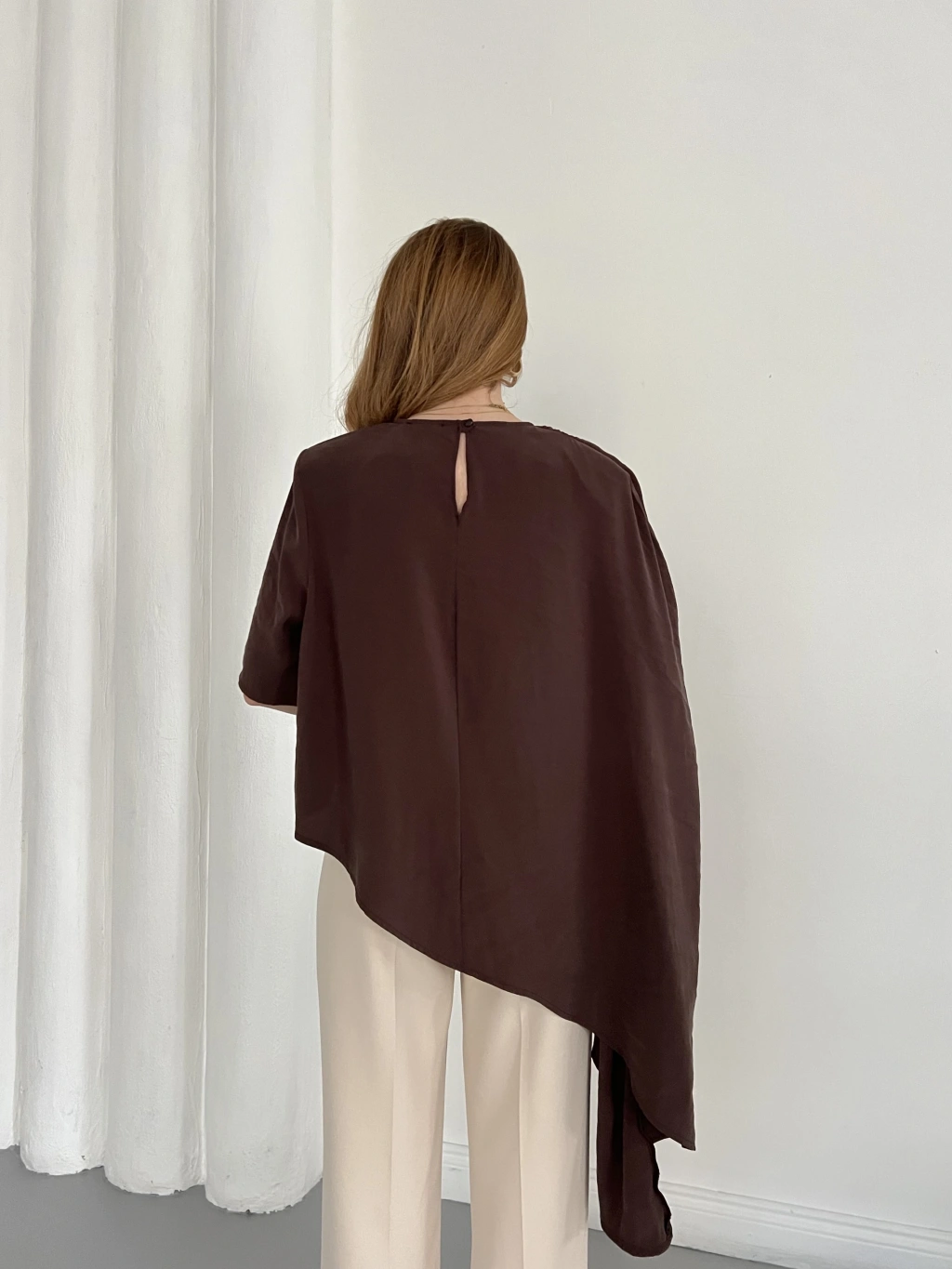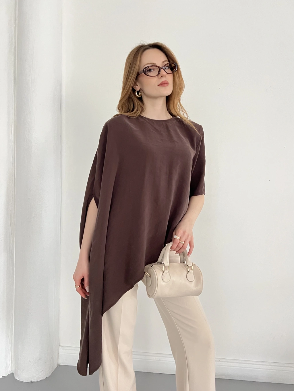 Asimetrik Kesim Tek Omuz Bluz Kahve