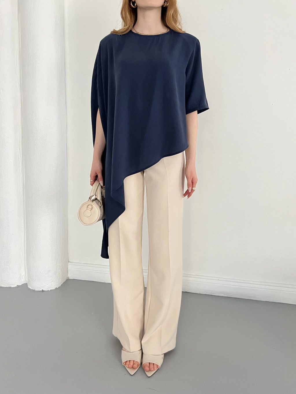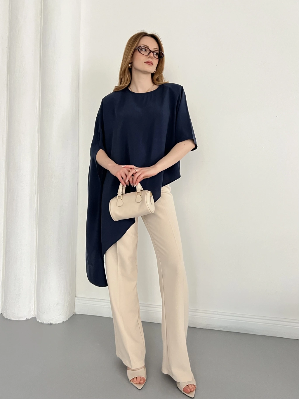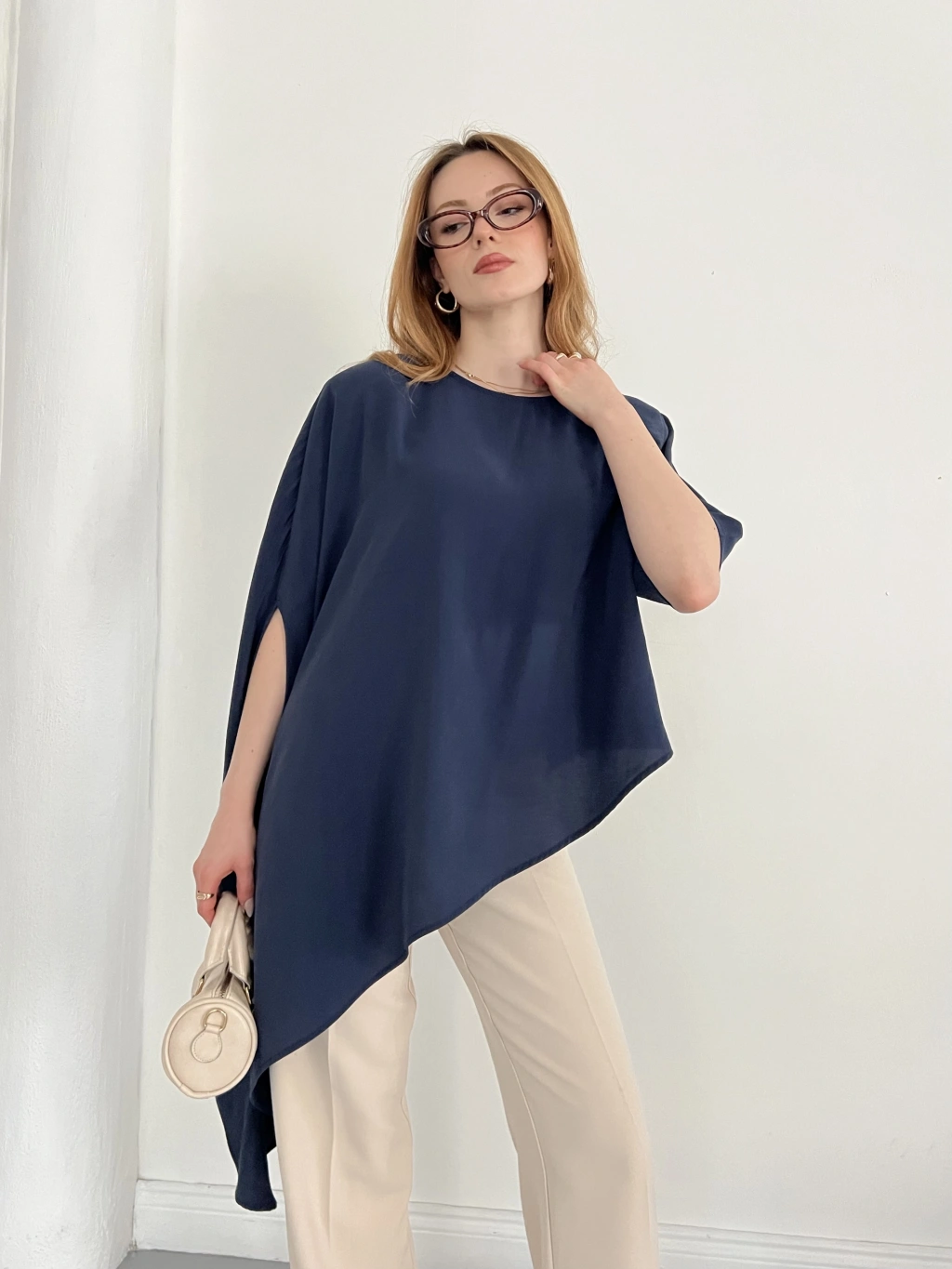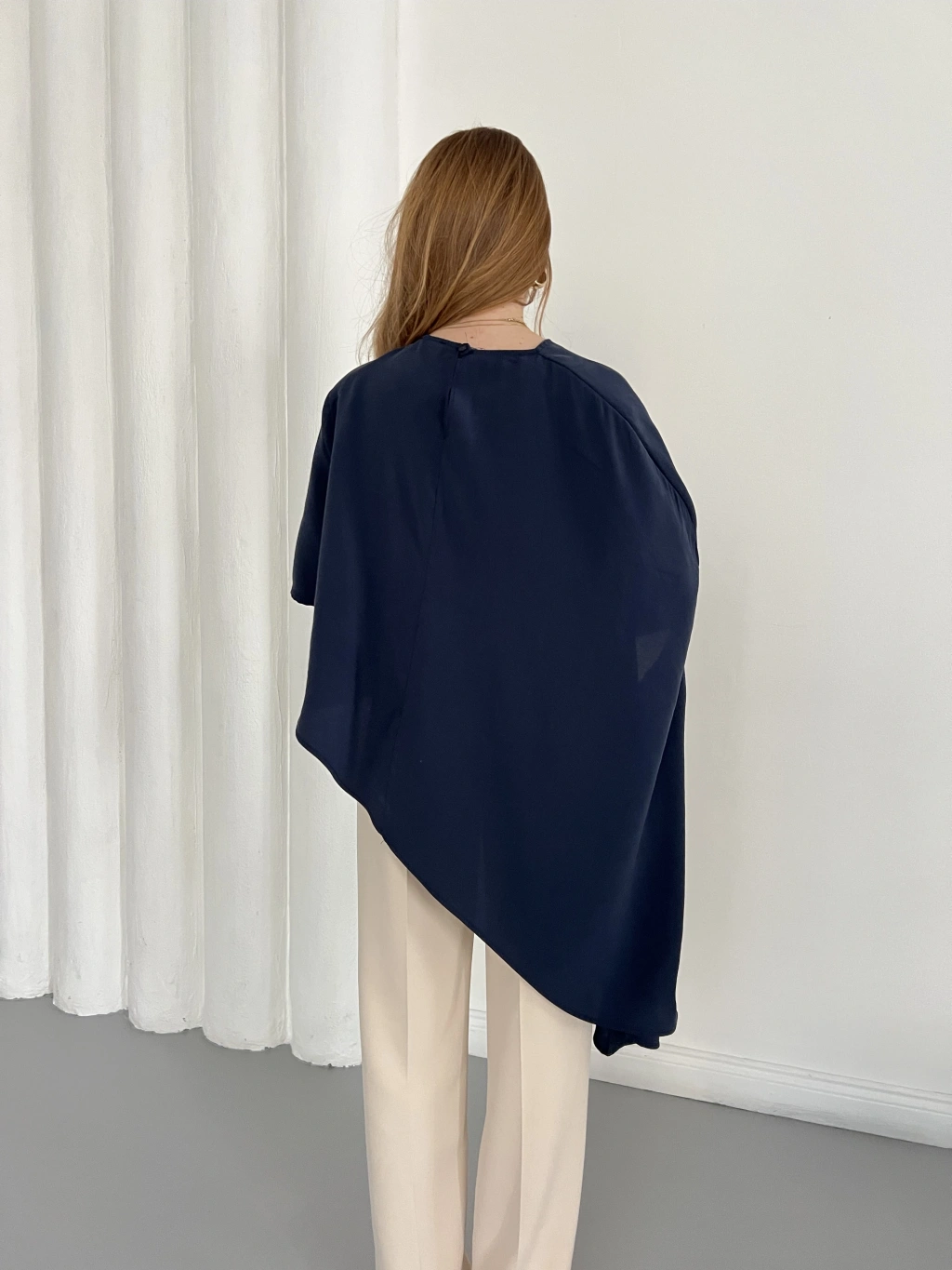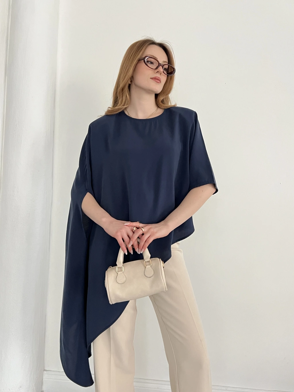 Asimetrik Kesim Vatkalı Tasarım Bluz Lacivert