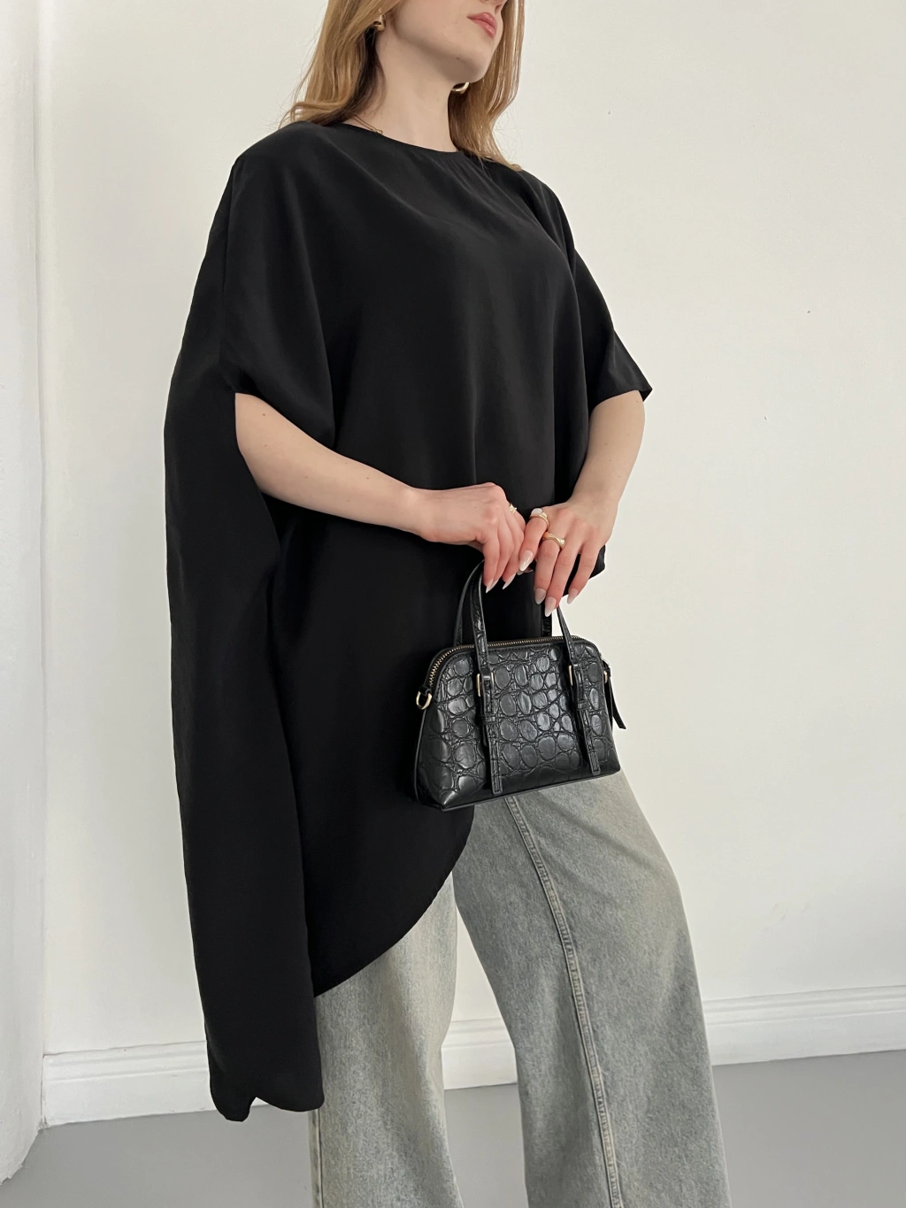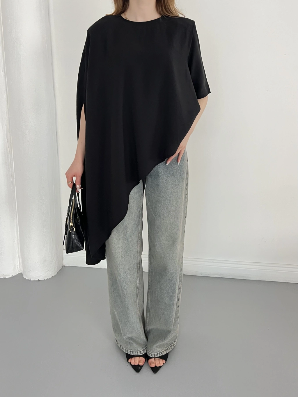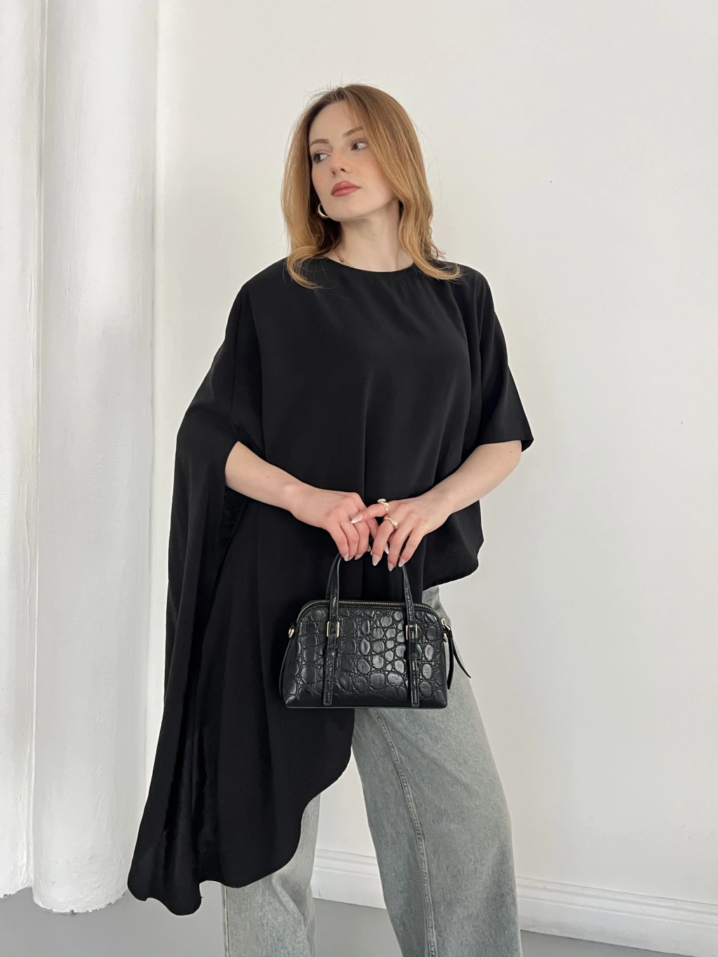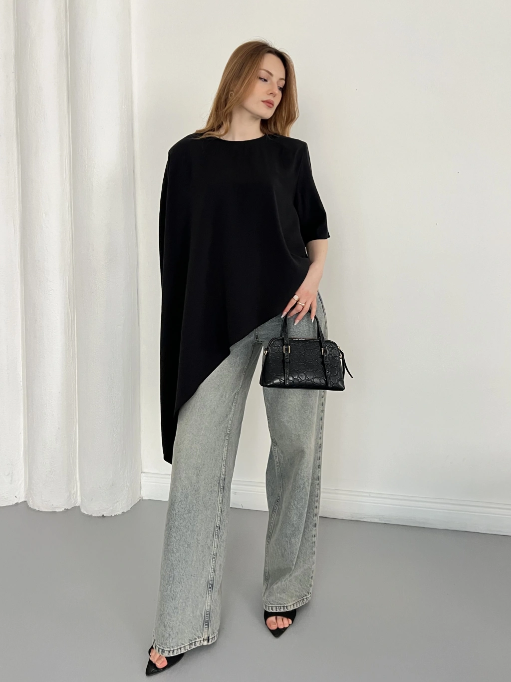 Asimetrik Kesim Vatkalı Tasarım Bluz Siyah