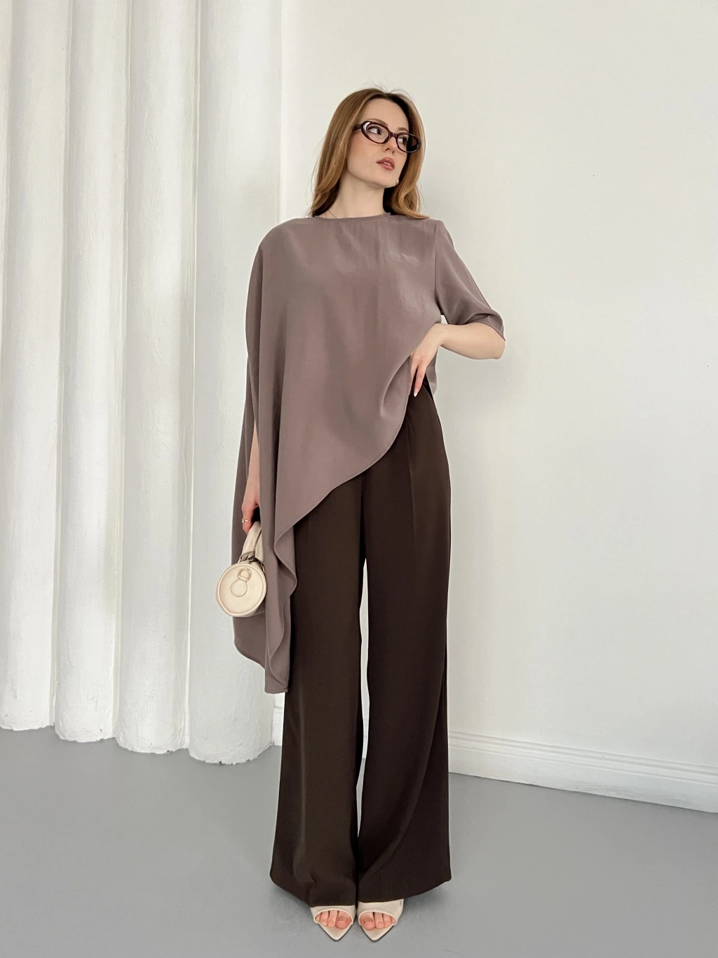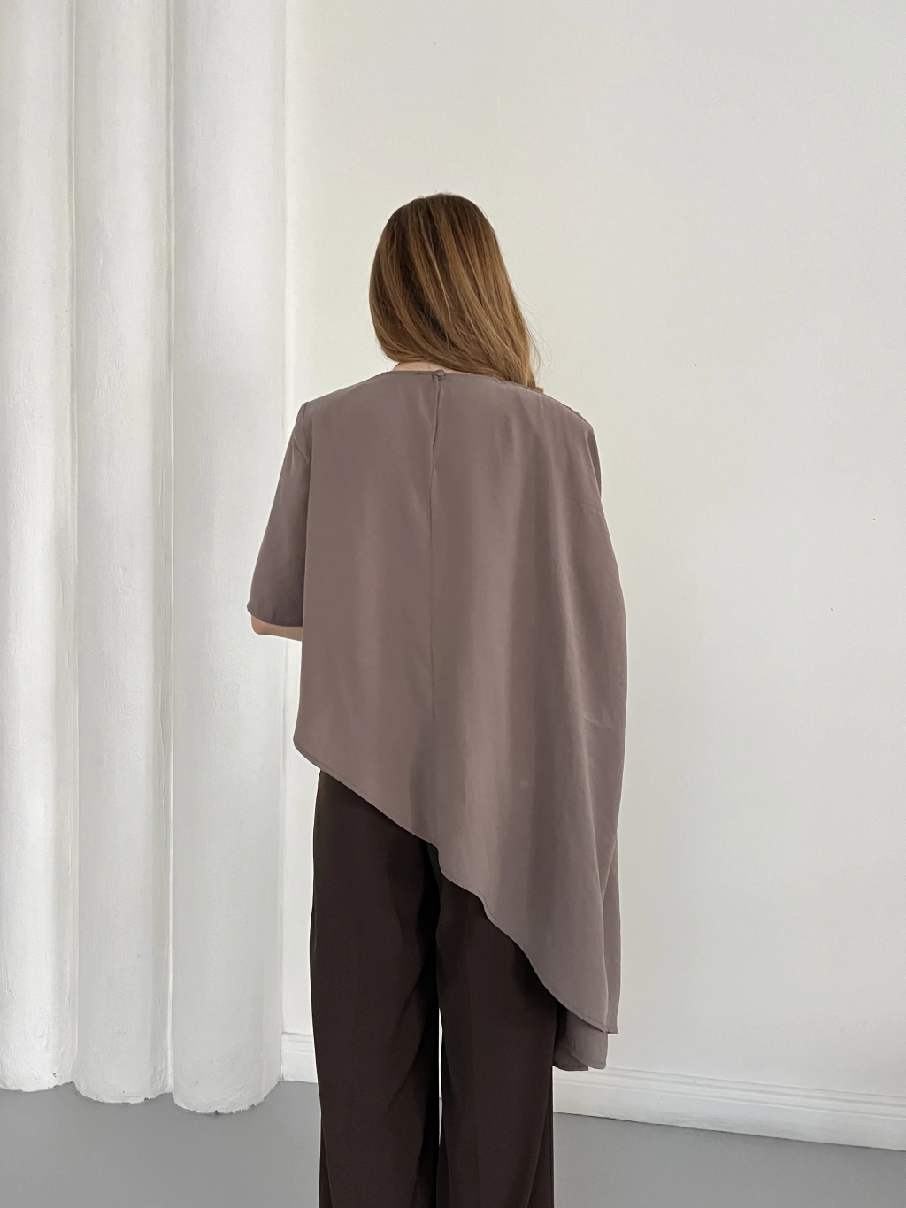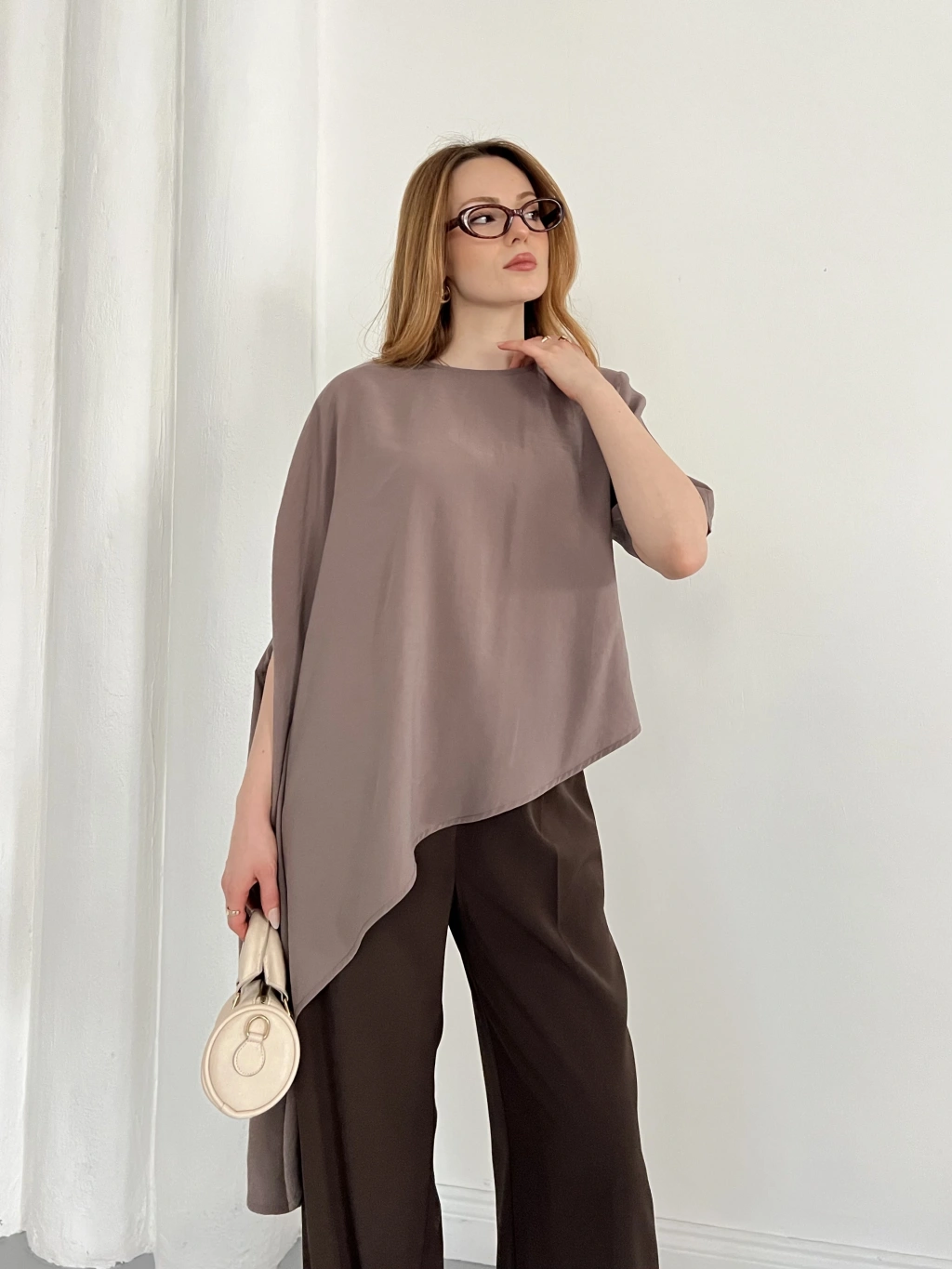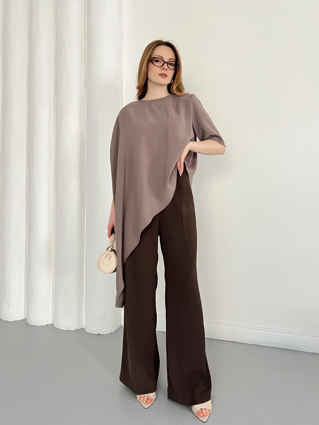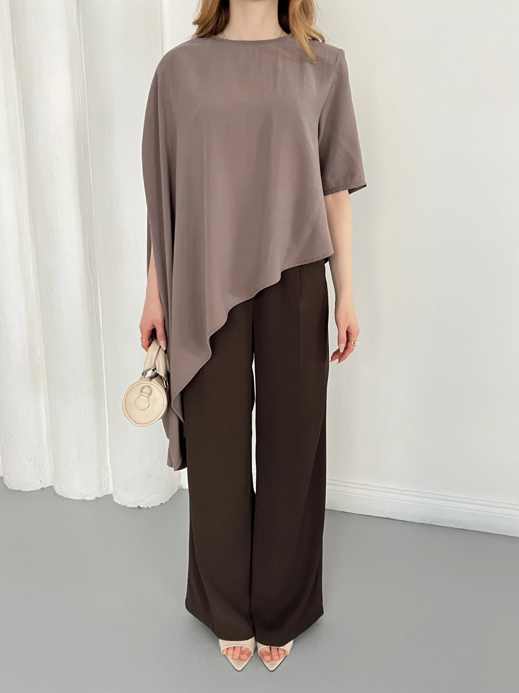 Asimetrik Kesim Tek Omuz Bluz Kahve