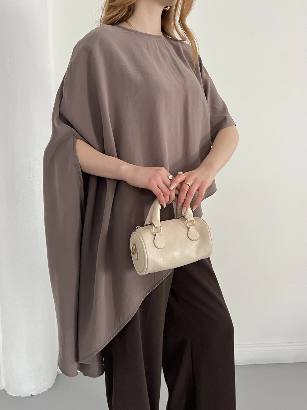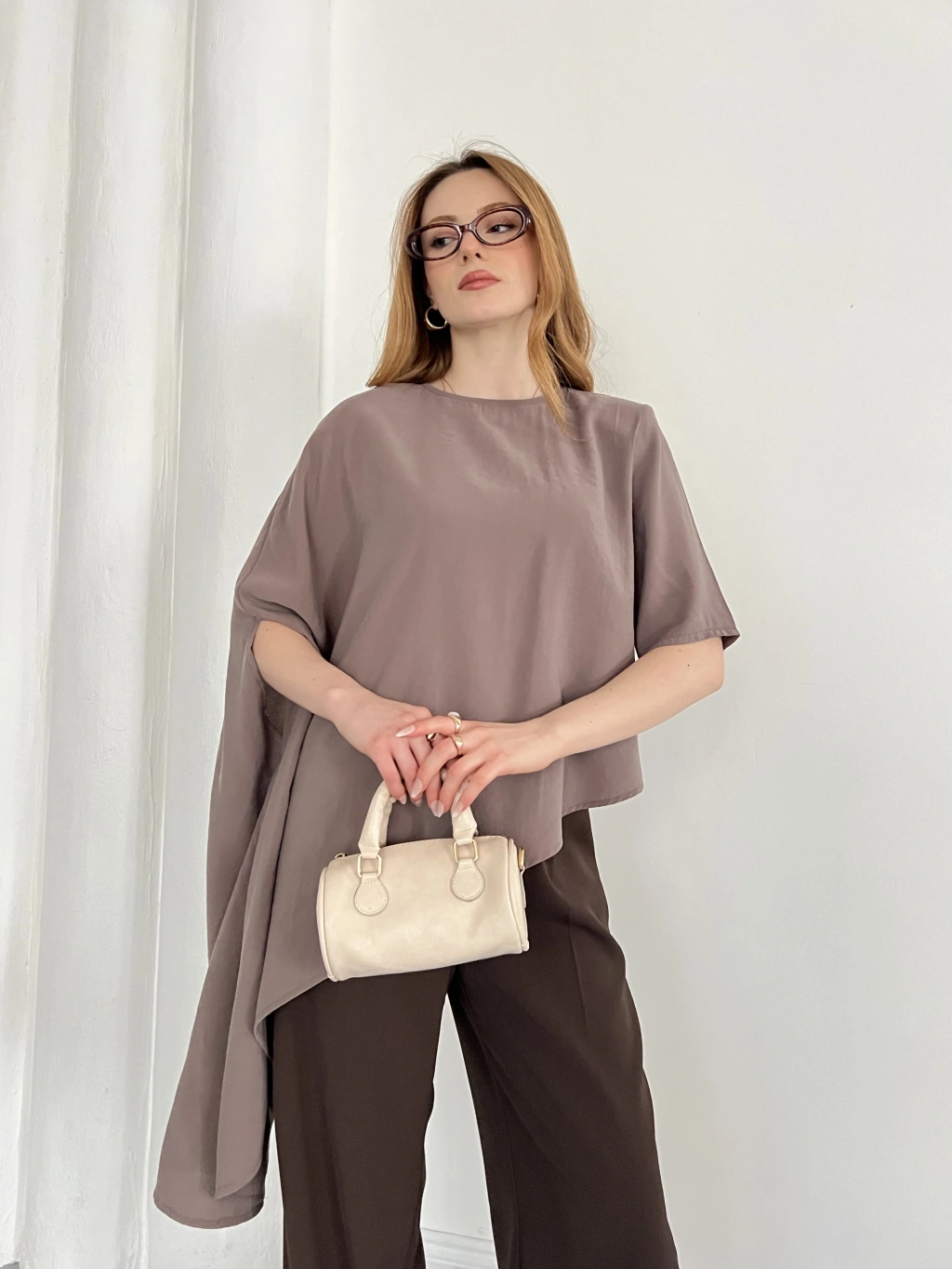 Asimetrik Kesim Vatkalı Tasarım Bluz Vizon