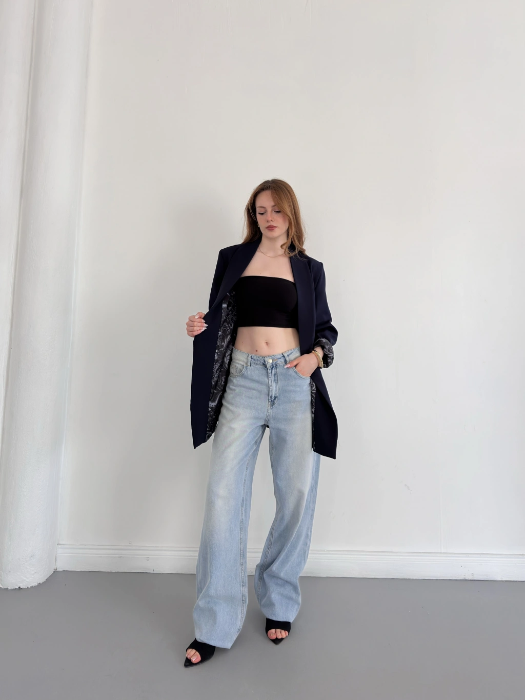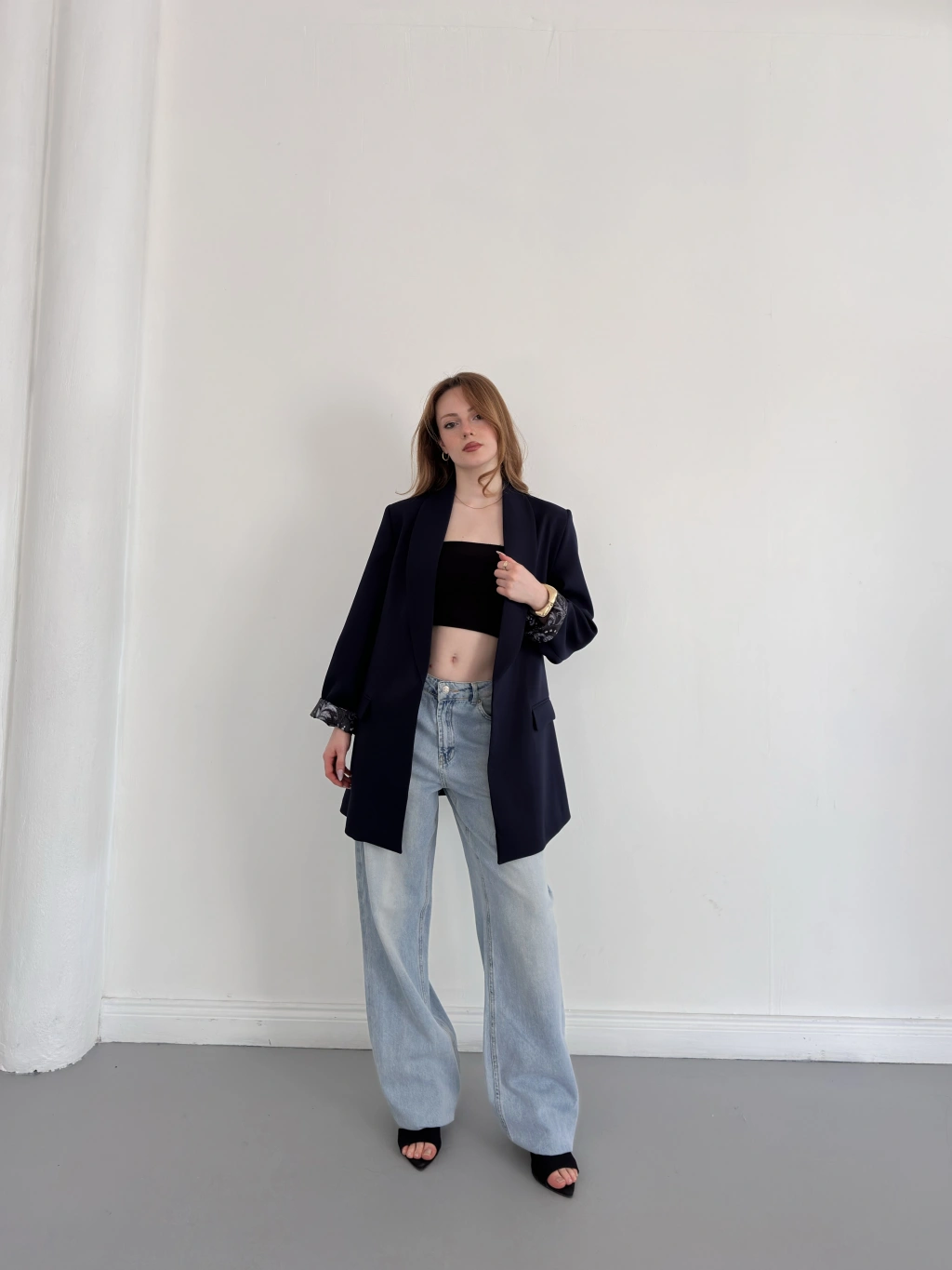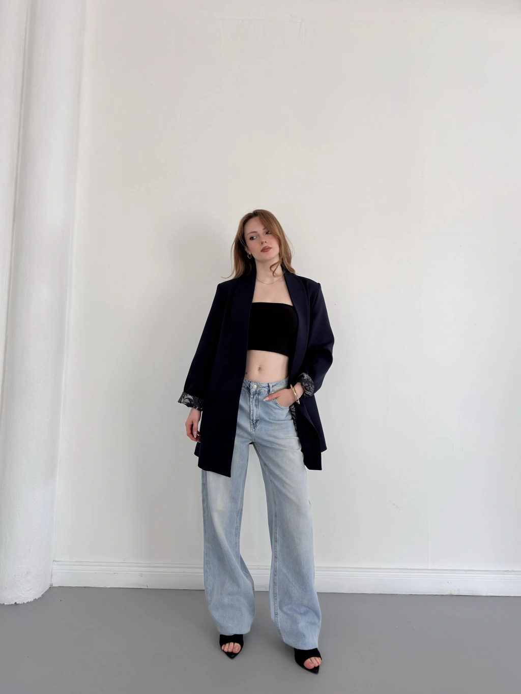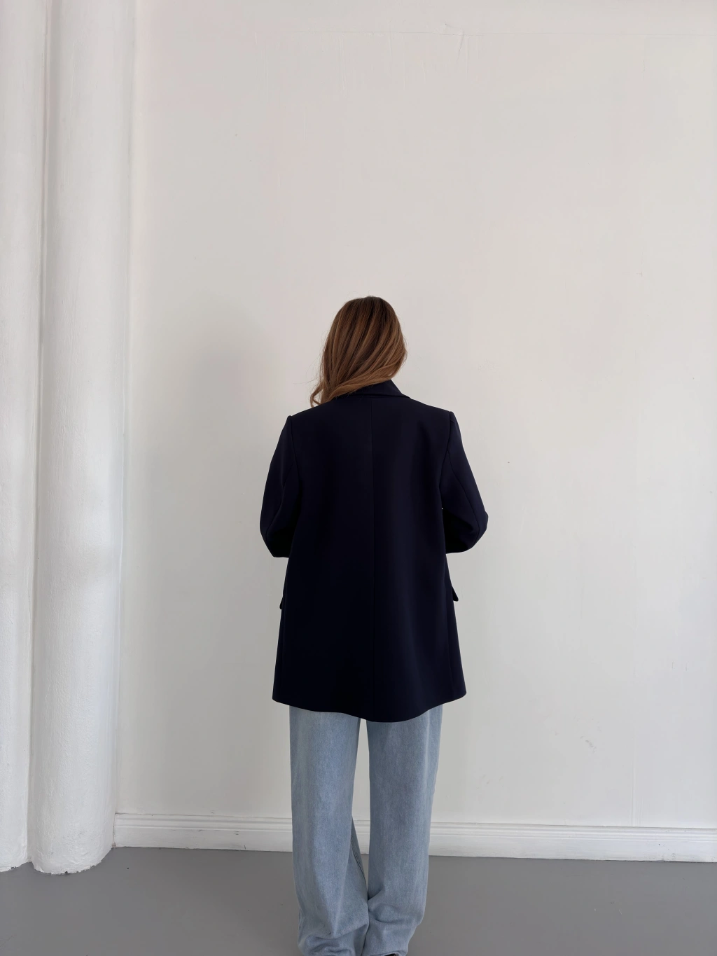 Kruvaze Yaka Tek Düğme Detaylı Tasarım Ceket Lacivert