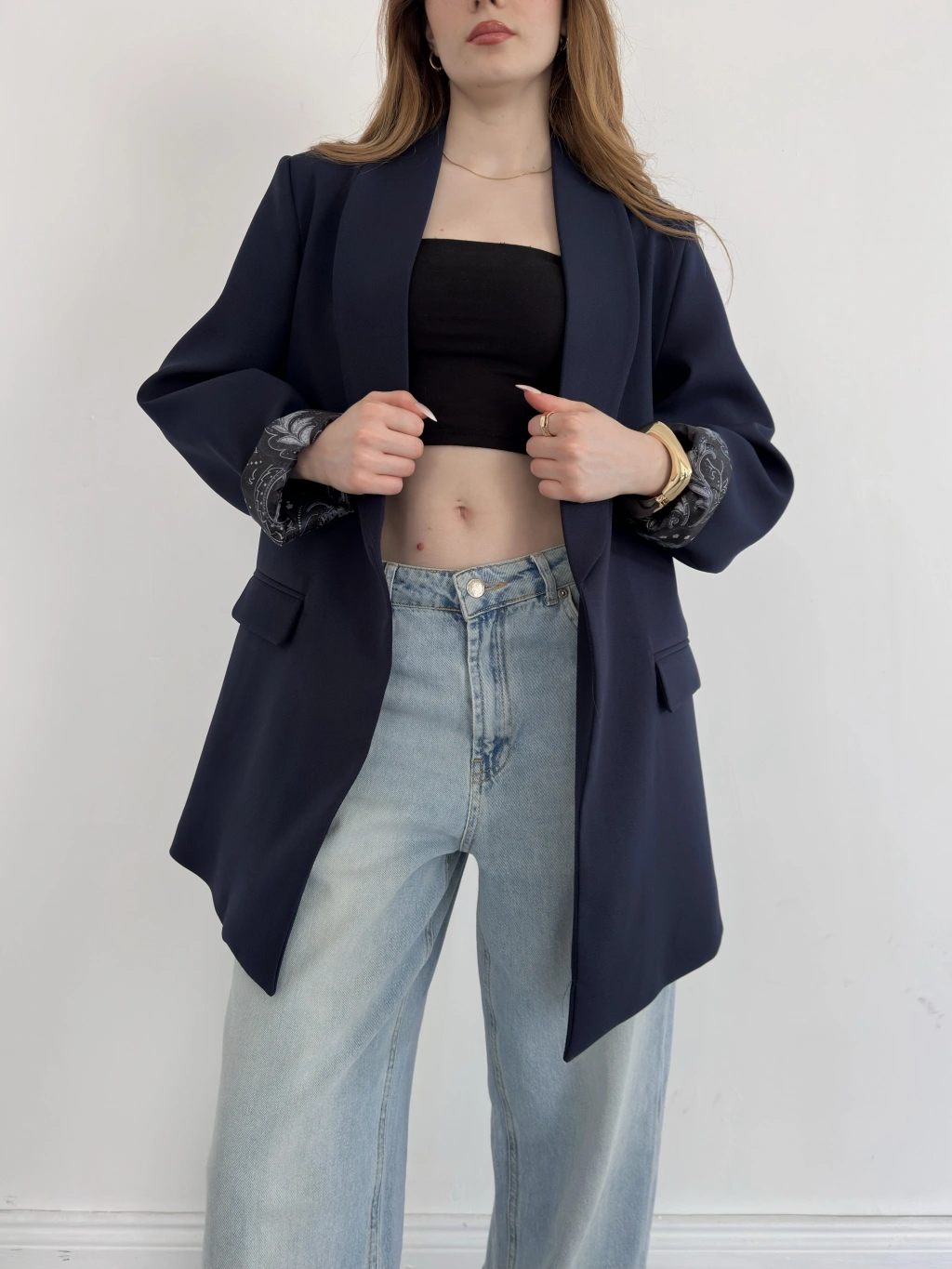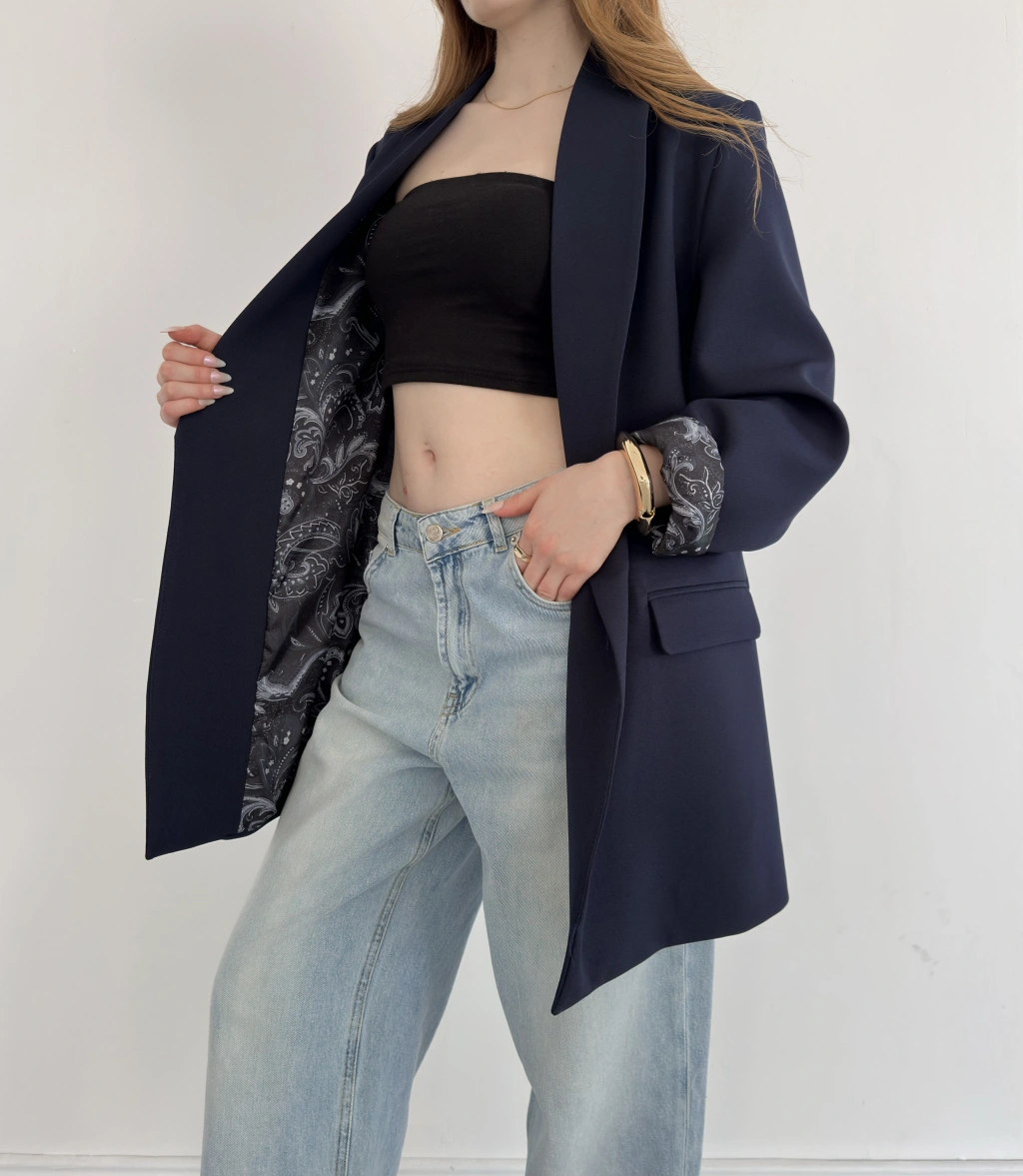 Astarı Desenli Blazer Ceket Lacivert