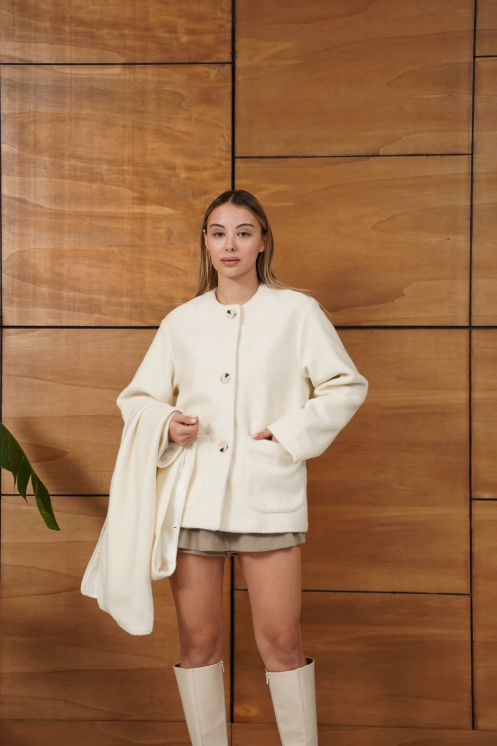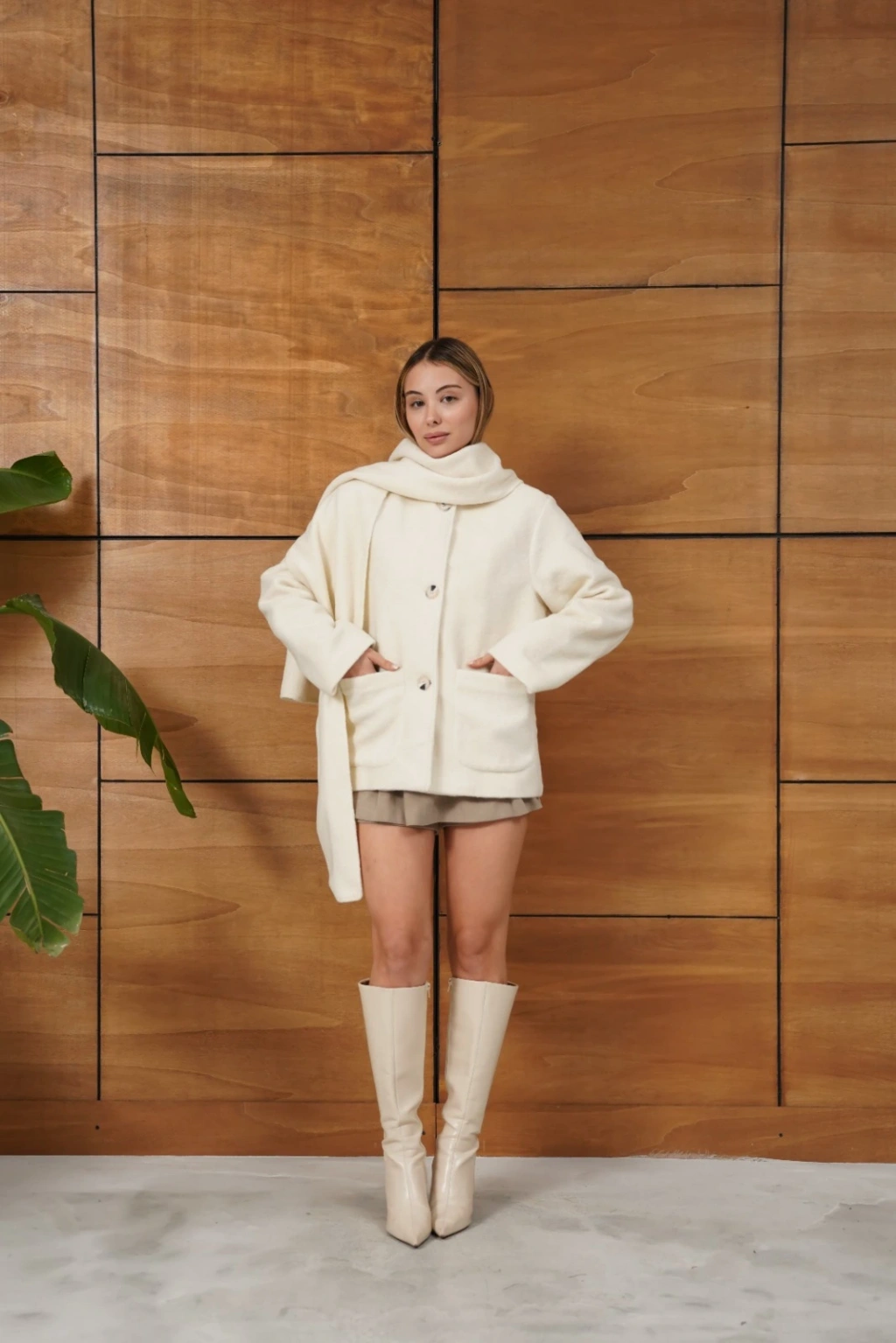 Atkı Detaylı Yumoş A Kalite Ceket Ekru