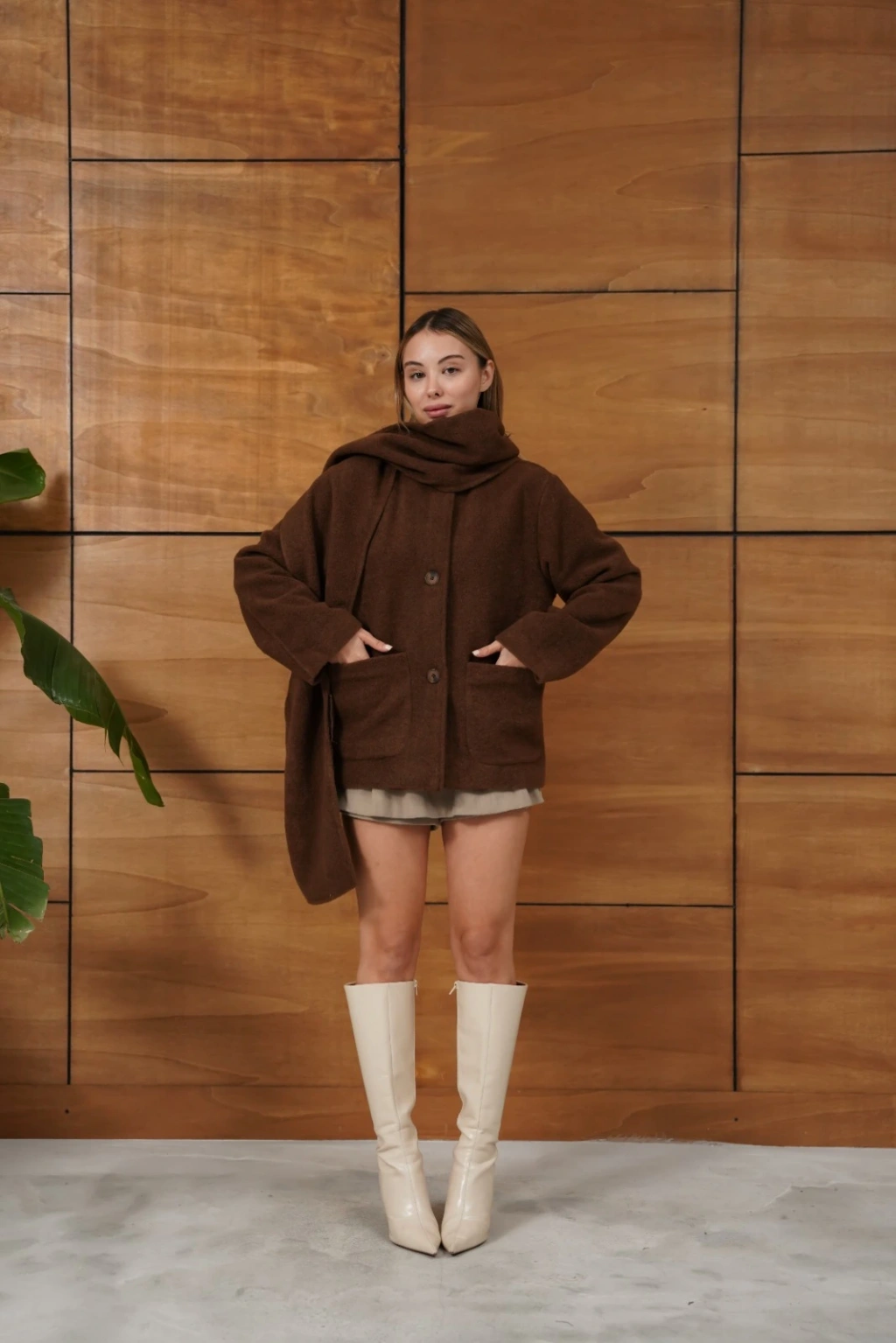 Atkı Detaylı Yumoş A Kalite Ceket Kahve