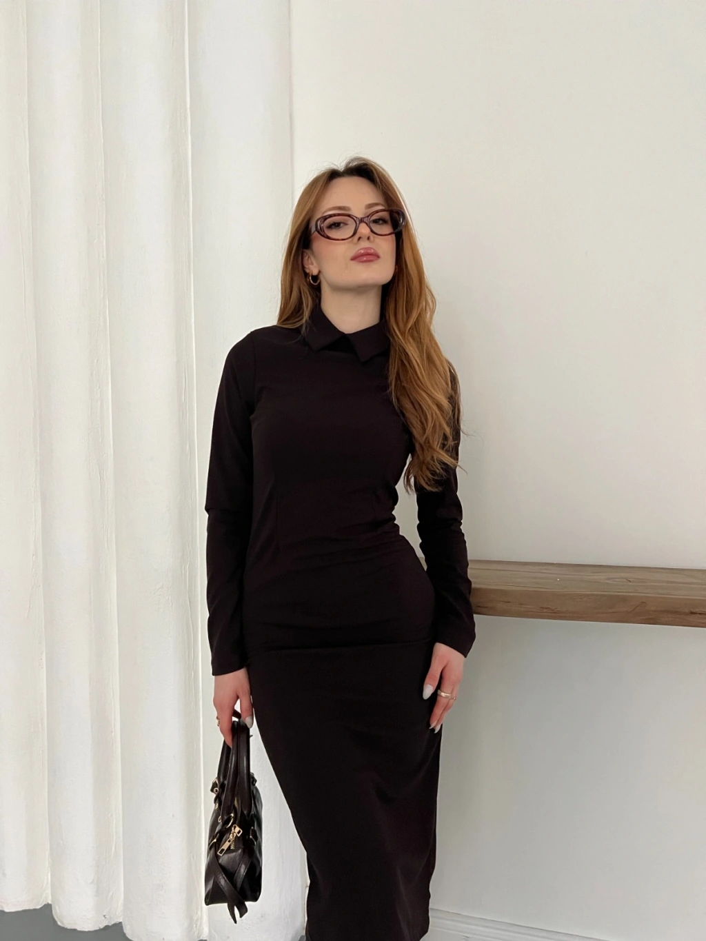 Bebe Yaka Uzun Kol Düğme Detaylı Elbise