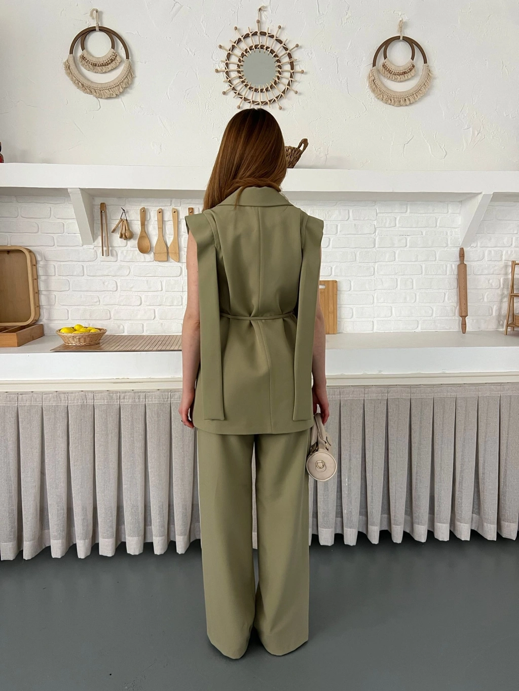 Kemerli Yüksek Bel Bol Paça Pantolon Haki