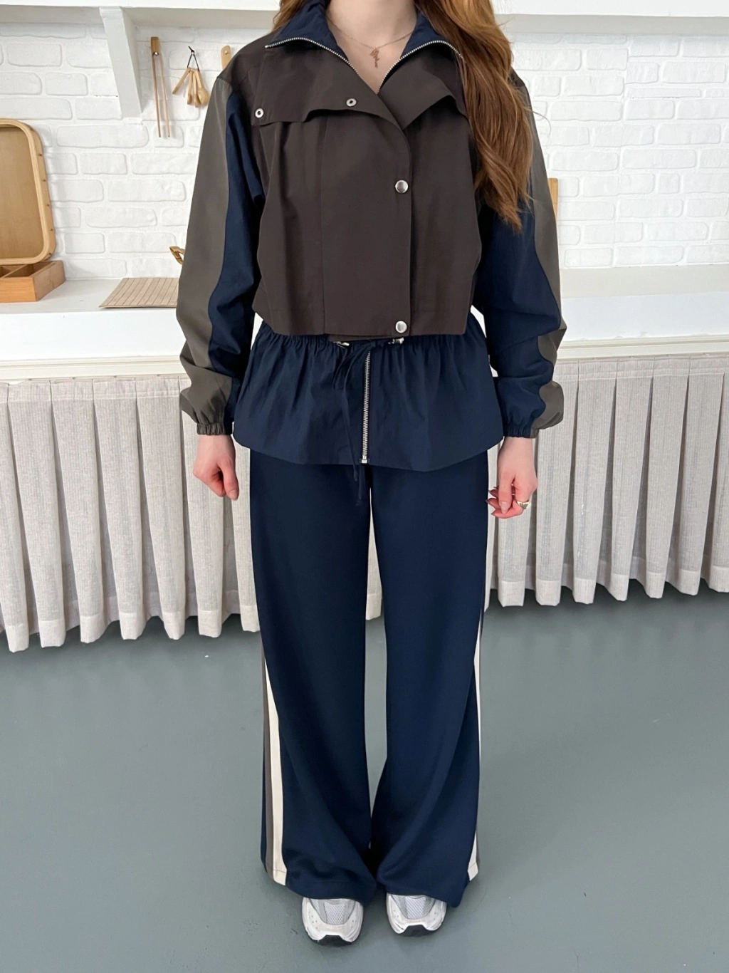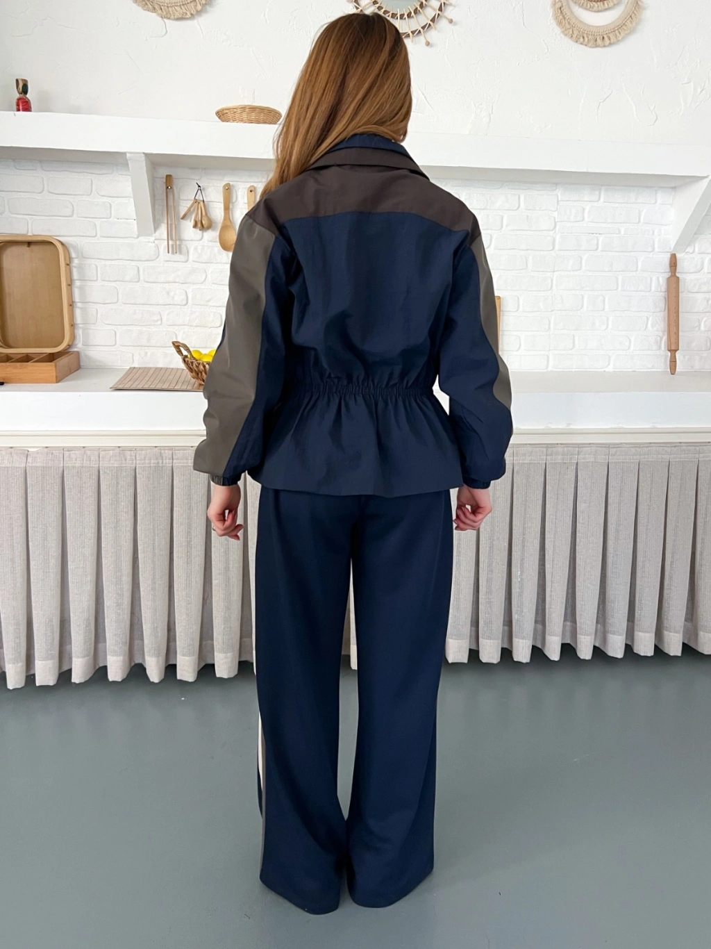 Blok Renk Tasarımlı Çıtçıt Detaylı Bel Lastikli Takım