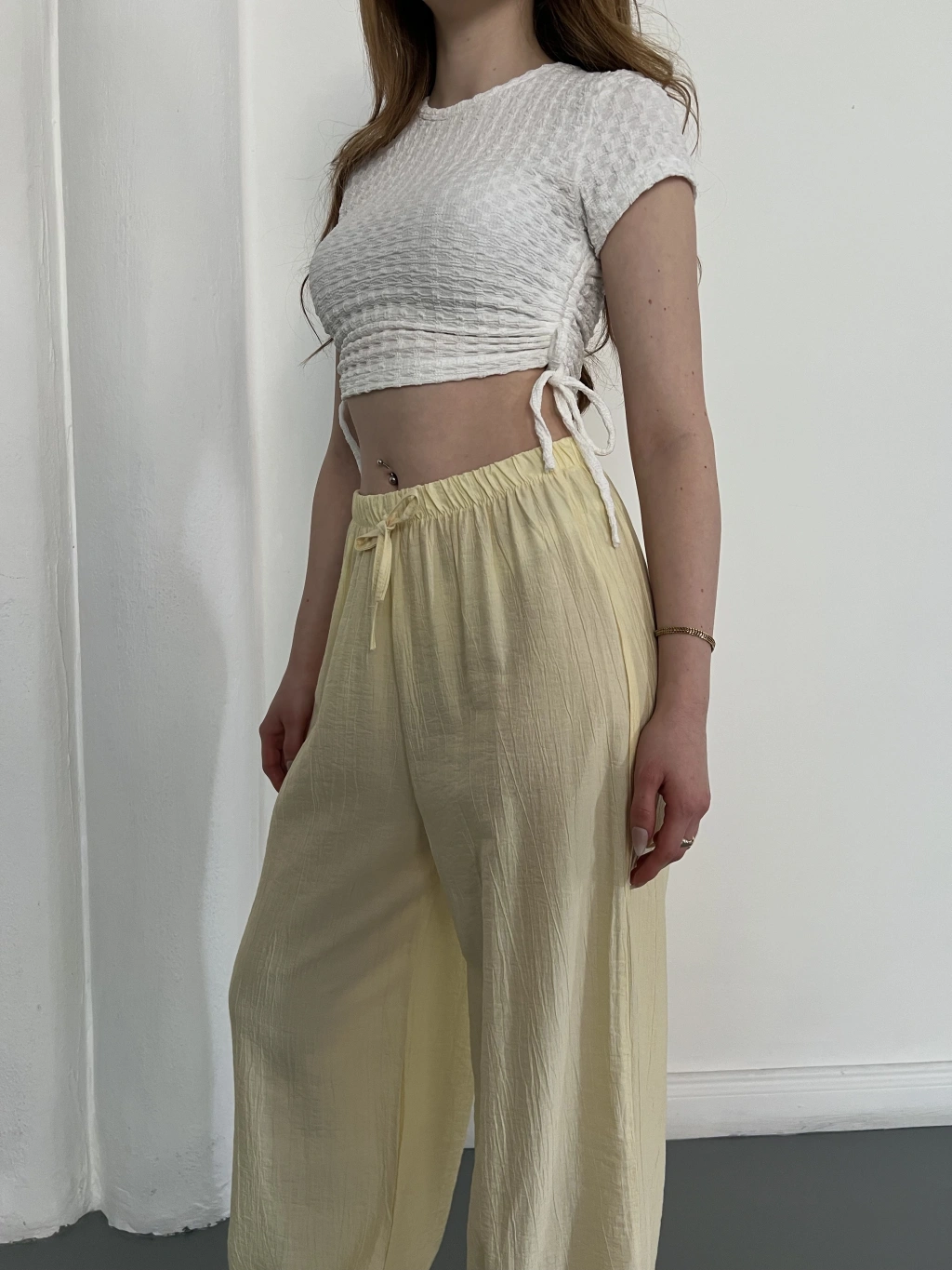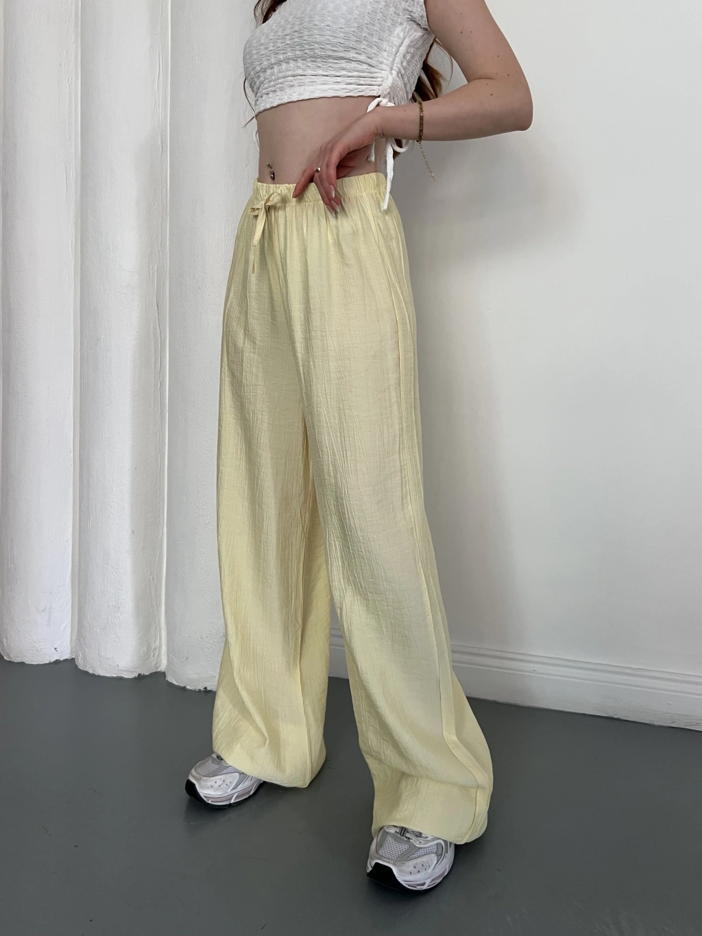 Çilek Kumaş Yüksek Bel Rahat Kalıp Pantolon Sarı