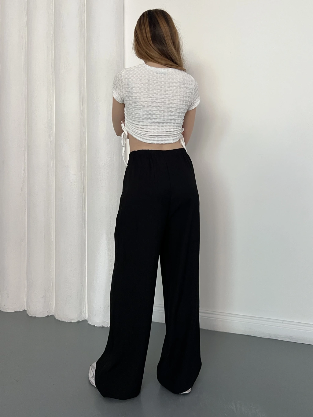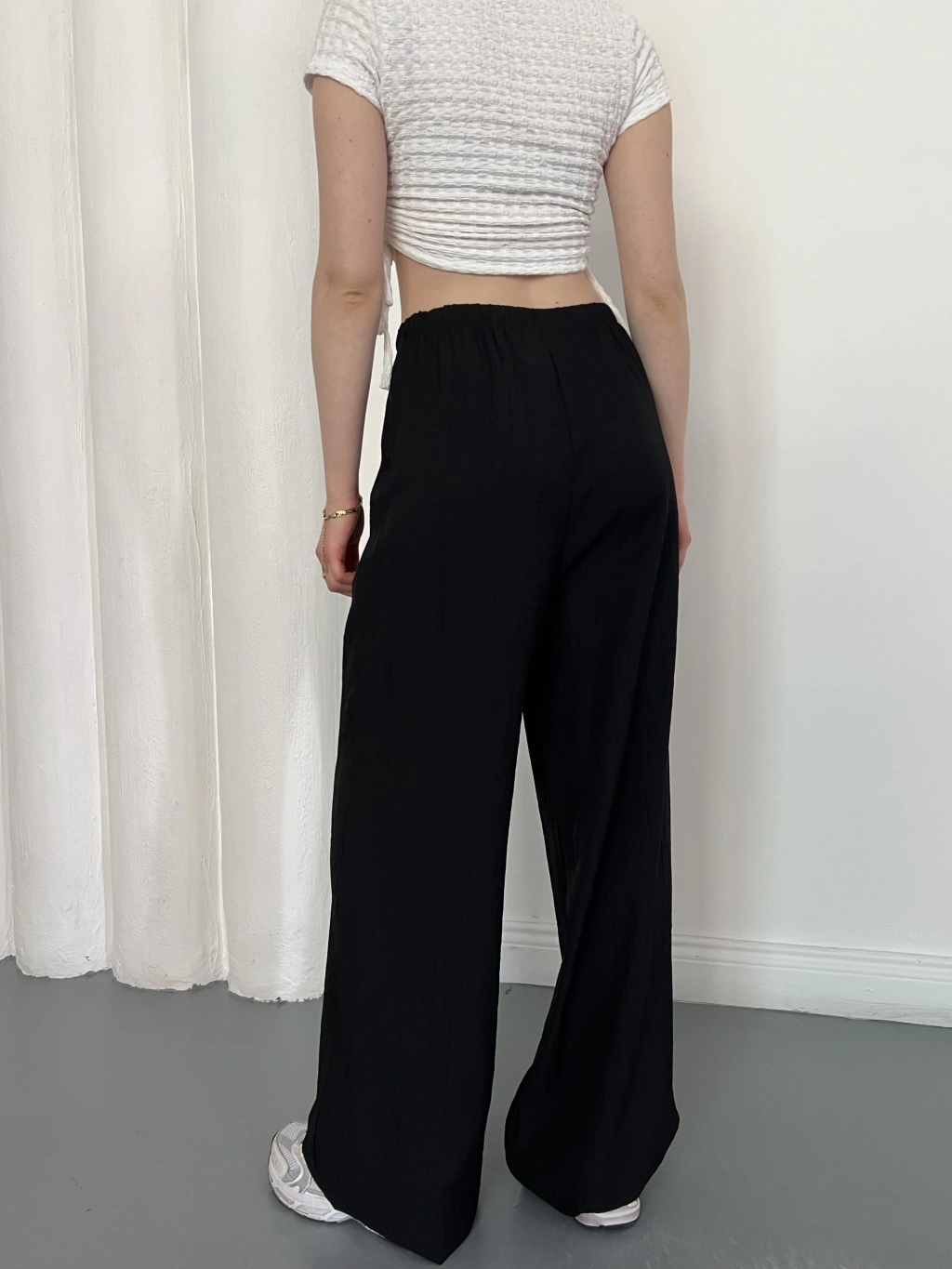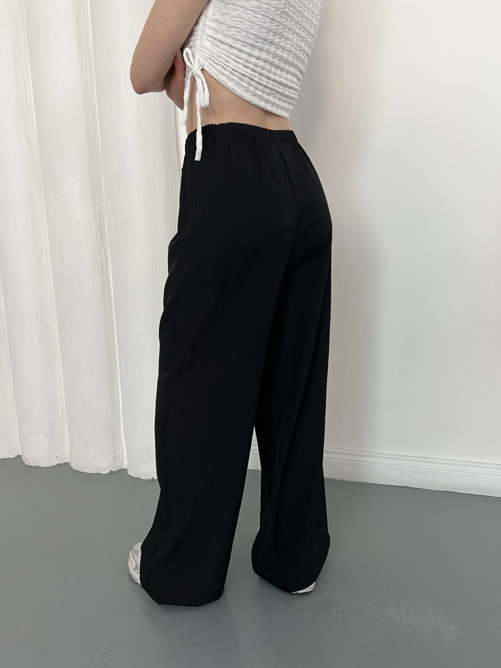 Çilek Kumaş Yüksek Bel Rahat Kalıp Pantolon Siyah