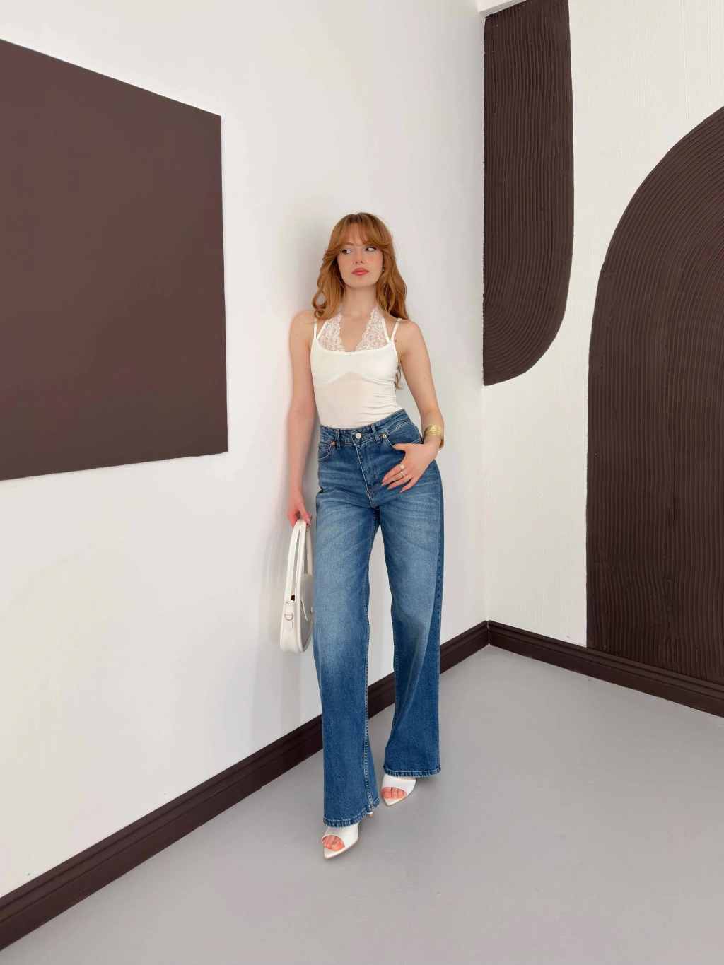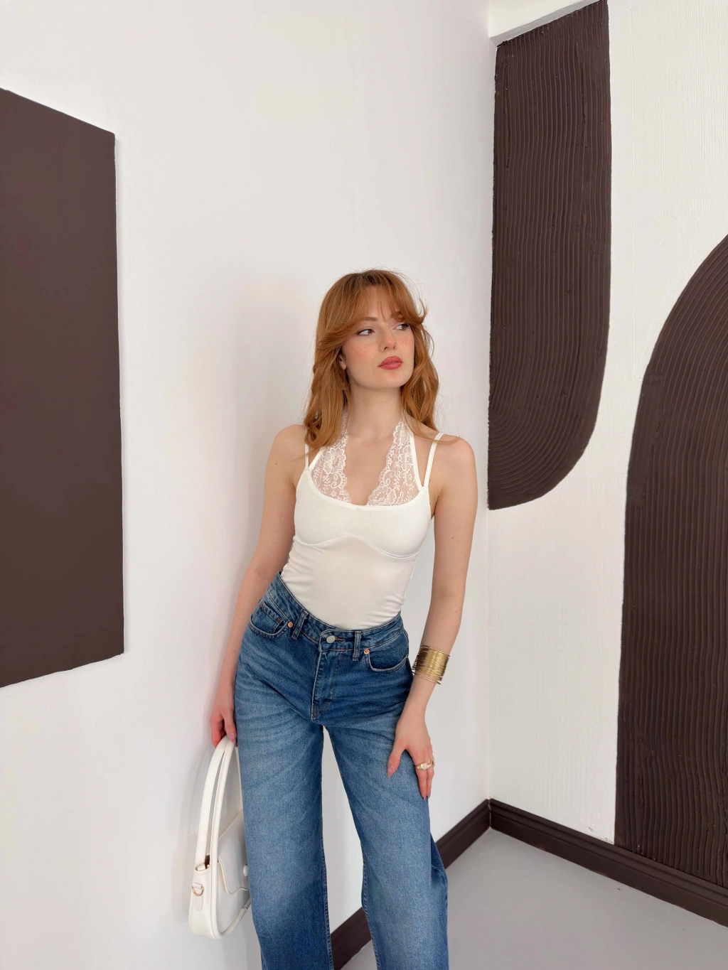 Dantel Detaylı Boyundan Bağlamalı Zıbın Beyaz
