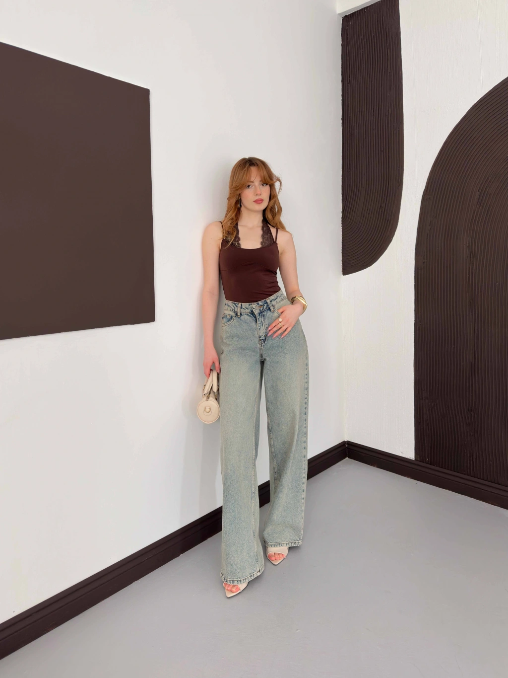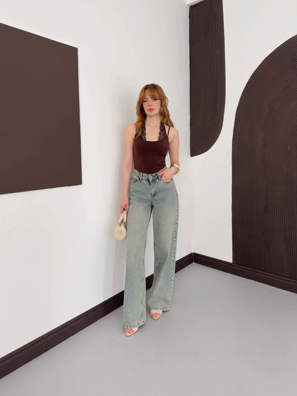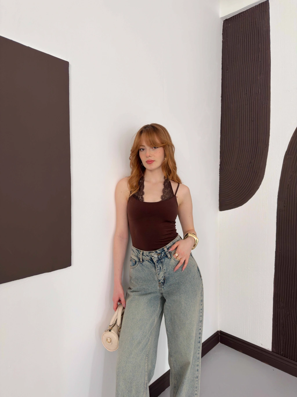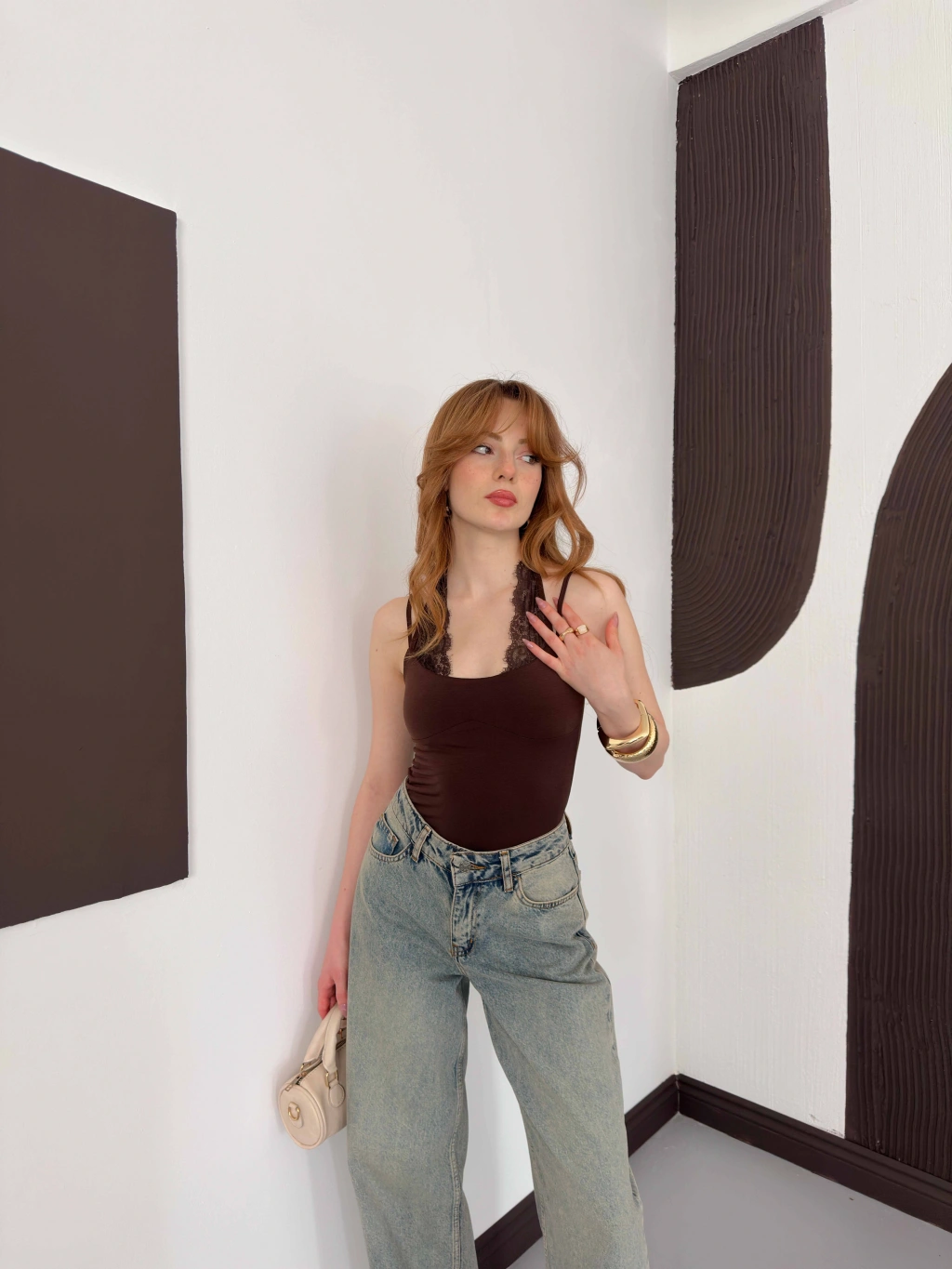 Dantel Detaylı Boyundan Bağlamalı Zıbın Kahve