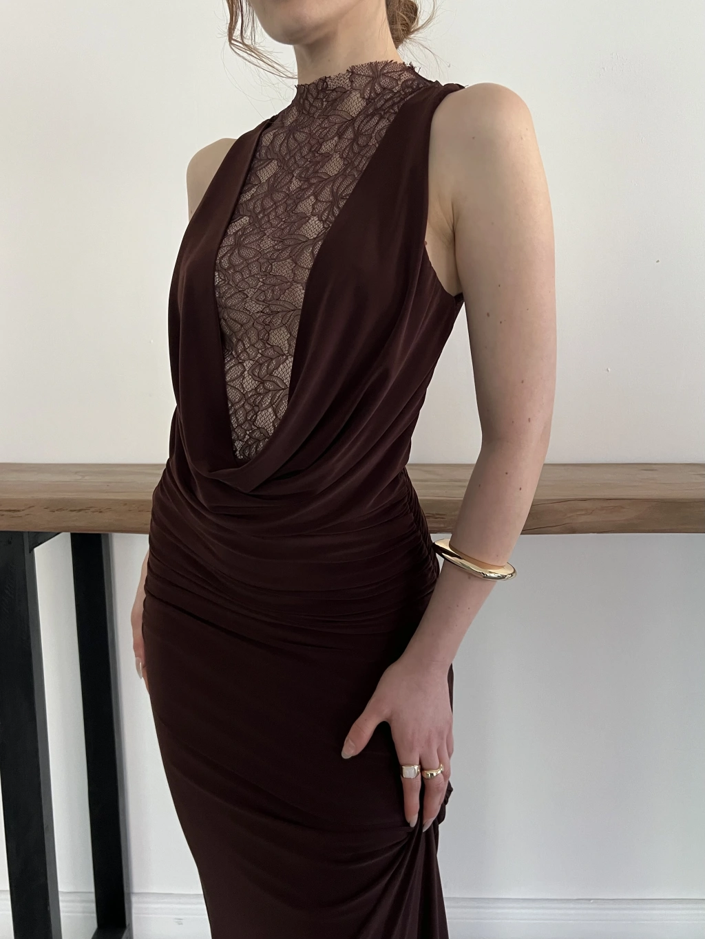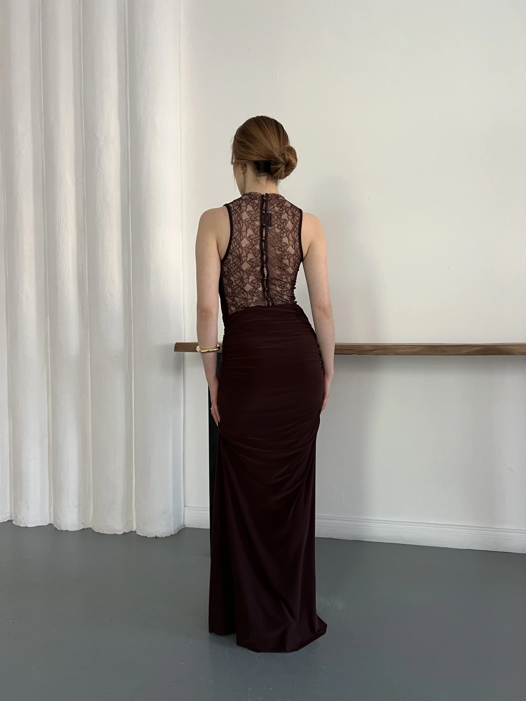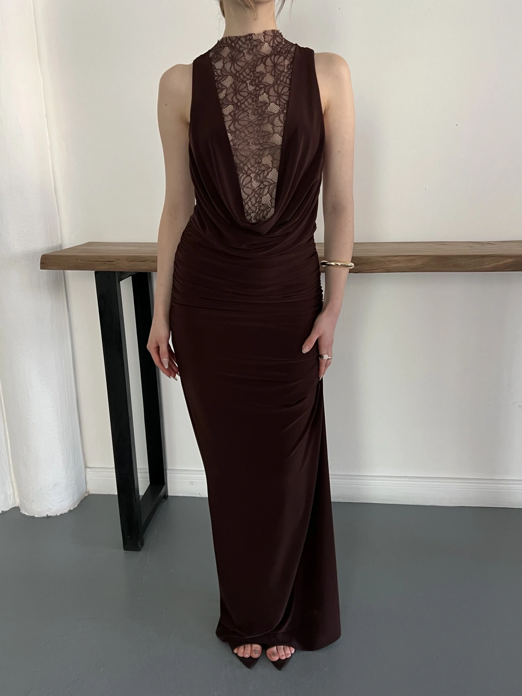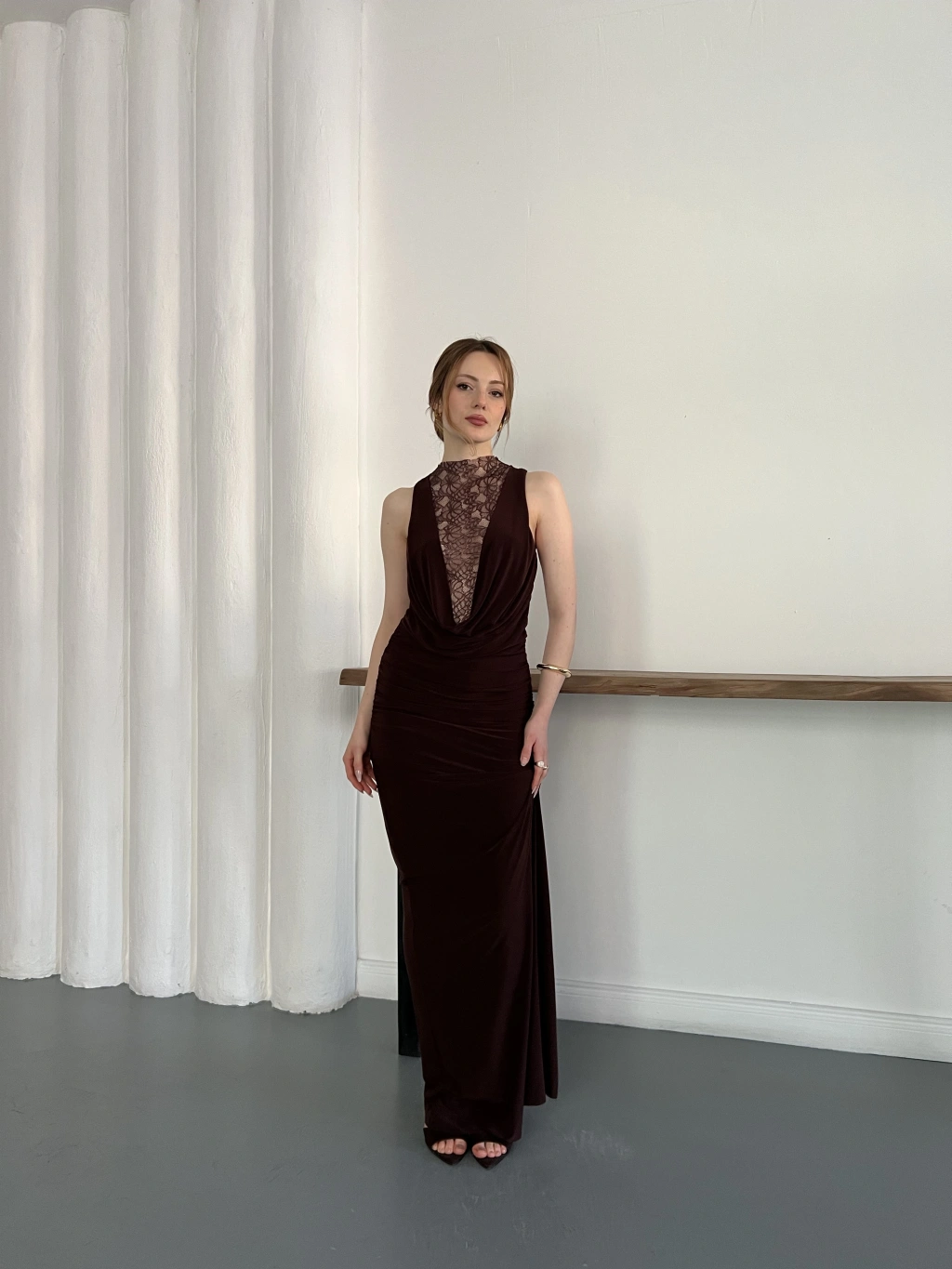Dantel Detaylı Drapeli Couture Gece Elbisesi