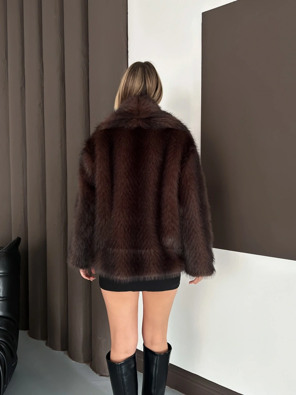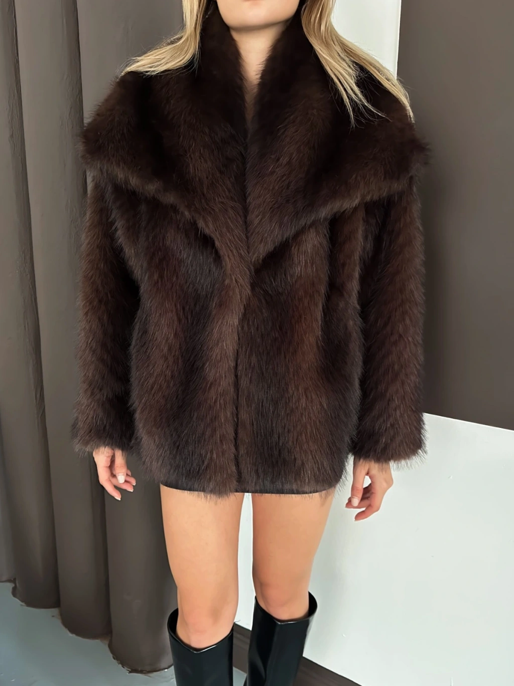 Desenli Çıtçıtlı A Kalite Kürk Kahve