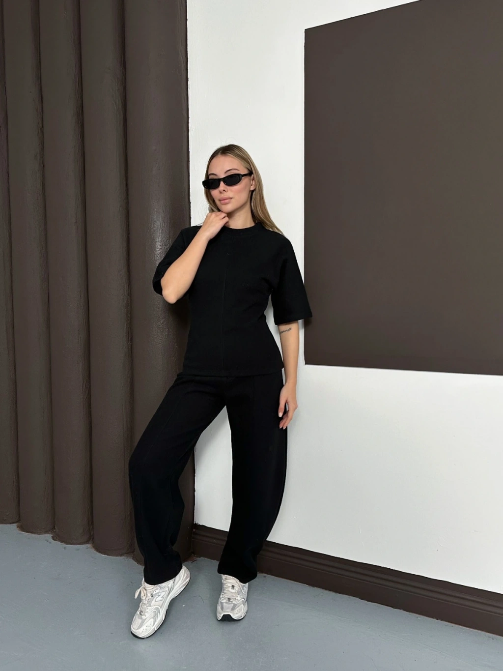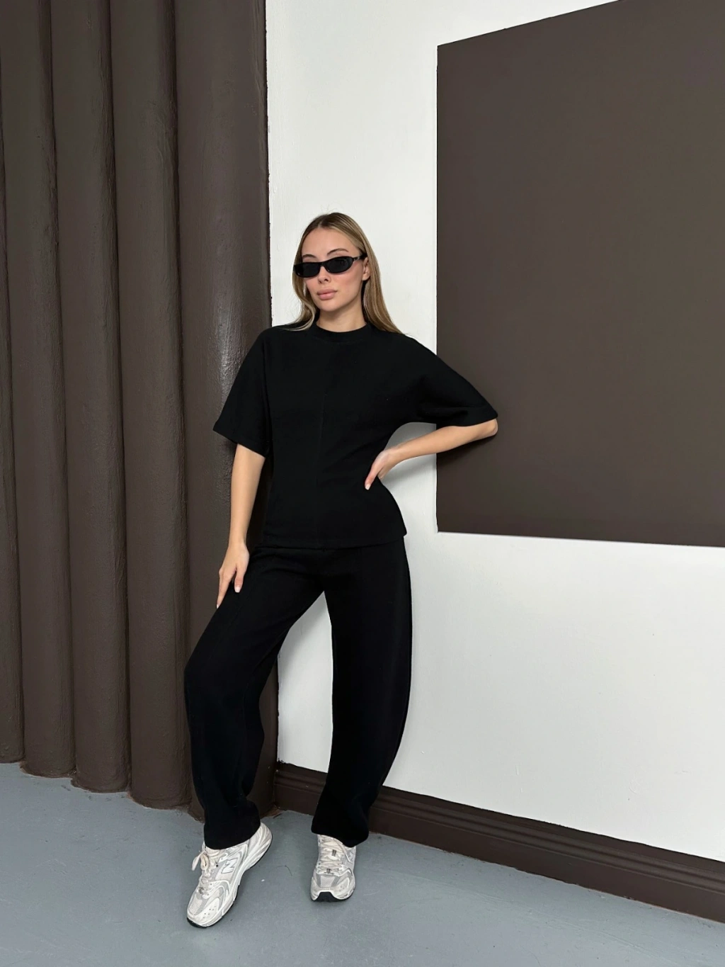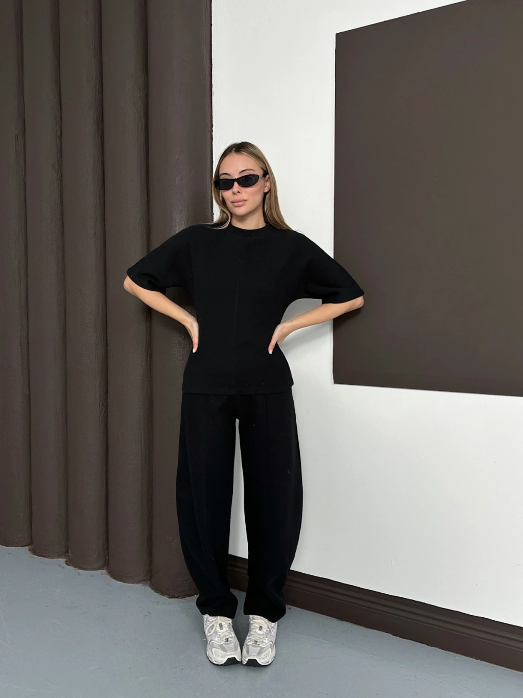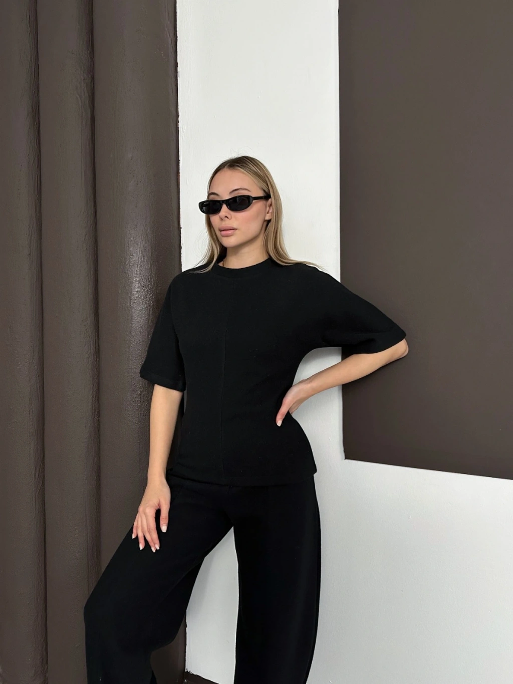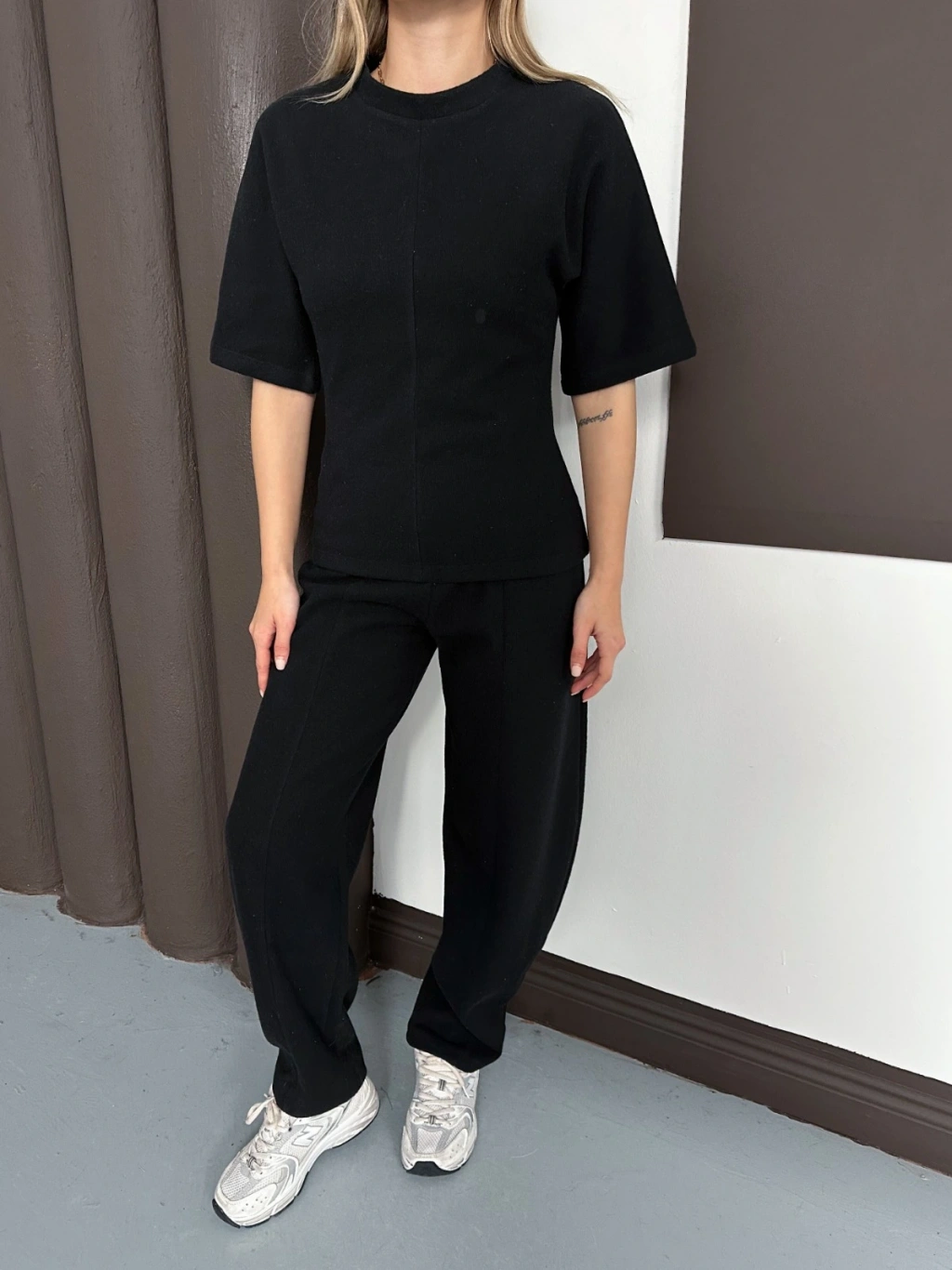 Desenli Modal İkili Set Takım Siyah