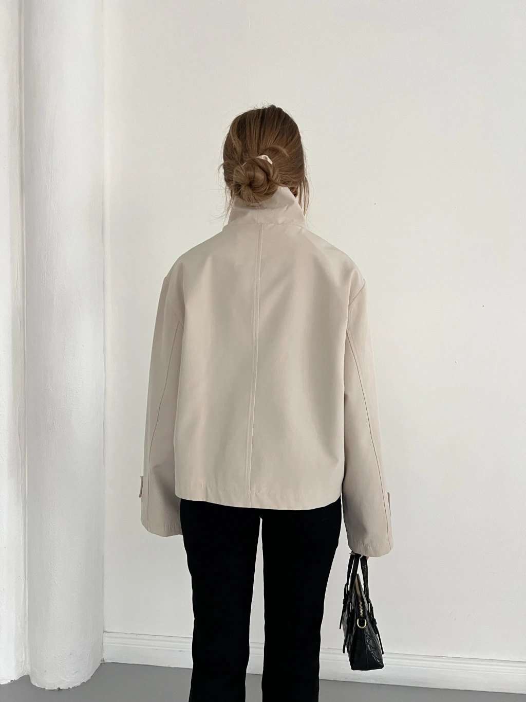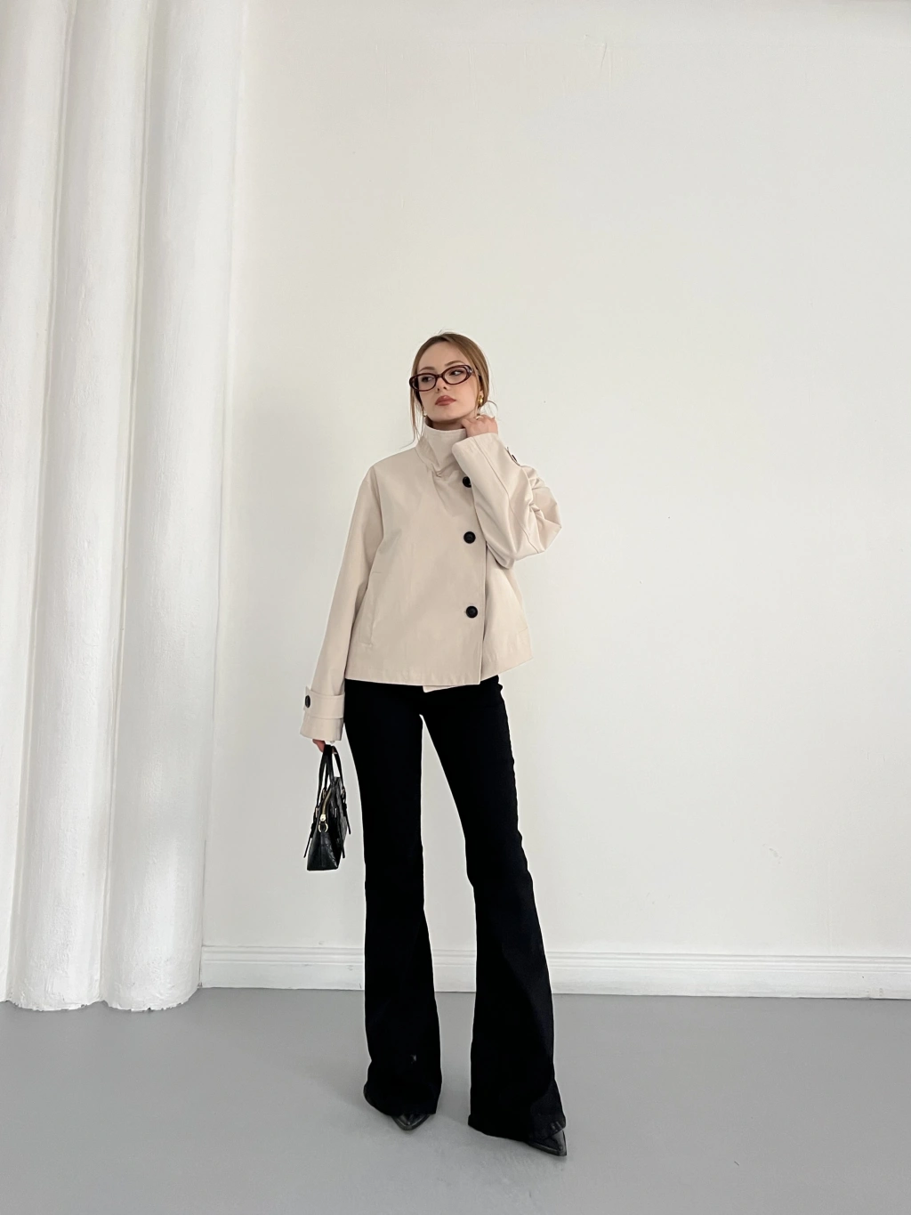 Dik Yaka Düğme Detaylı Trenckot Siyah