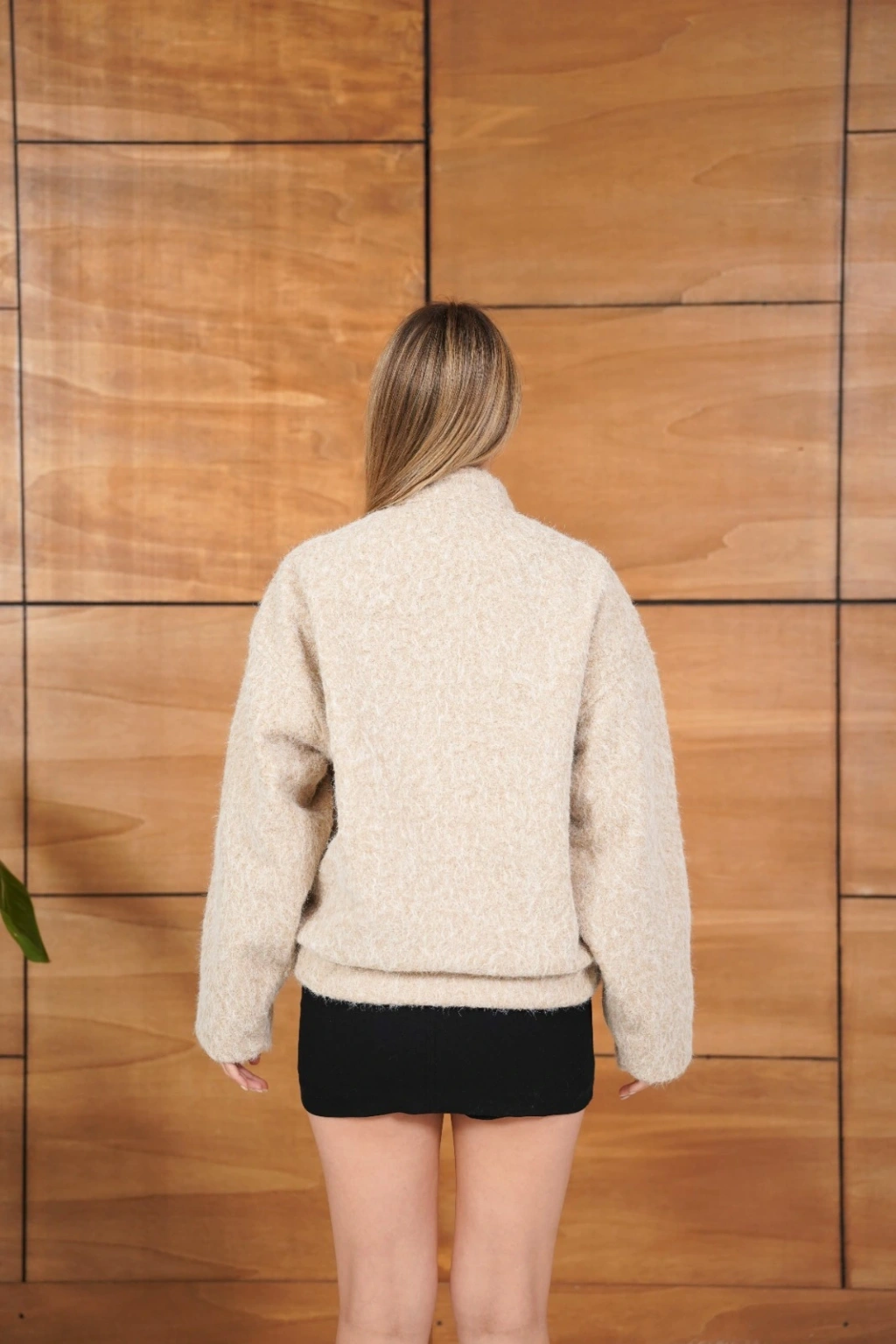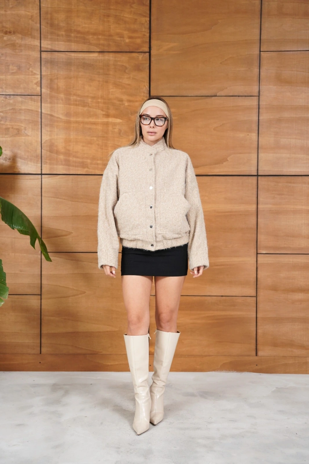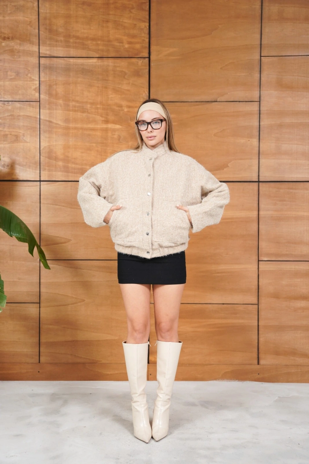 Düğme Detaylı Cepli Bomber Kaşe Ceket Bej