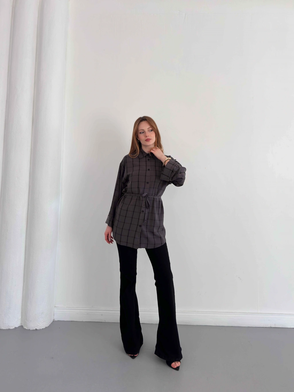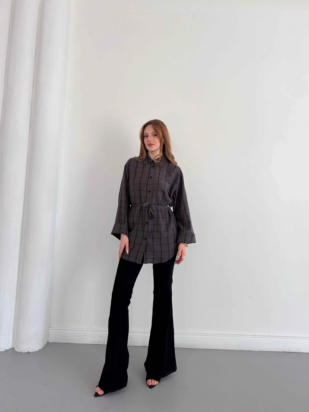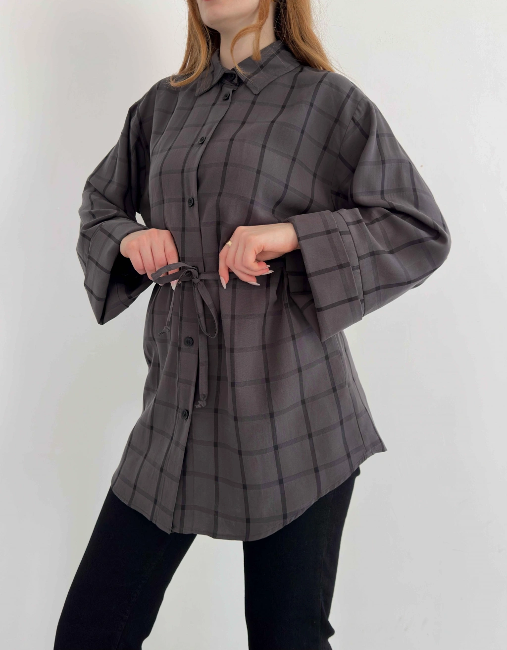 Ekose Bel Kuşaklı İspanyol Kol Gömlek Antrasit