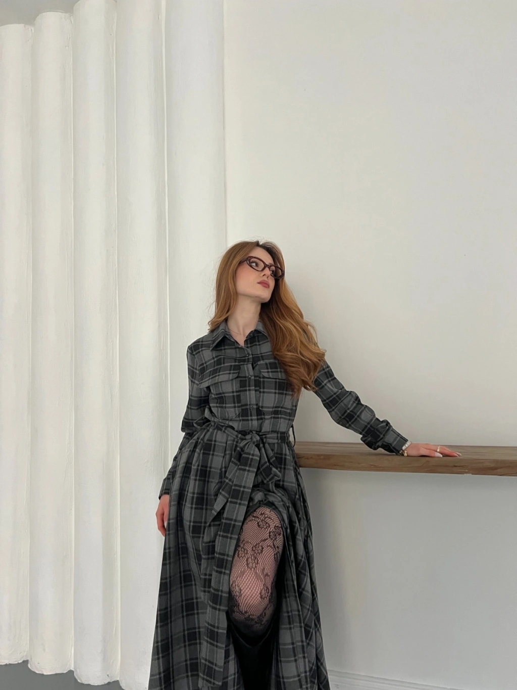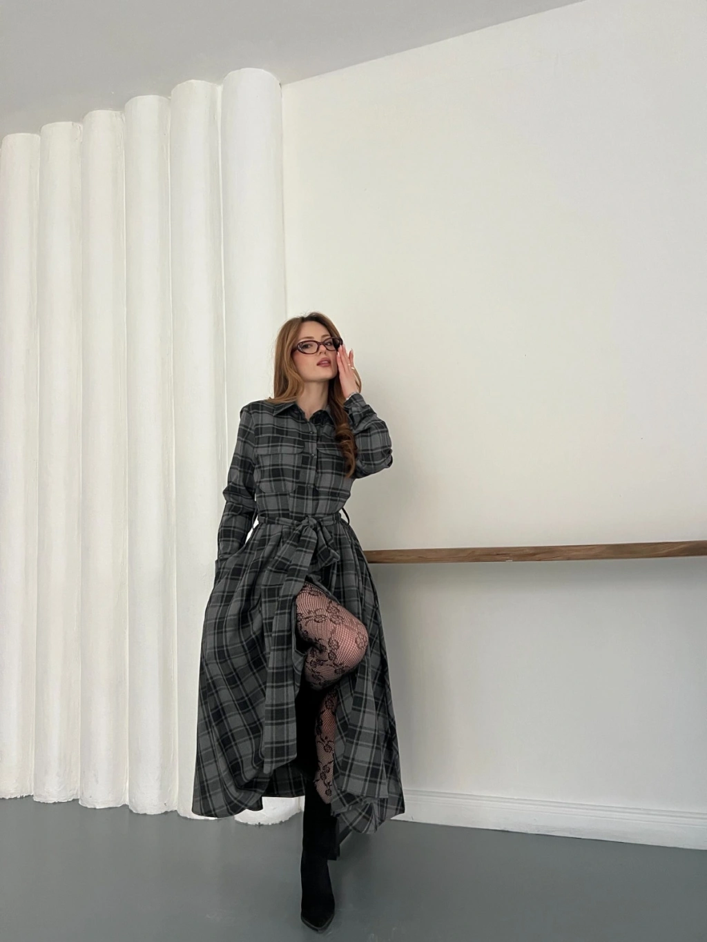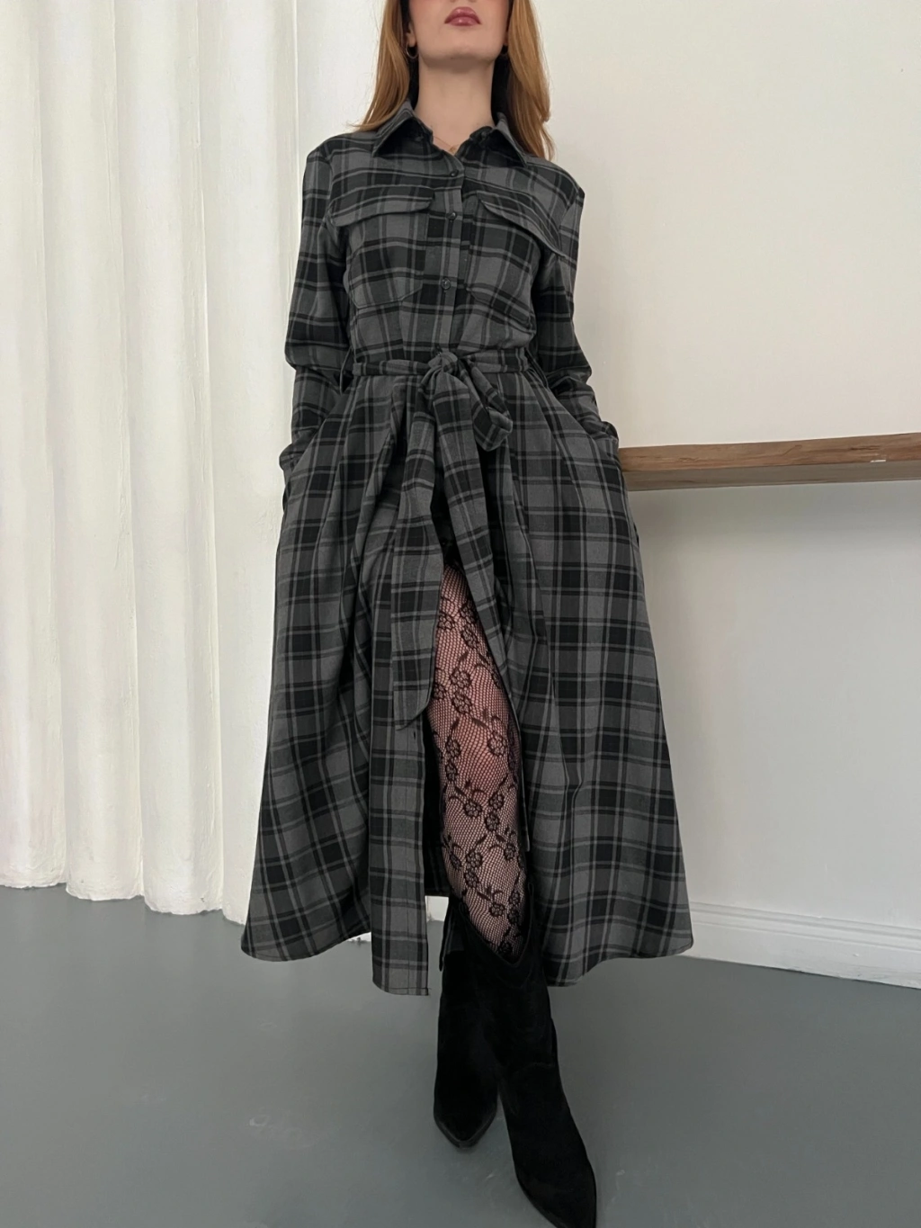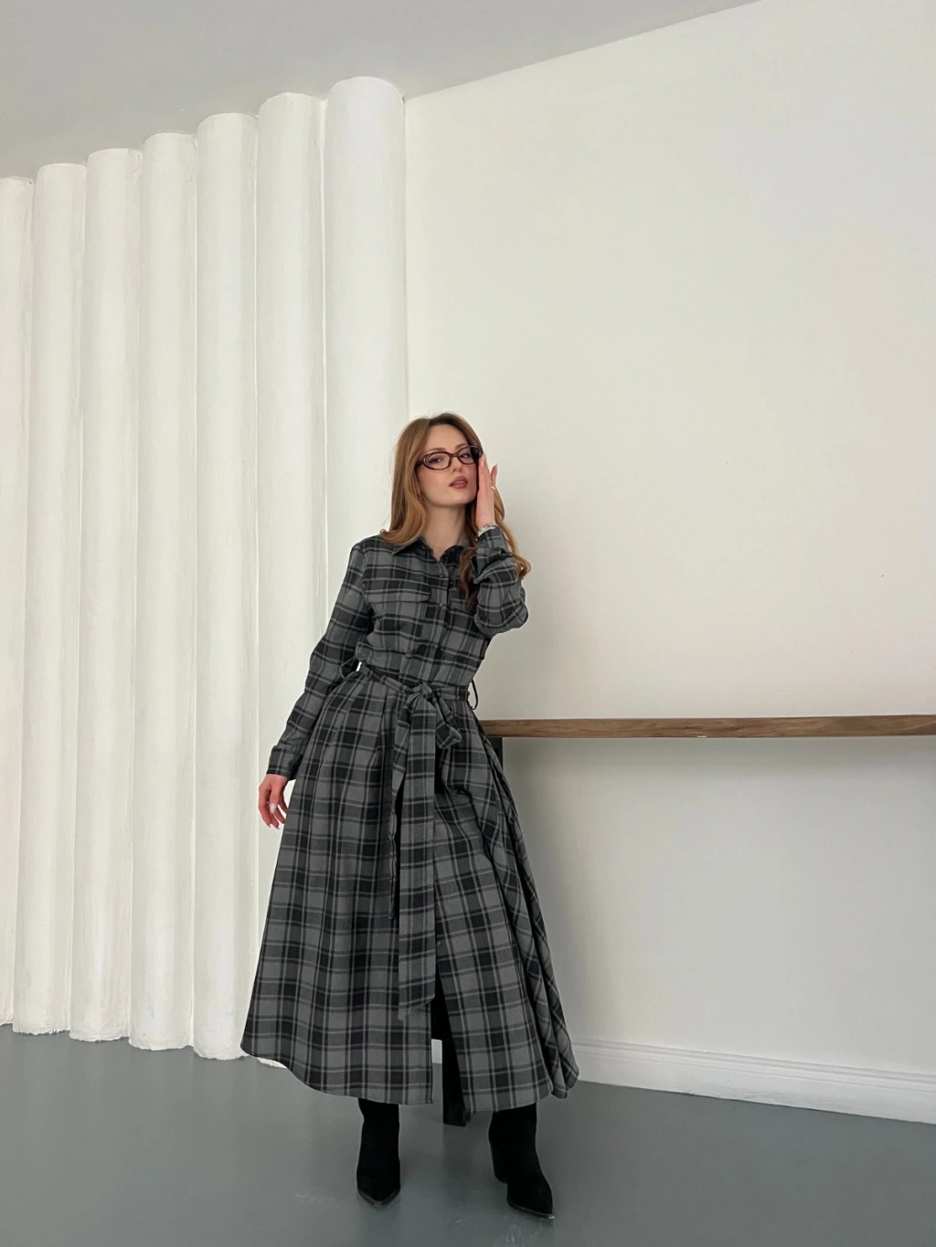 Bebe Yaka Uzun Kol Düğme Detaylı Elbise
