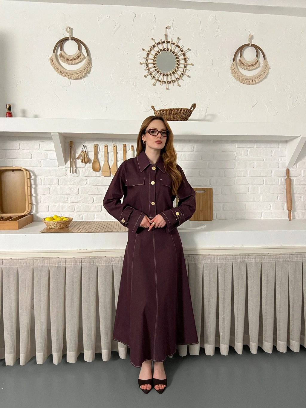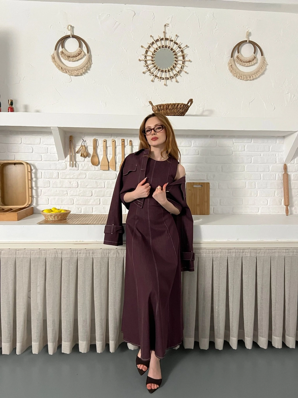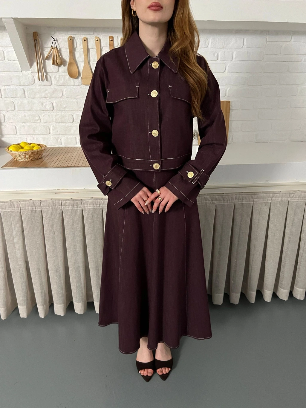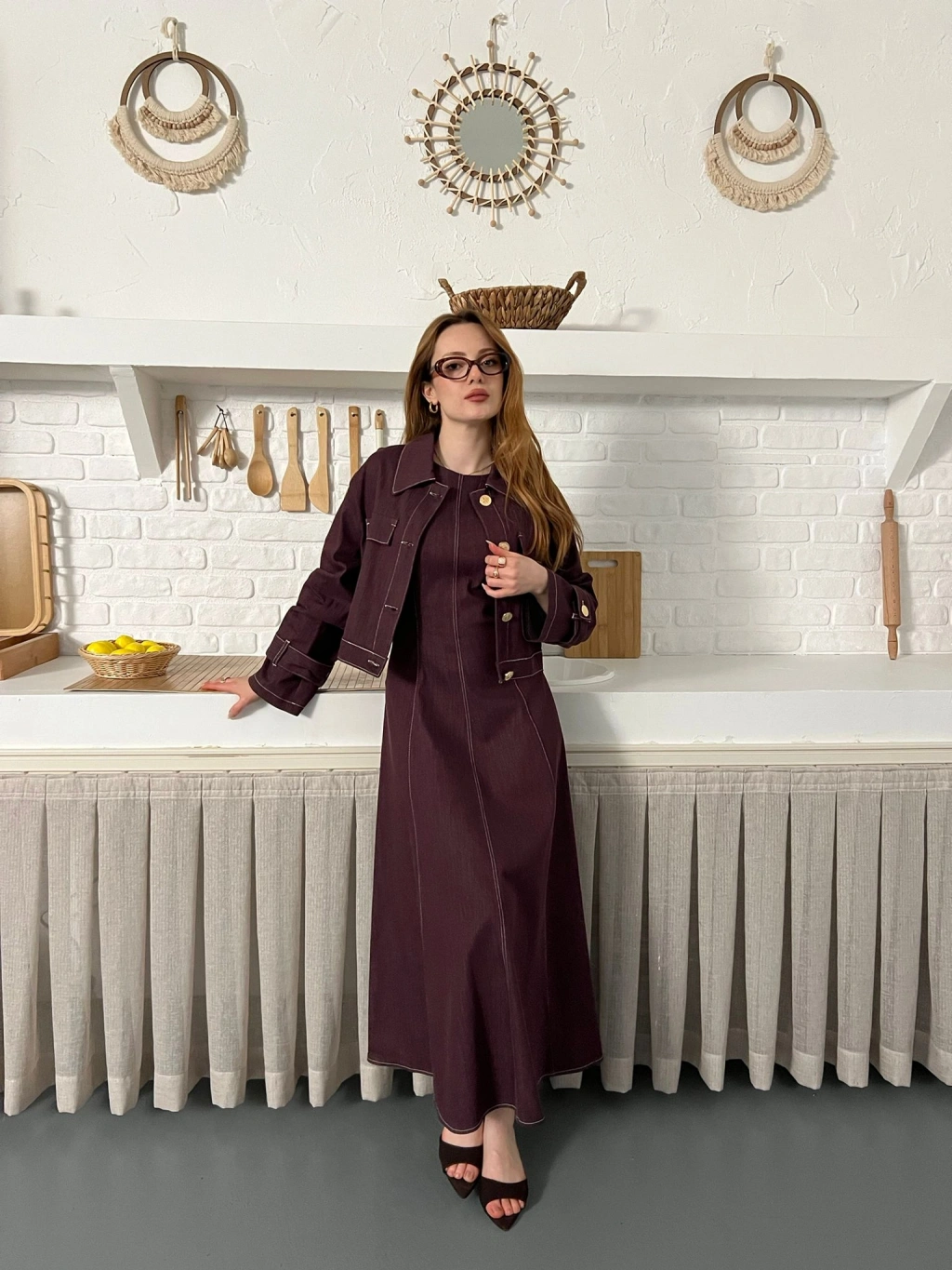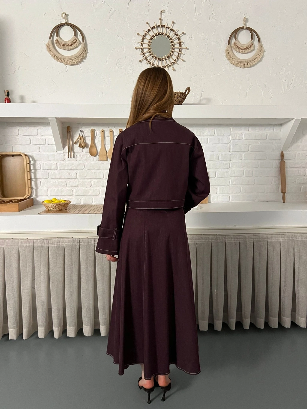 Elbise-Ceket Denim Takım Mürdüm