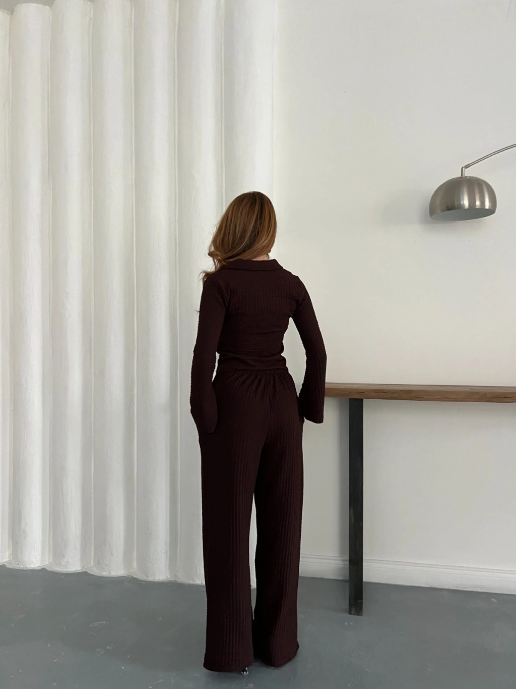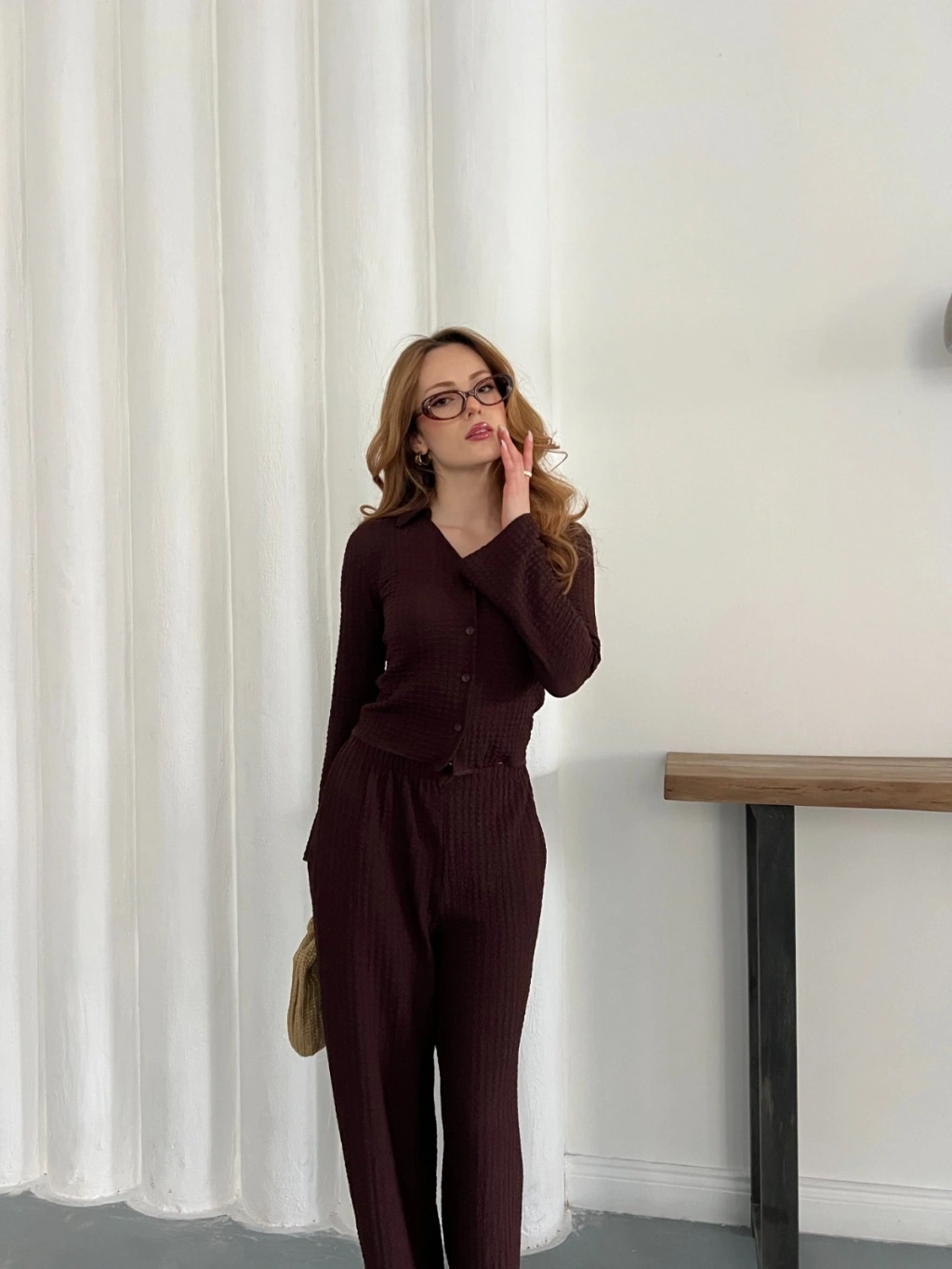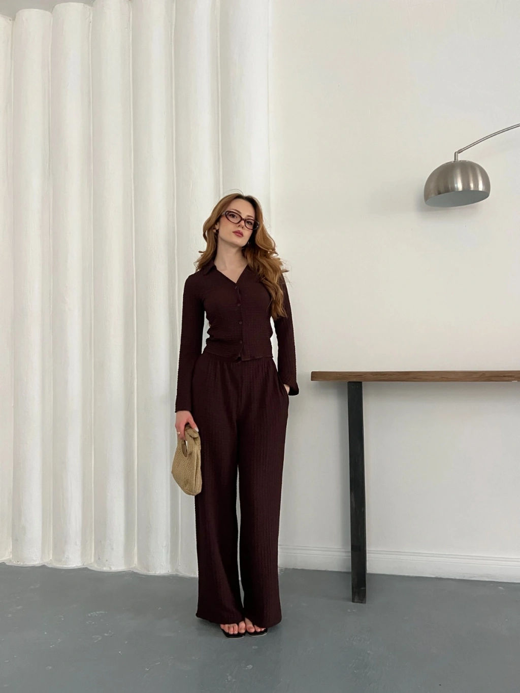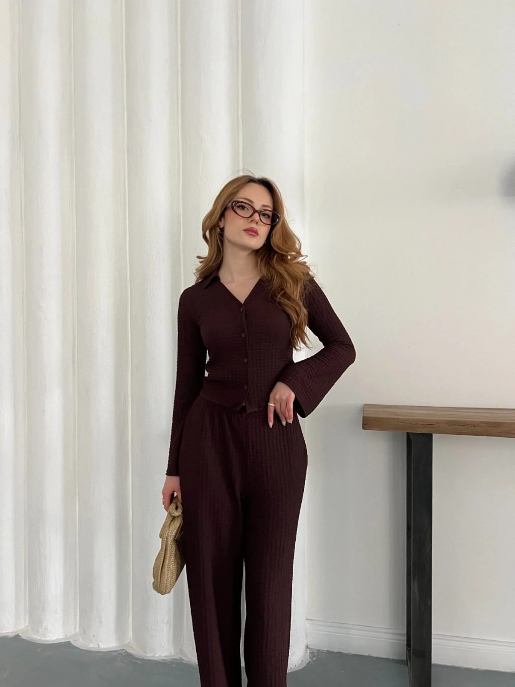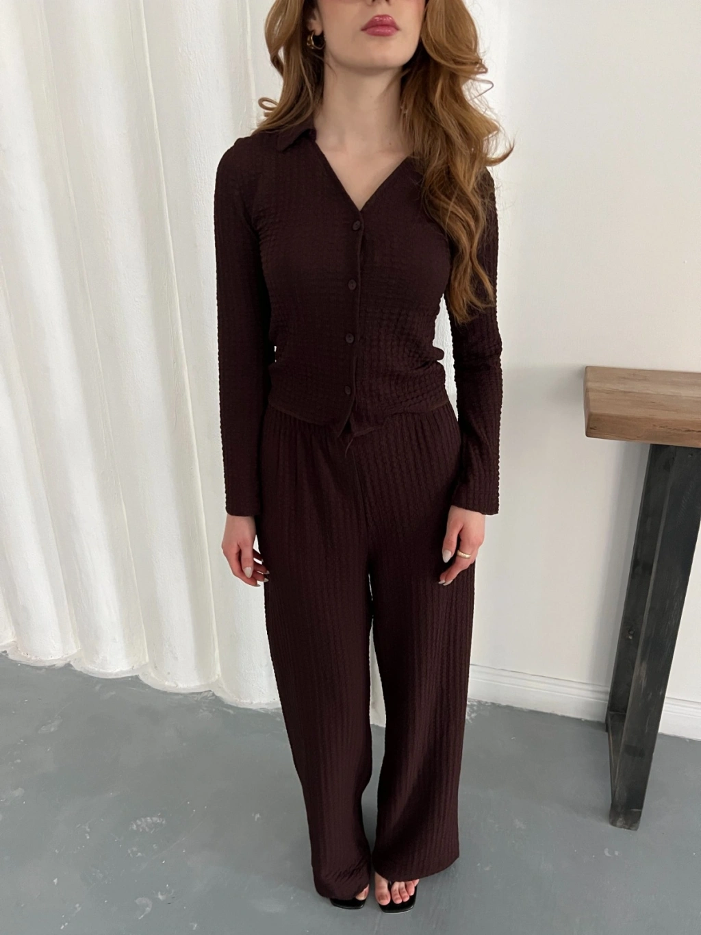 Gofre Kumaş Gömlekli Takım Acı Kahve
