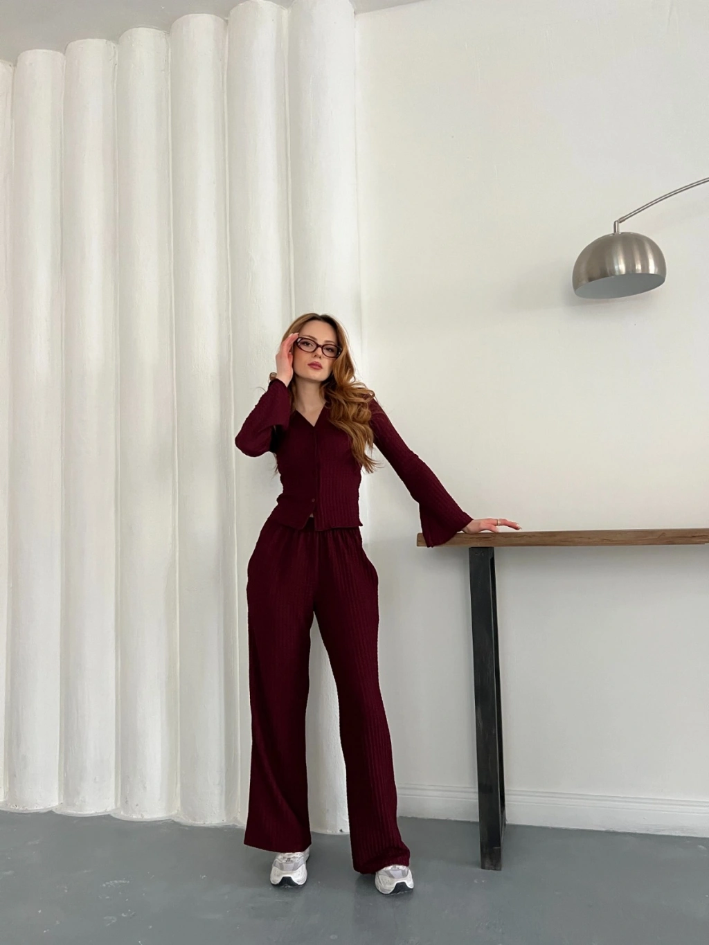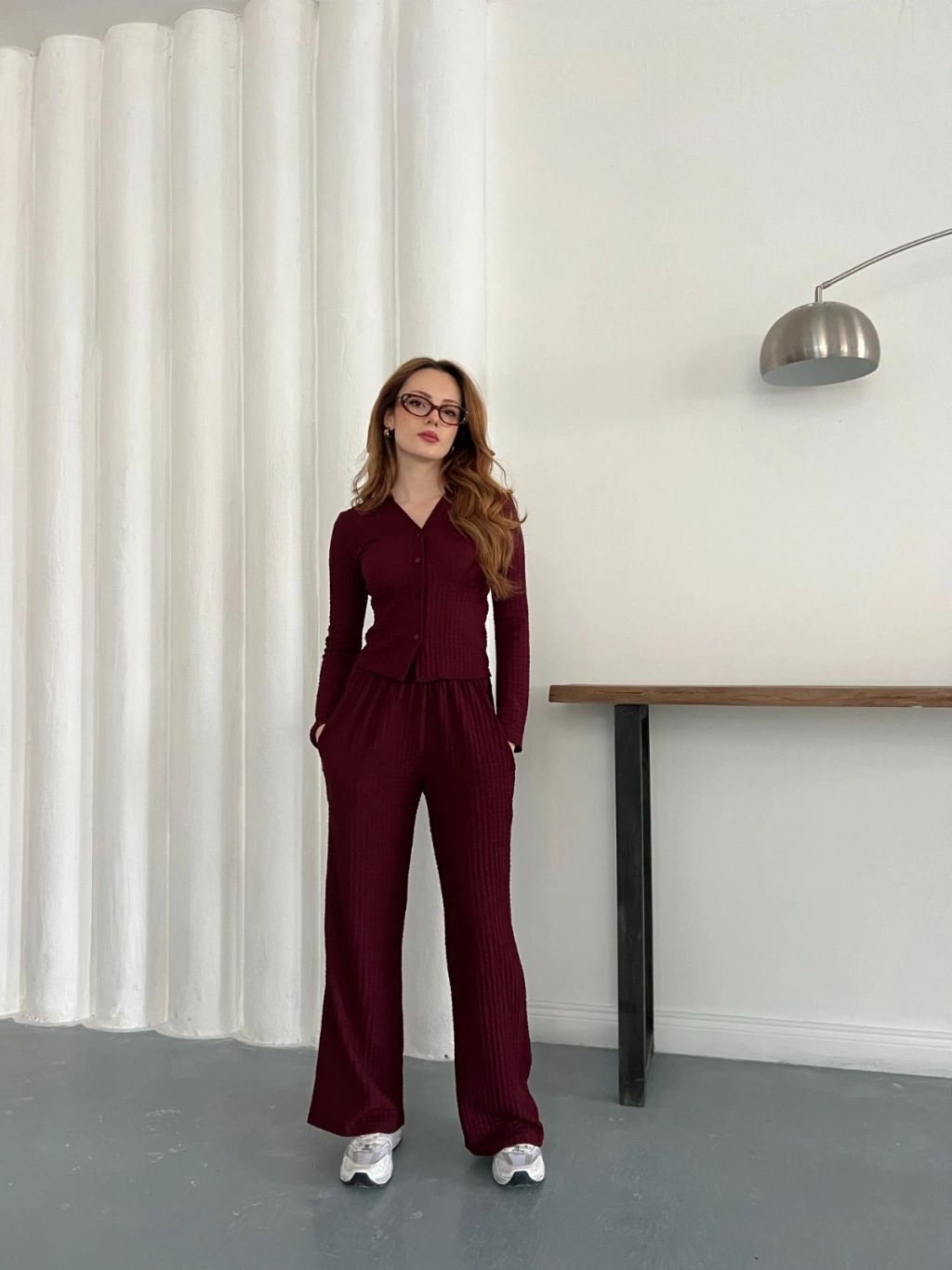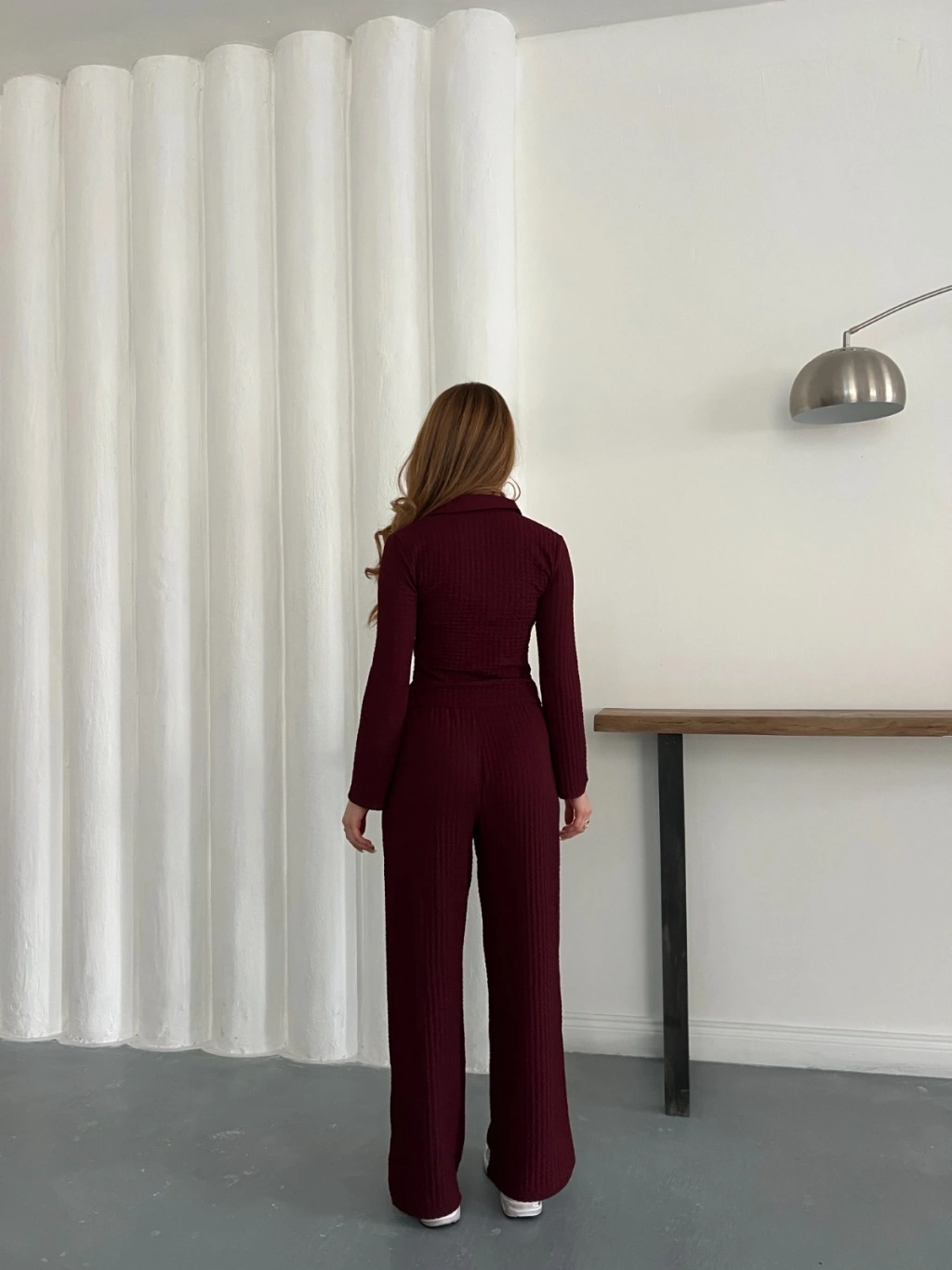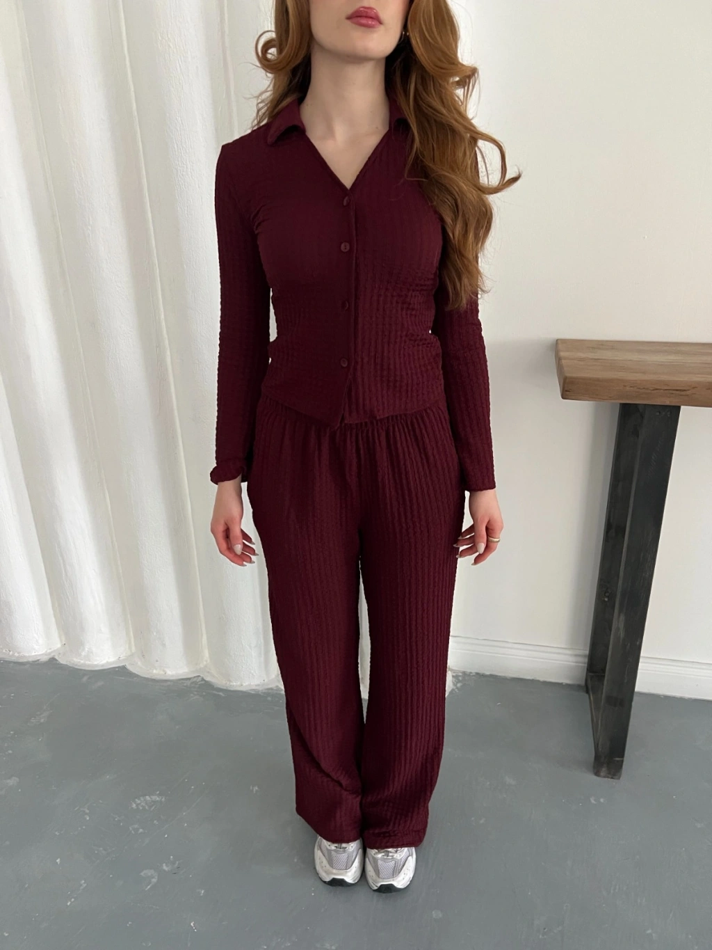 Gofre Kumaş Gömlekli Takım Bordo