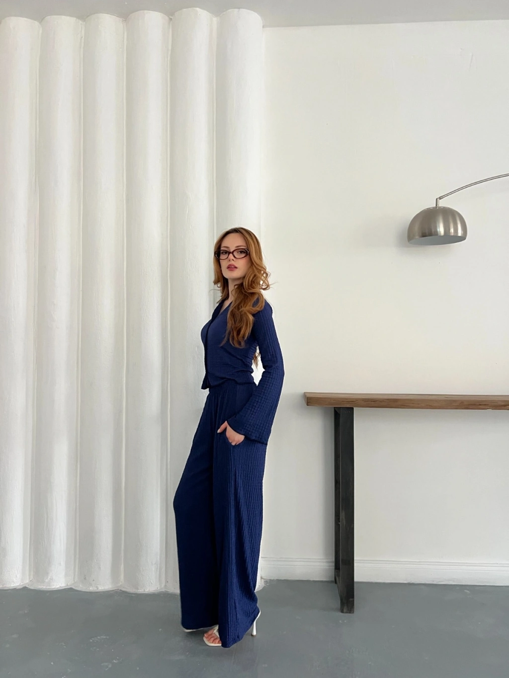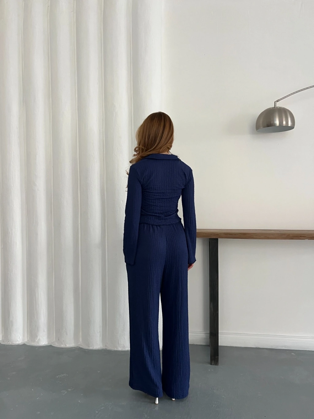Dökümlü Yumos Dokulu Oversize Salaş Gömlek Petrol Mavisi