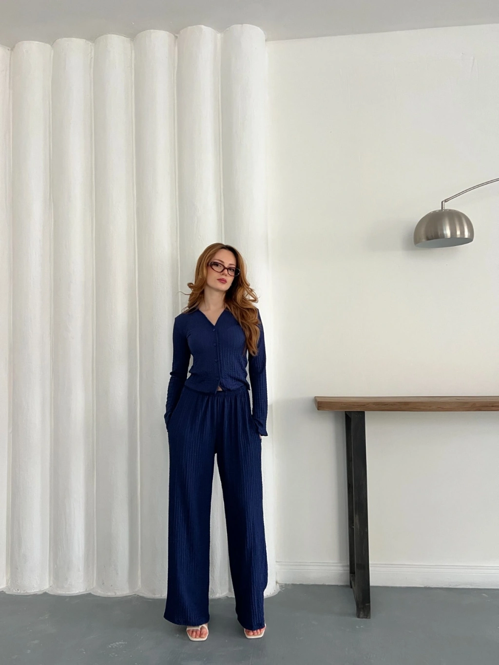 Blok Renk Tasarımlı Çıtçıt Detaylı Bel Lastikli Takım Kahve