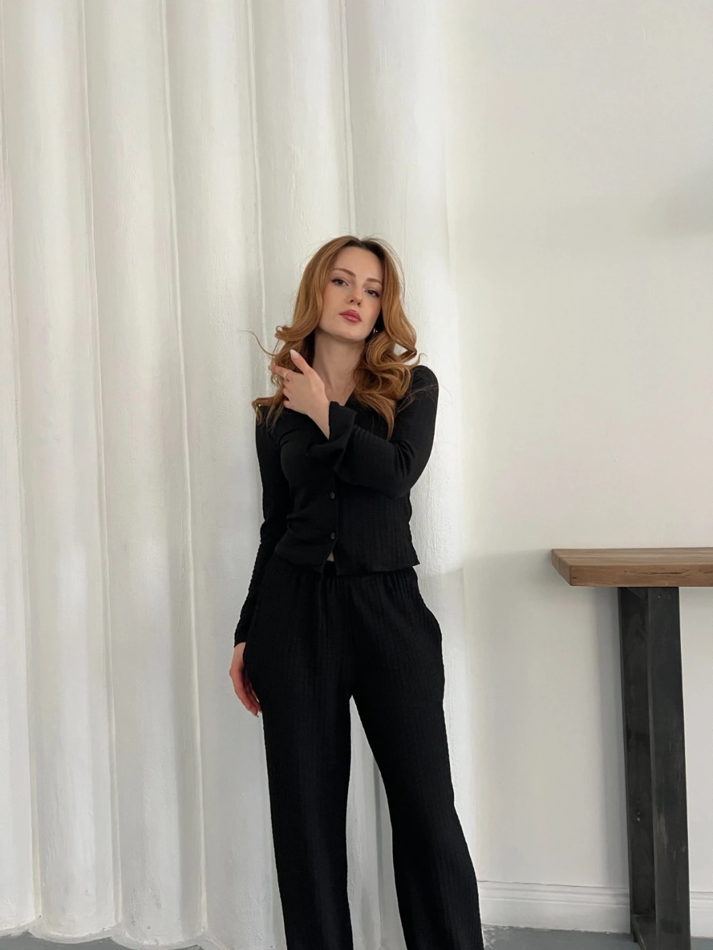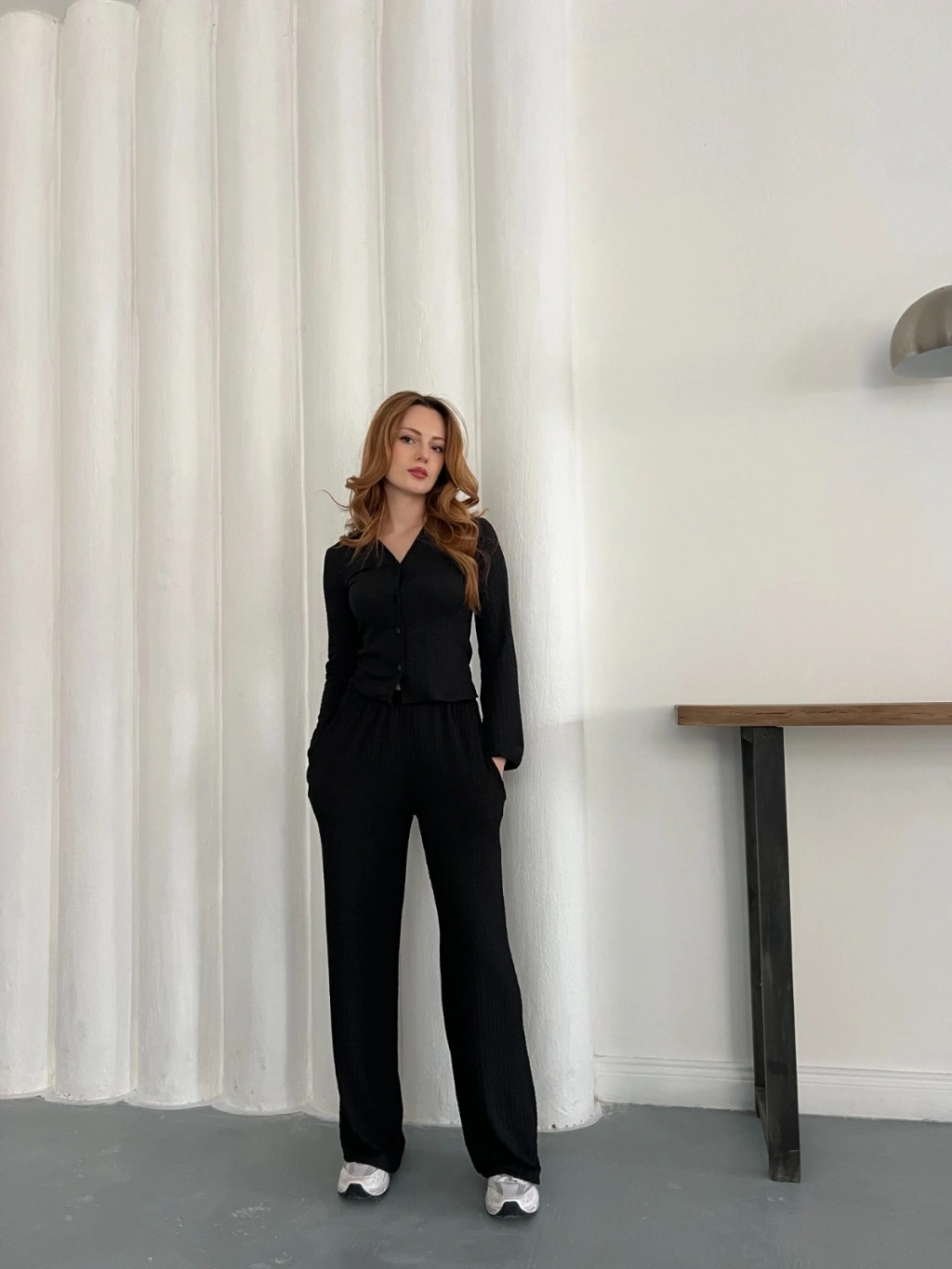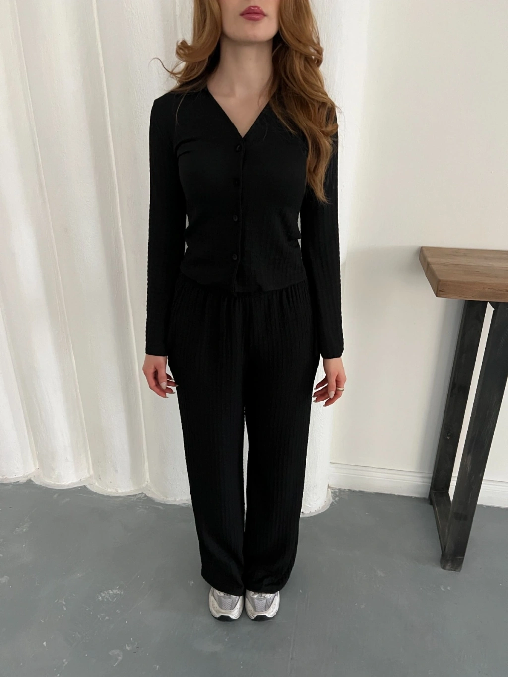 Blok Renk Tasarımlı Çıtçıt Detaylı Bel Lastikli Takım Kahve
