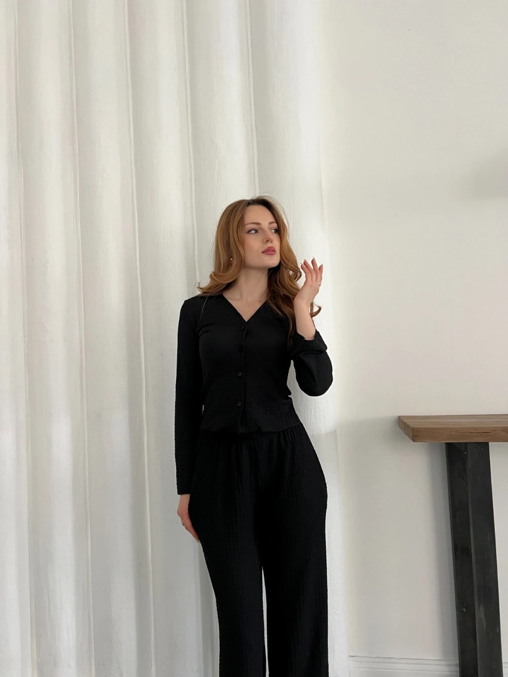 Dökümlü Yumos Dokulu Oversize Salaş Gömlek Siyah