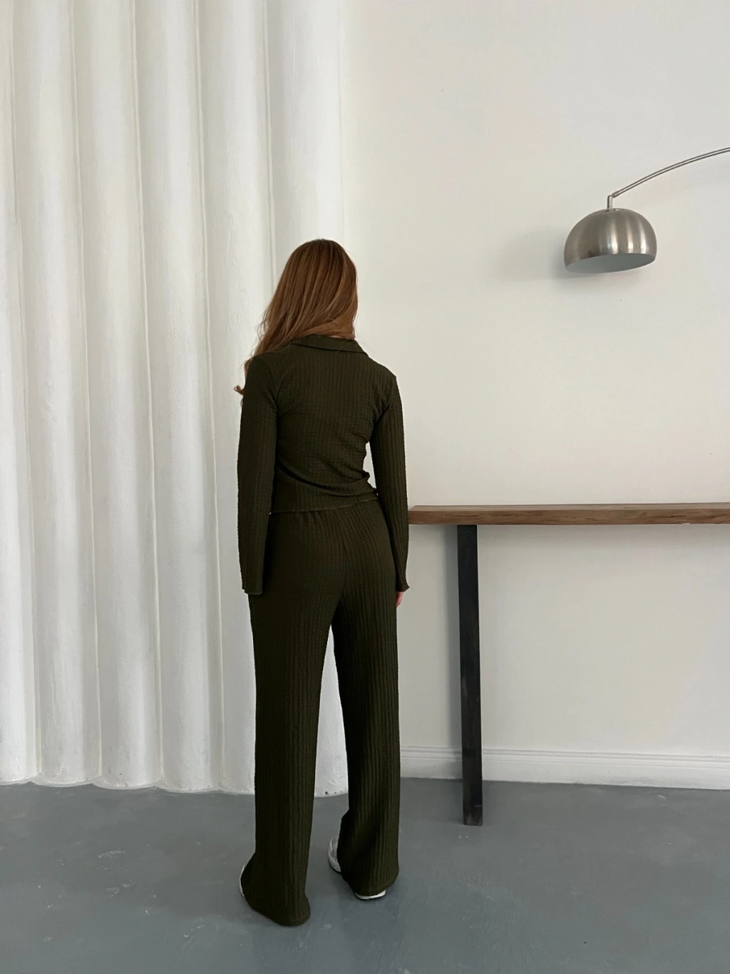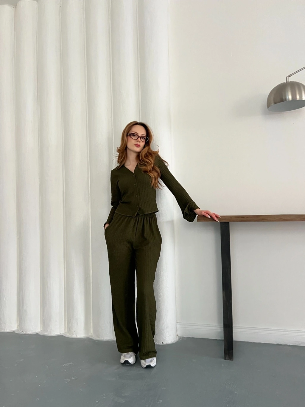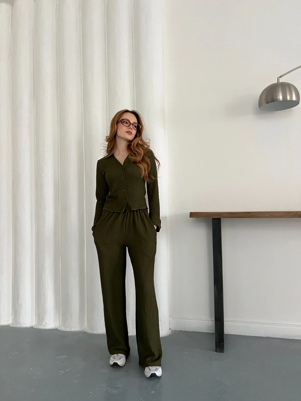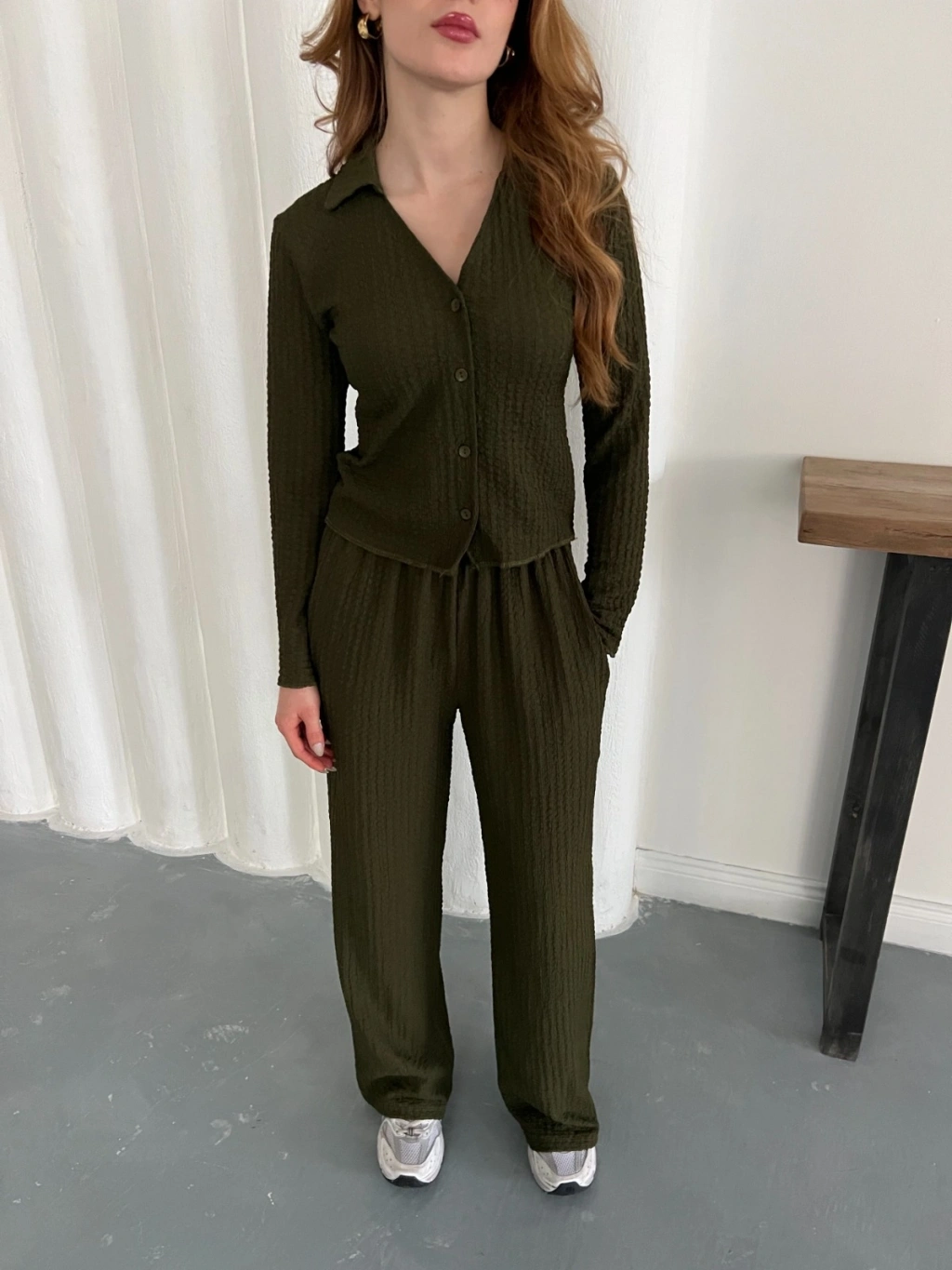 Gofre Kumaş Gömlekli Takım Yeşil