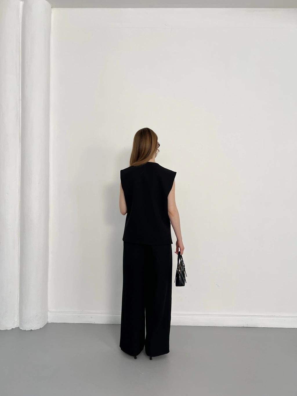 Düğme Detaylı Bel Kuşaklı İspanyol Kol Takım Siyah