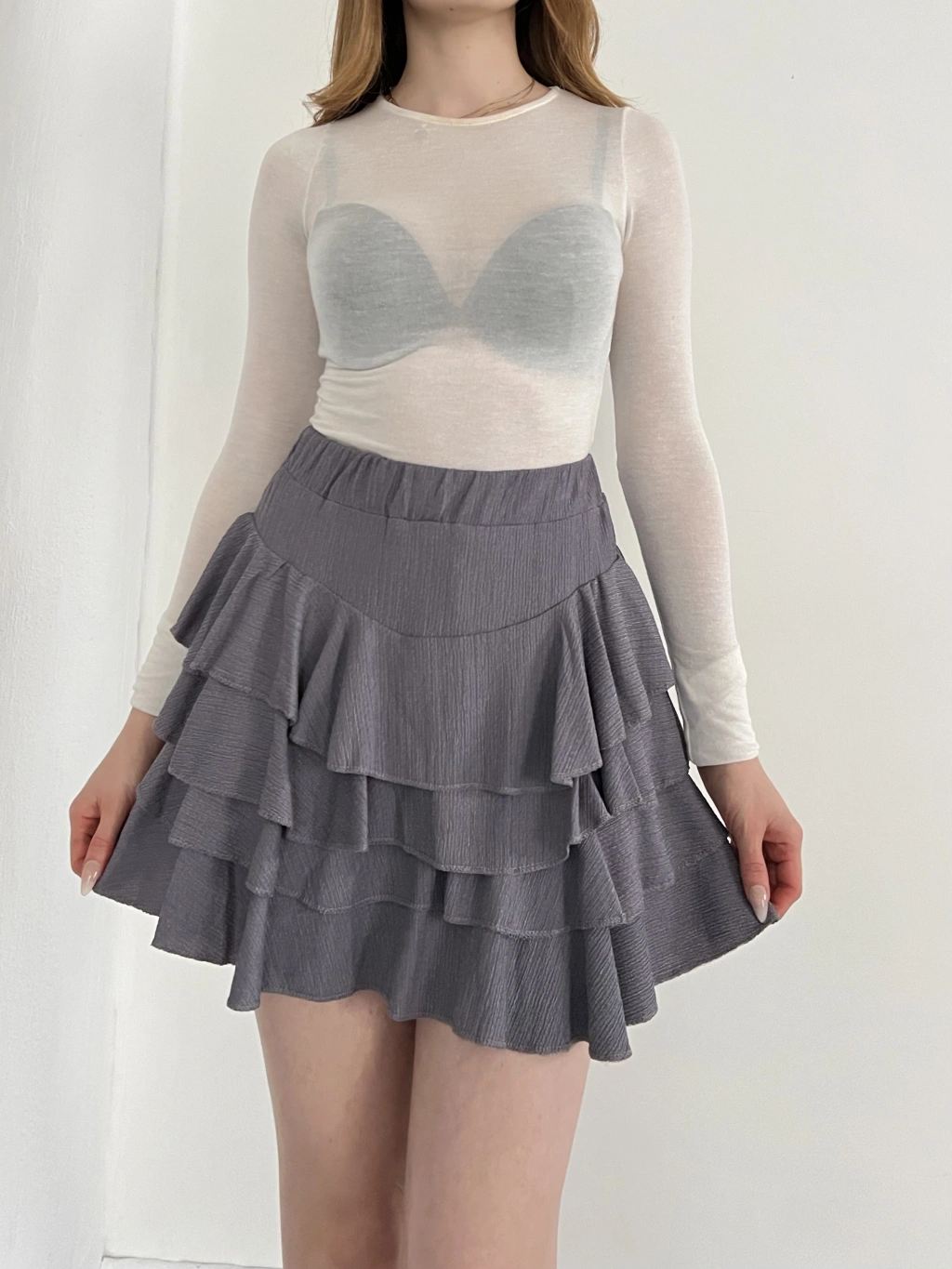 Kemer Detaylı Piliseli Denim Etek Mavi