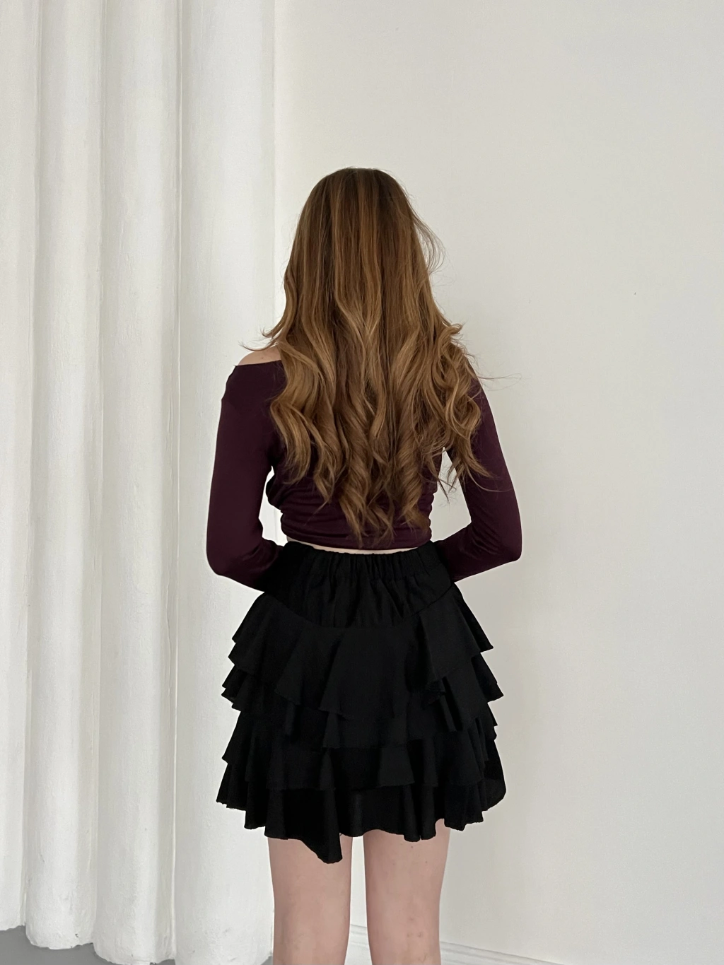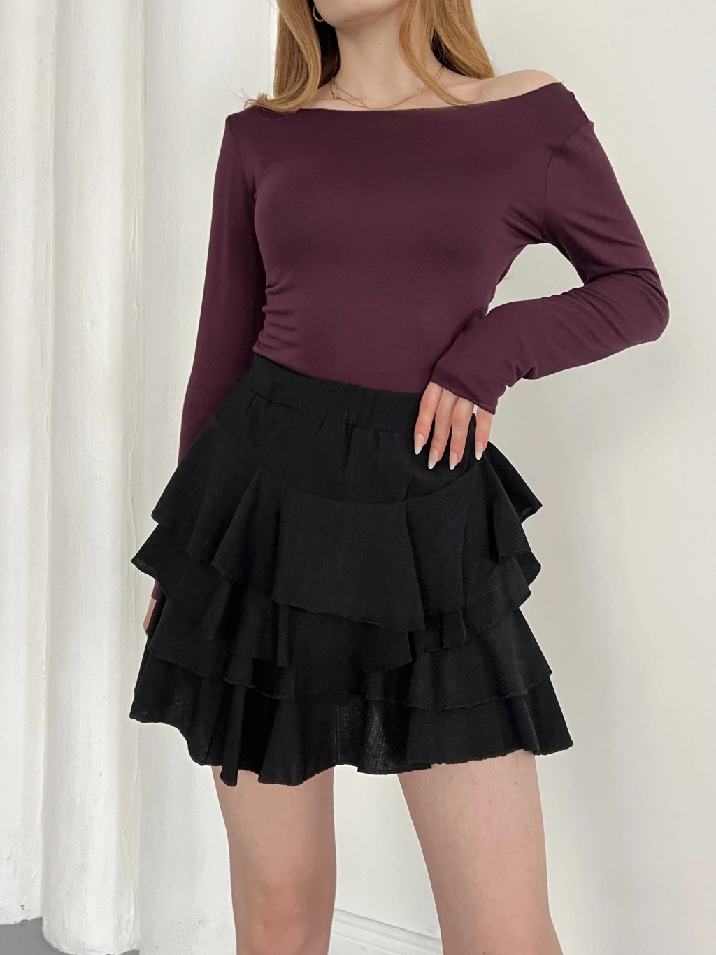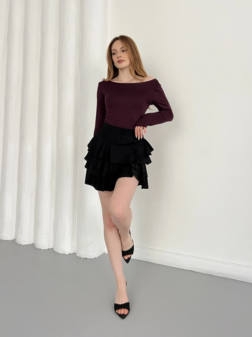 İçi Şortlu Fırfırlı Etek Mürdüm