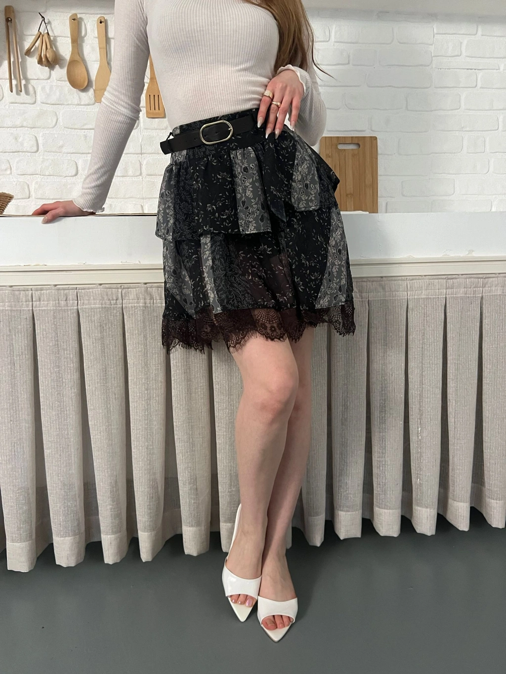 İçi Şortlu Kemerli Şifon Etek Antrasit
