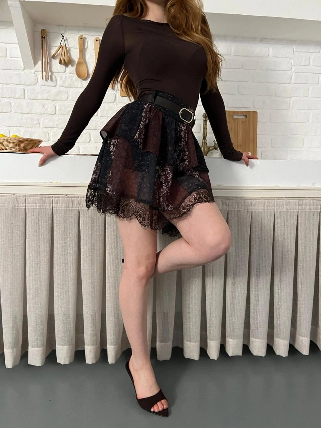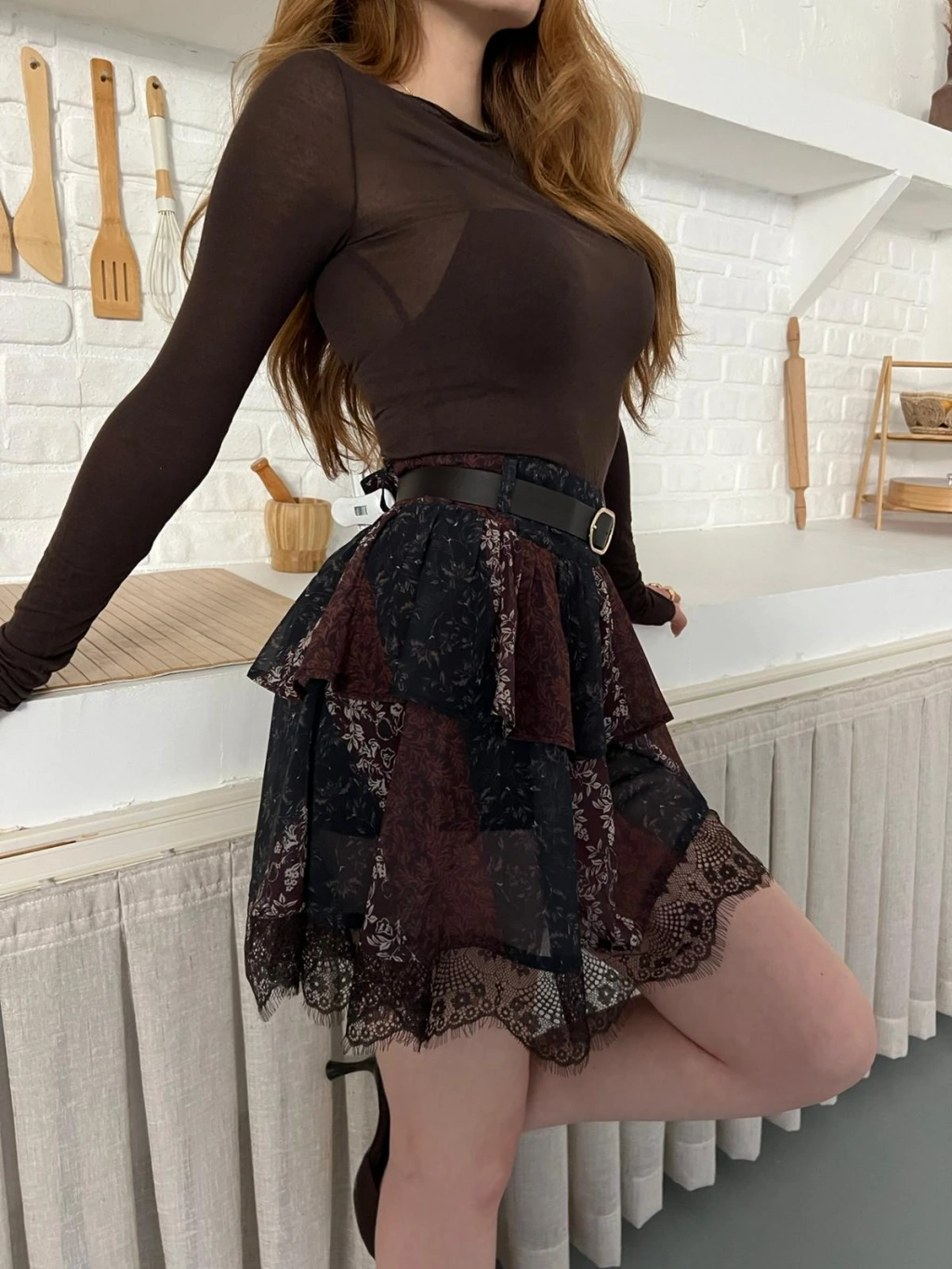 İçi Şortlu Kemerli Şifon Etek Bordo