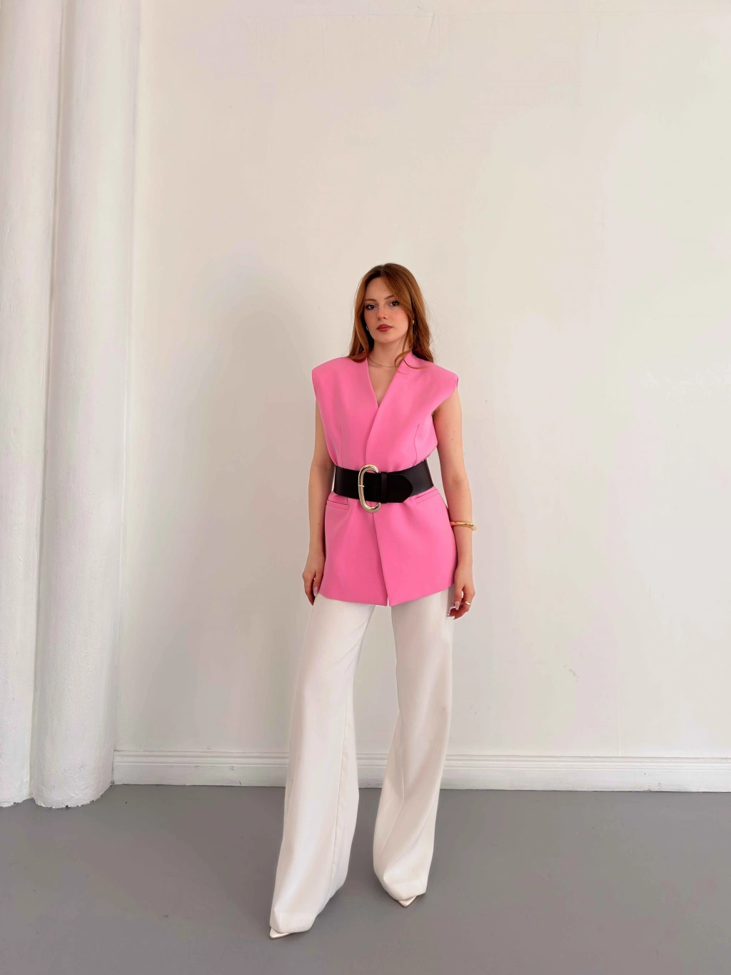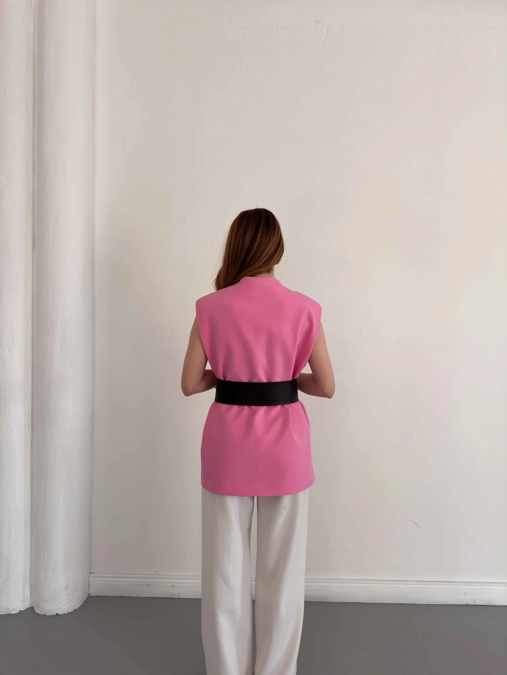 Kalın Kemer Detaylı Yelek Pembe