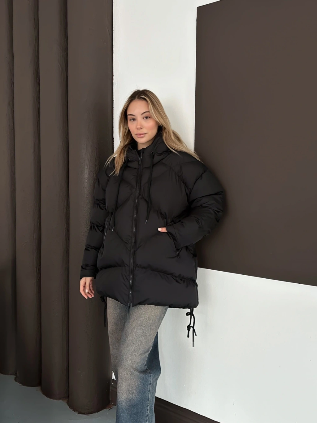 Kapüşonlu Şişme Kısa Mont Acı Kahve