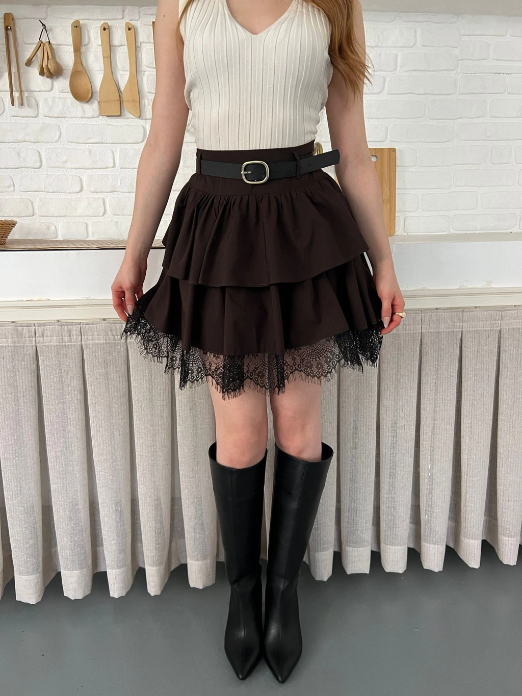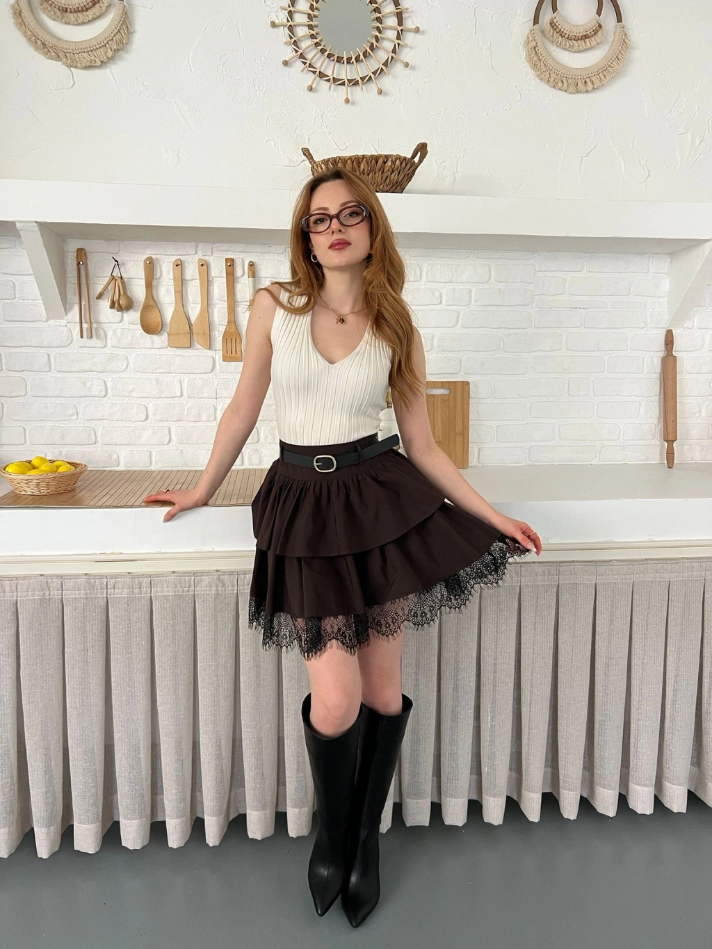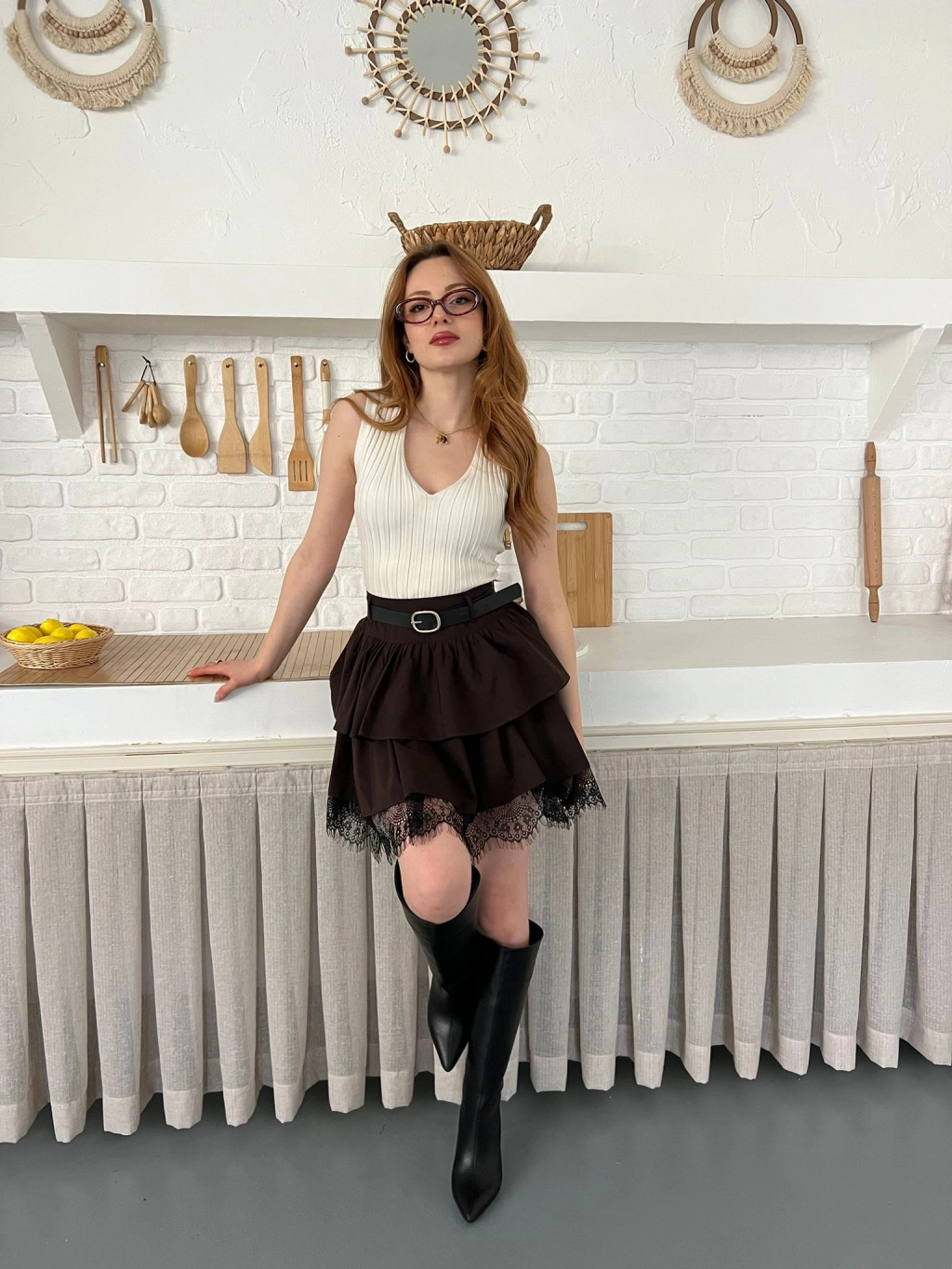 Arka Bağlama Detaylı Dantelli Elbise Kahve