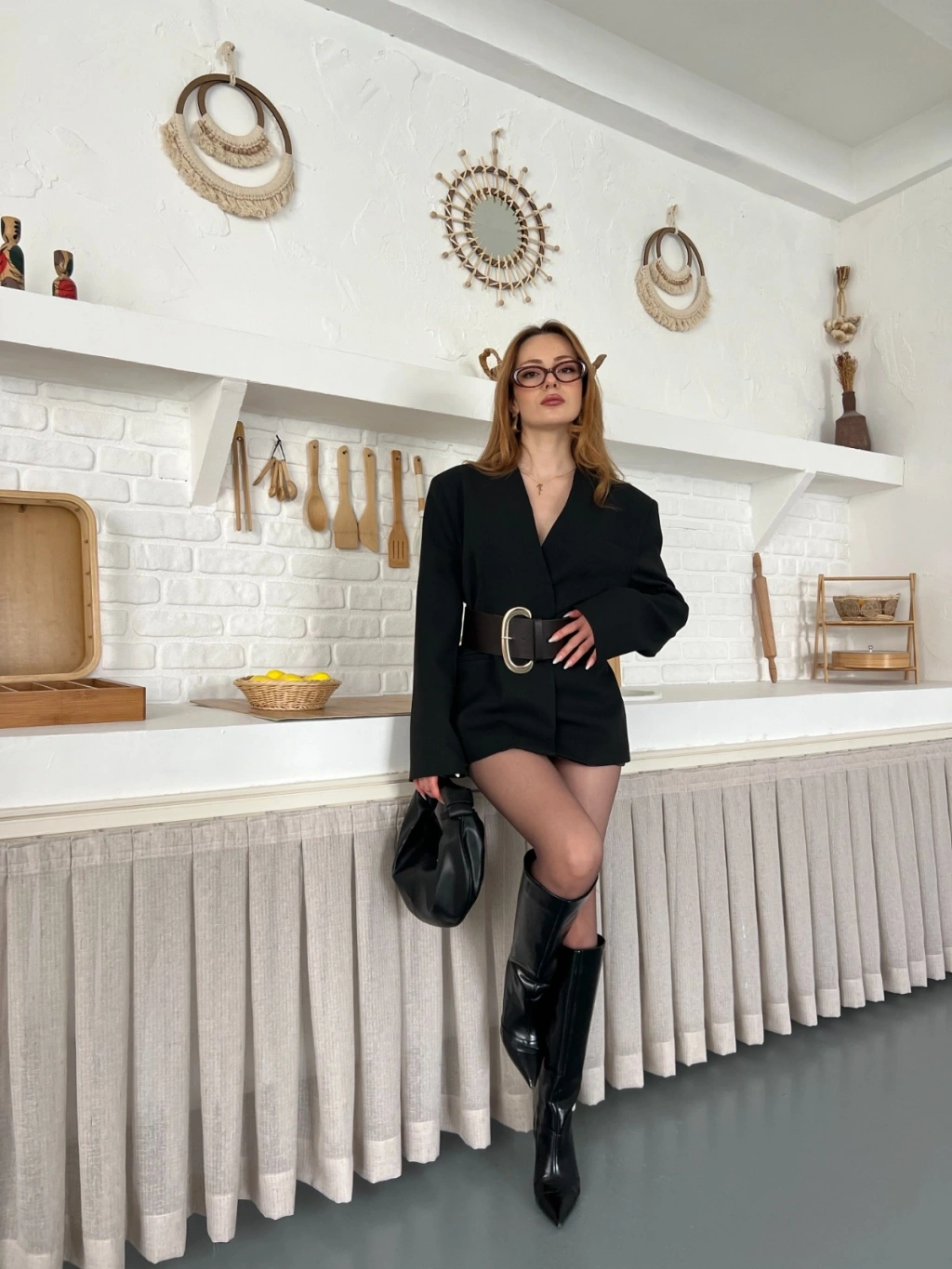 Kemer Detaylı Kruvaze Yaka Ceket Siyah