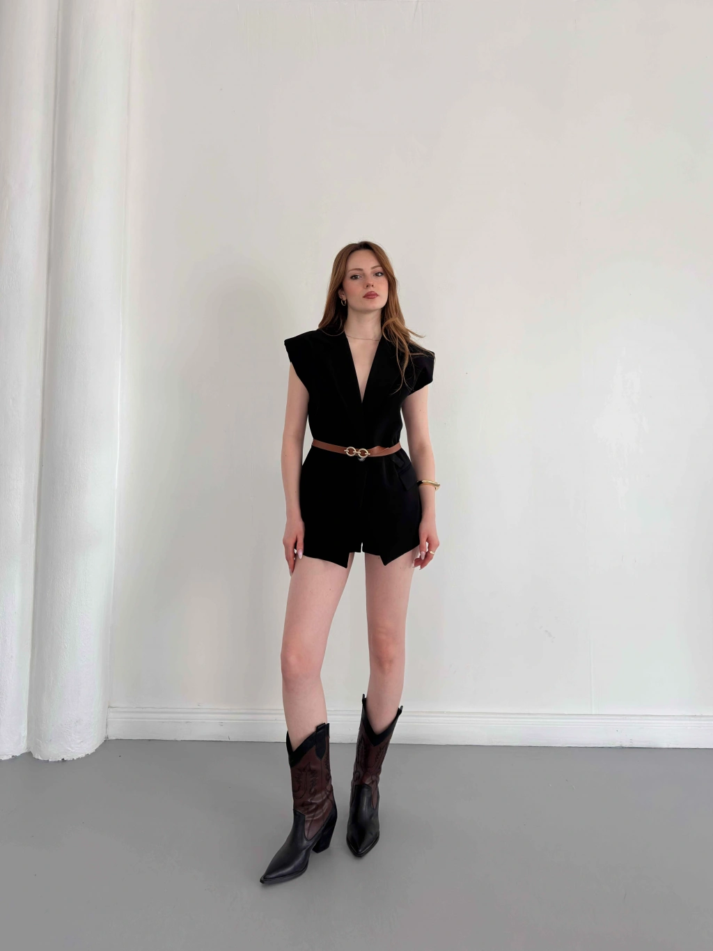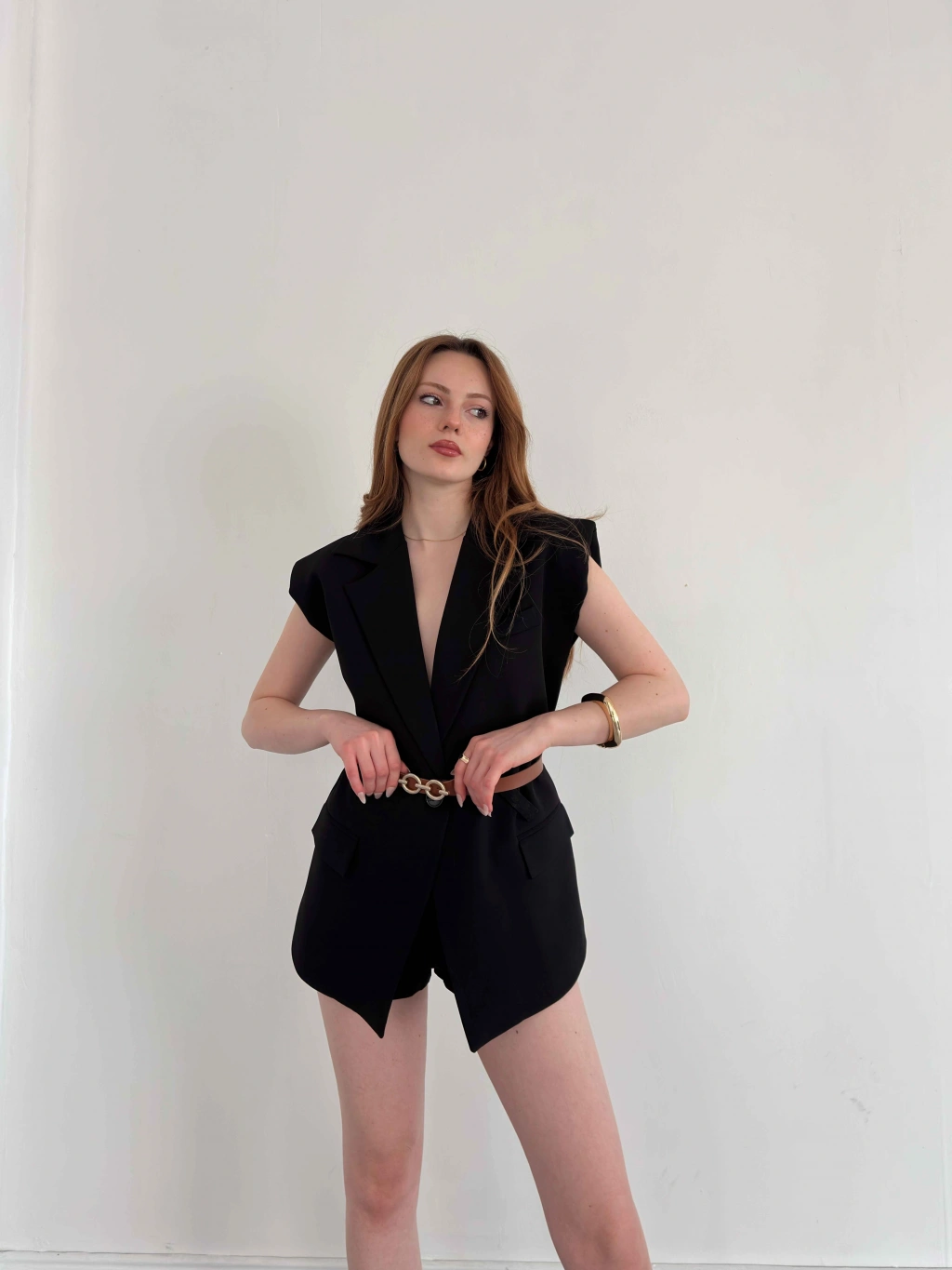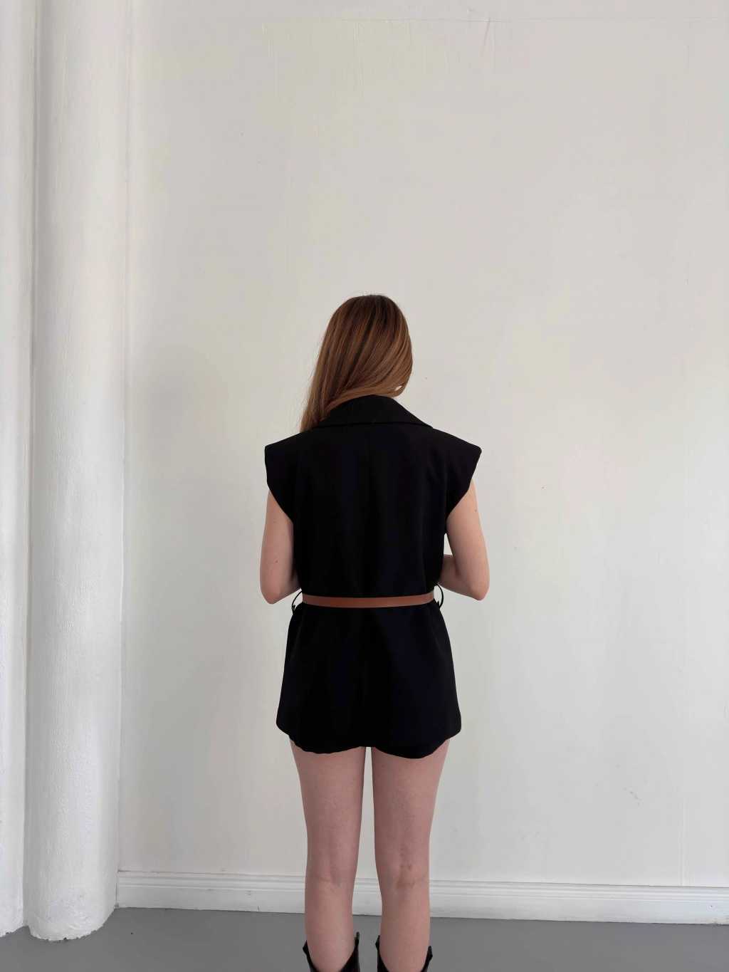 Kemer Detaylı Kruvaze Yaka Yelek Siyah