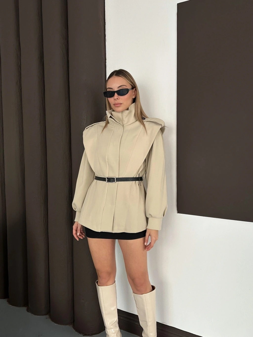 Kemer Detaylı Tasarım Ceket Yağ Yeşili