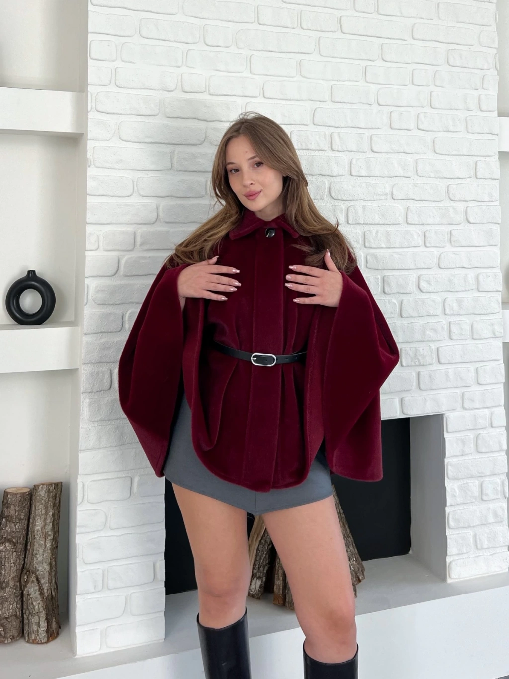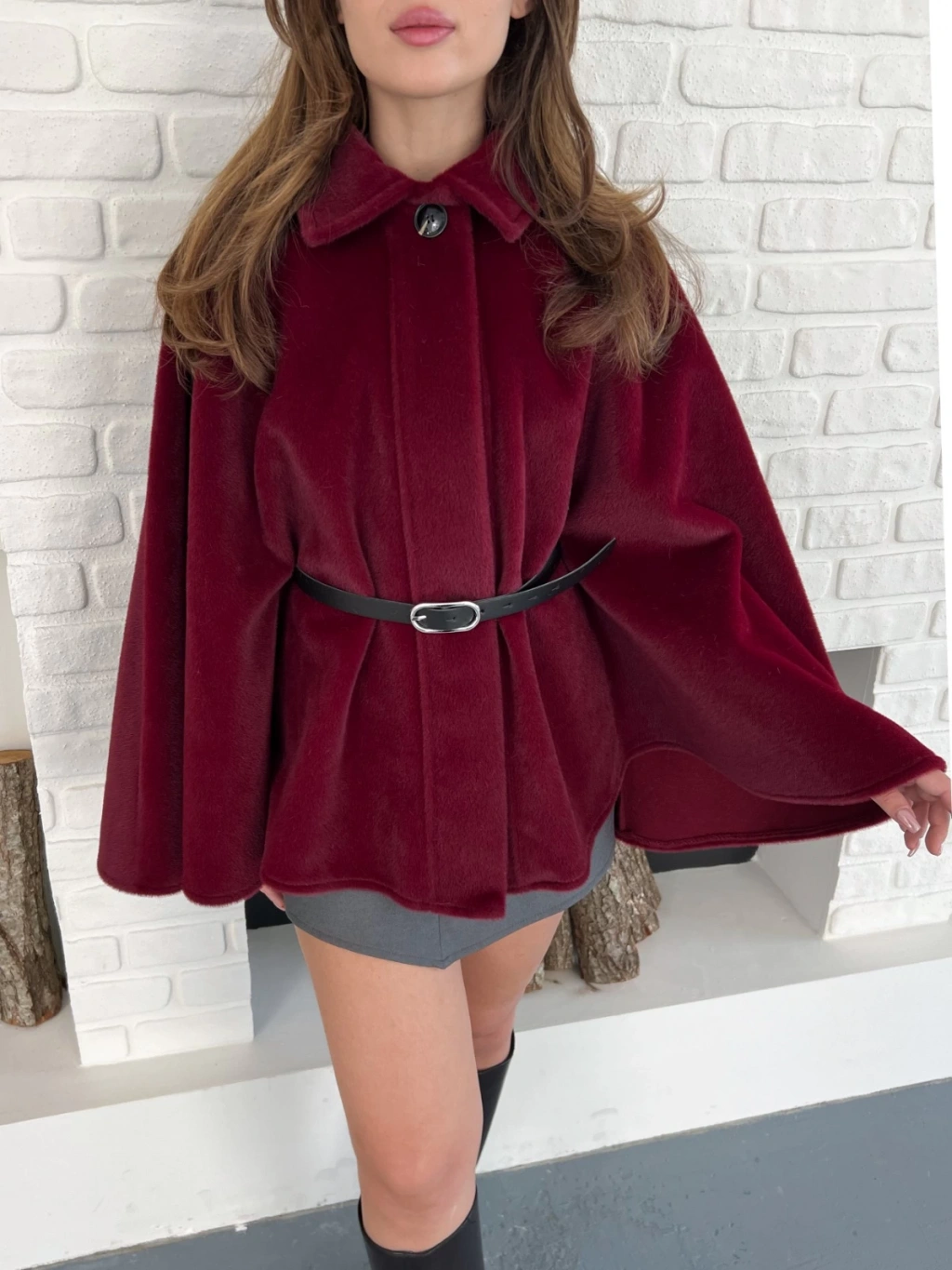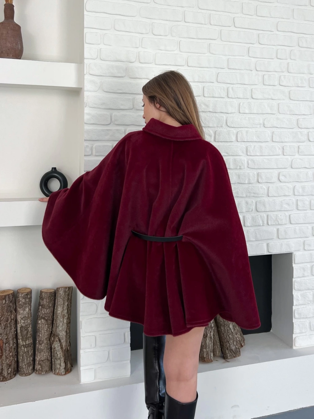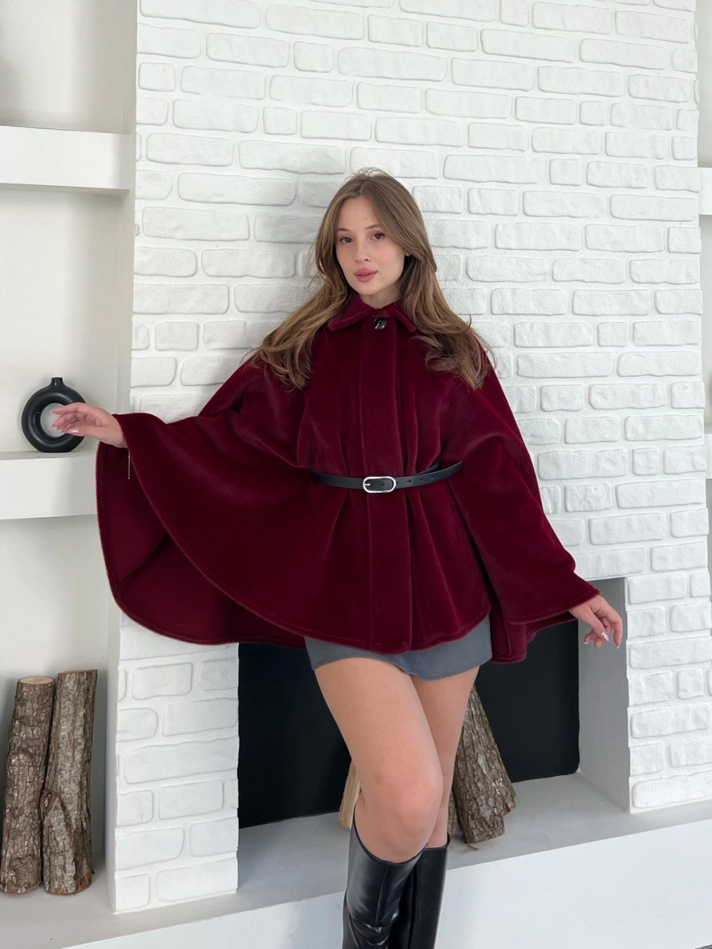 Kemer Detaylı Yarasa Kol Panço Bordo